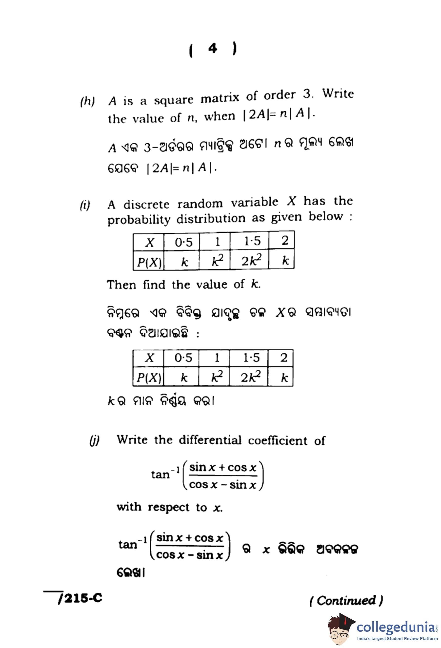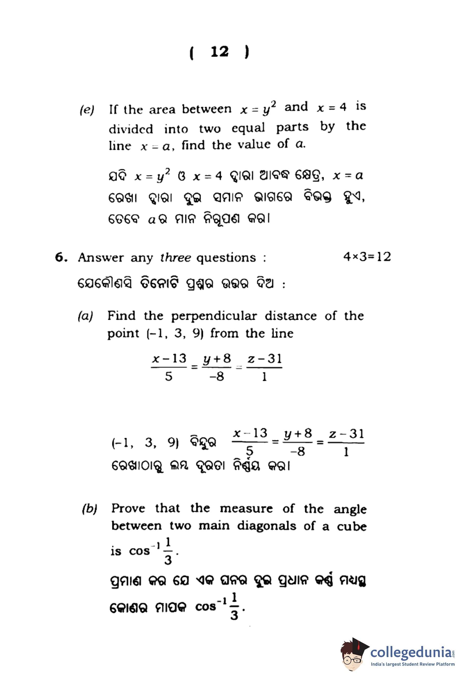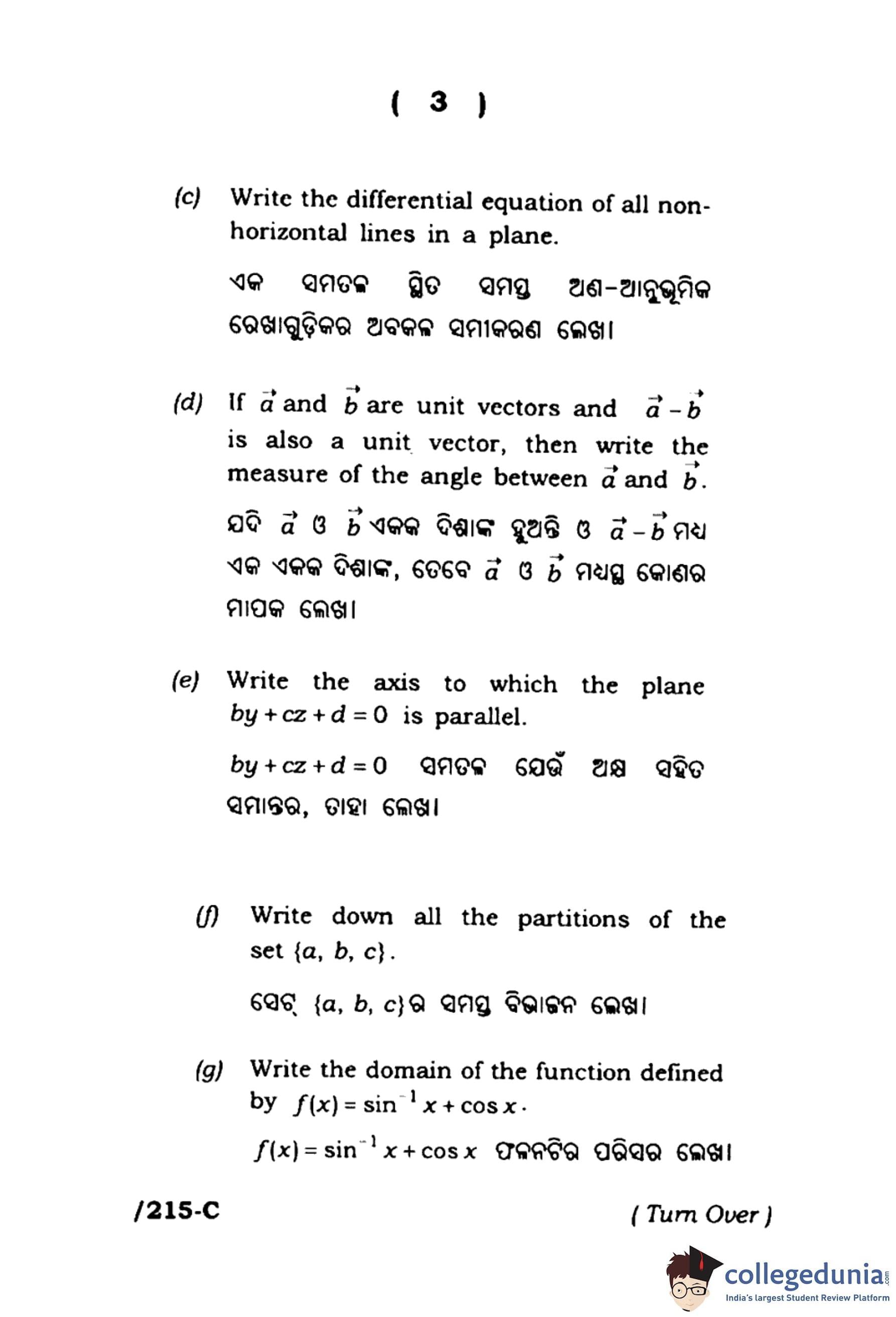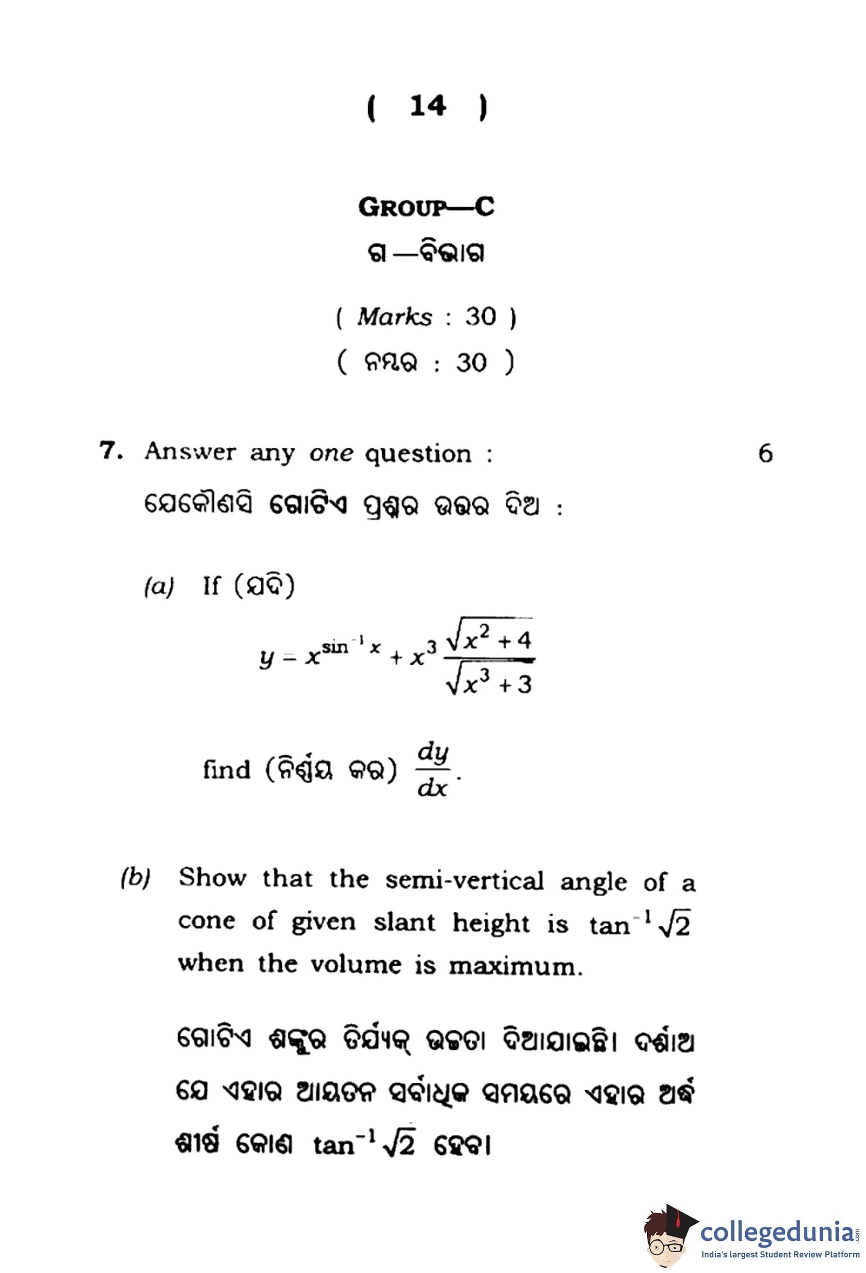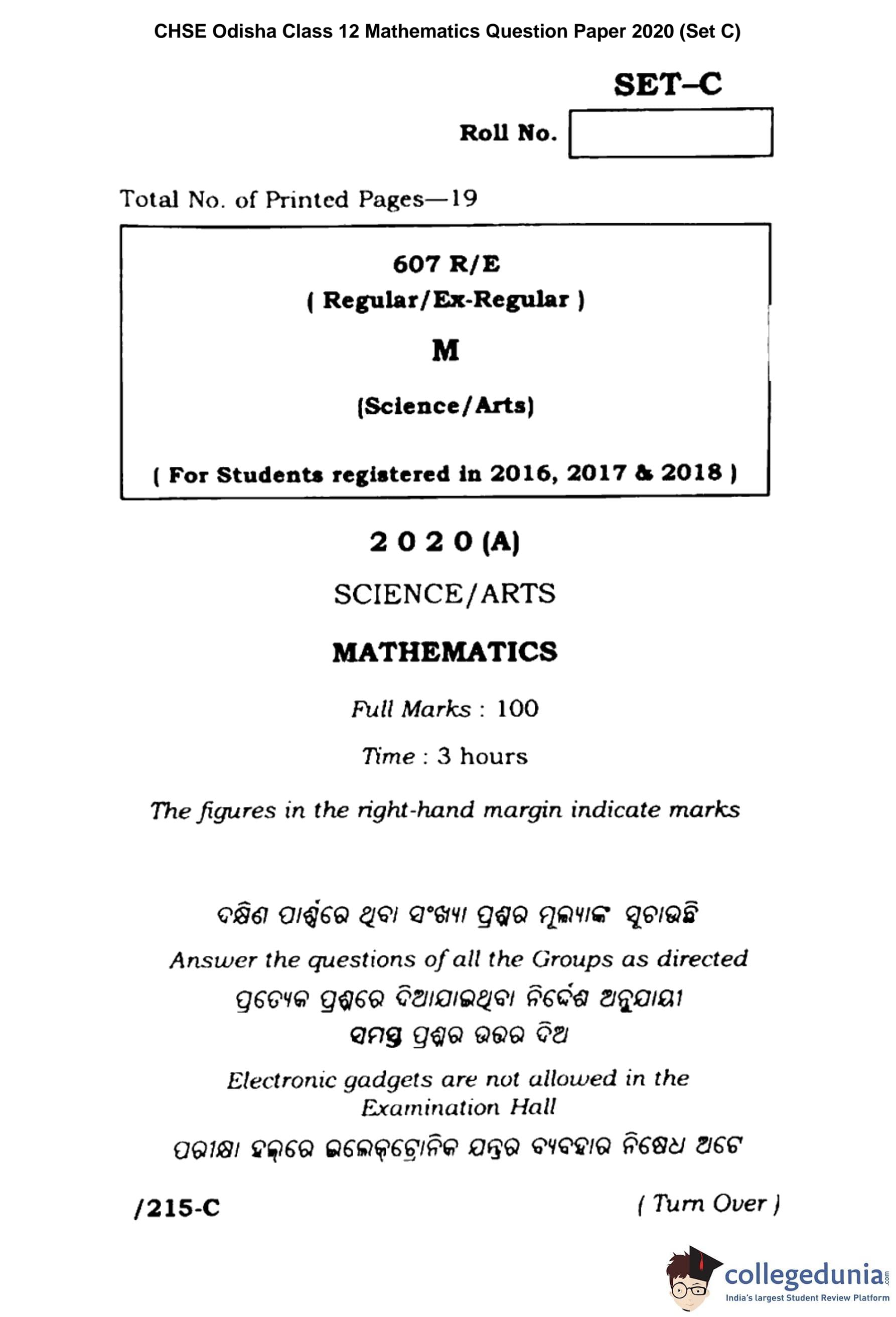 CHSE Odisha Class 12 Mathematics (Set C) Question Paper 2020 with Answer Key