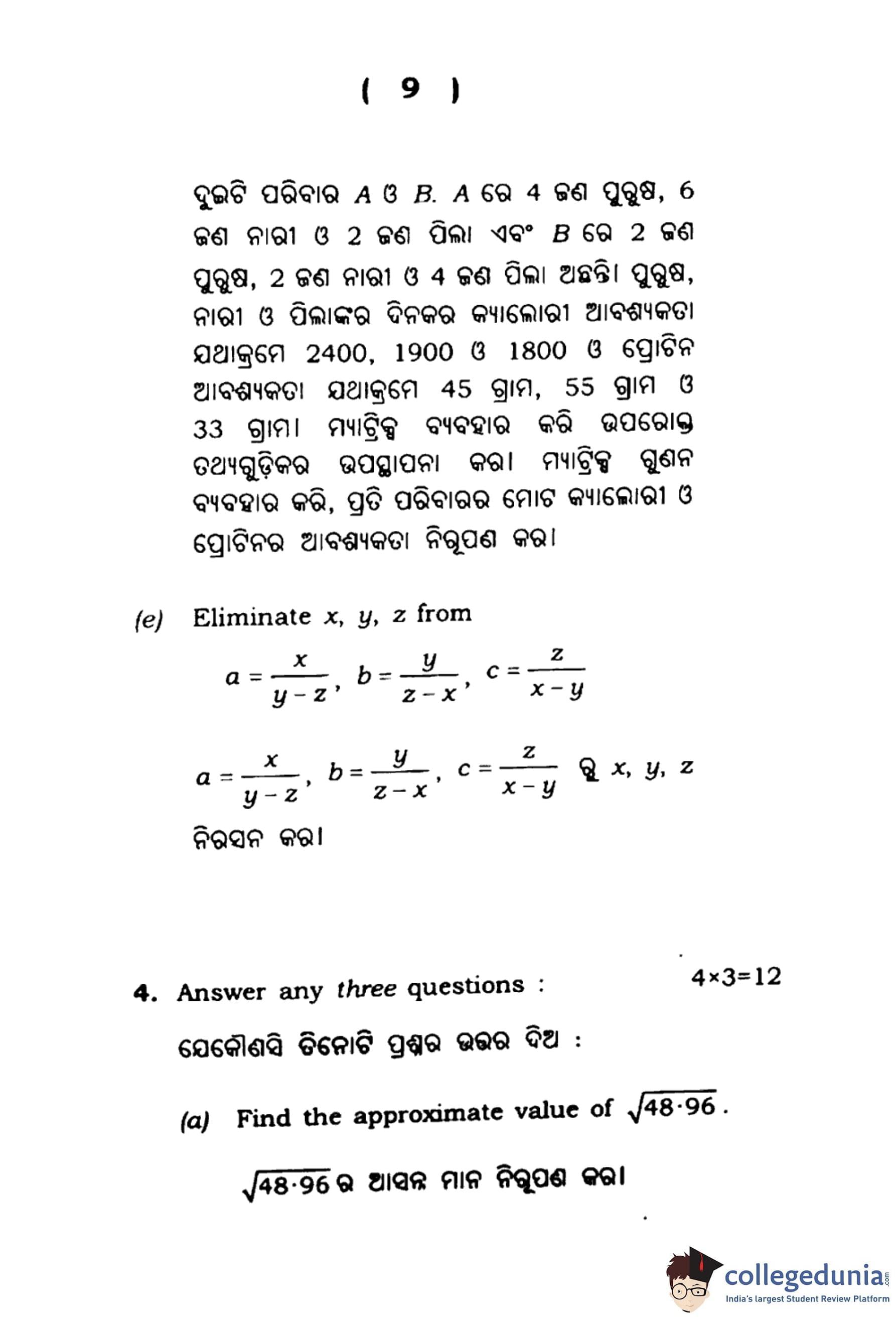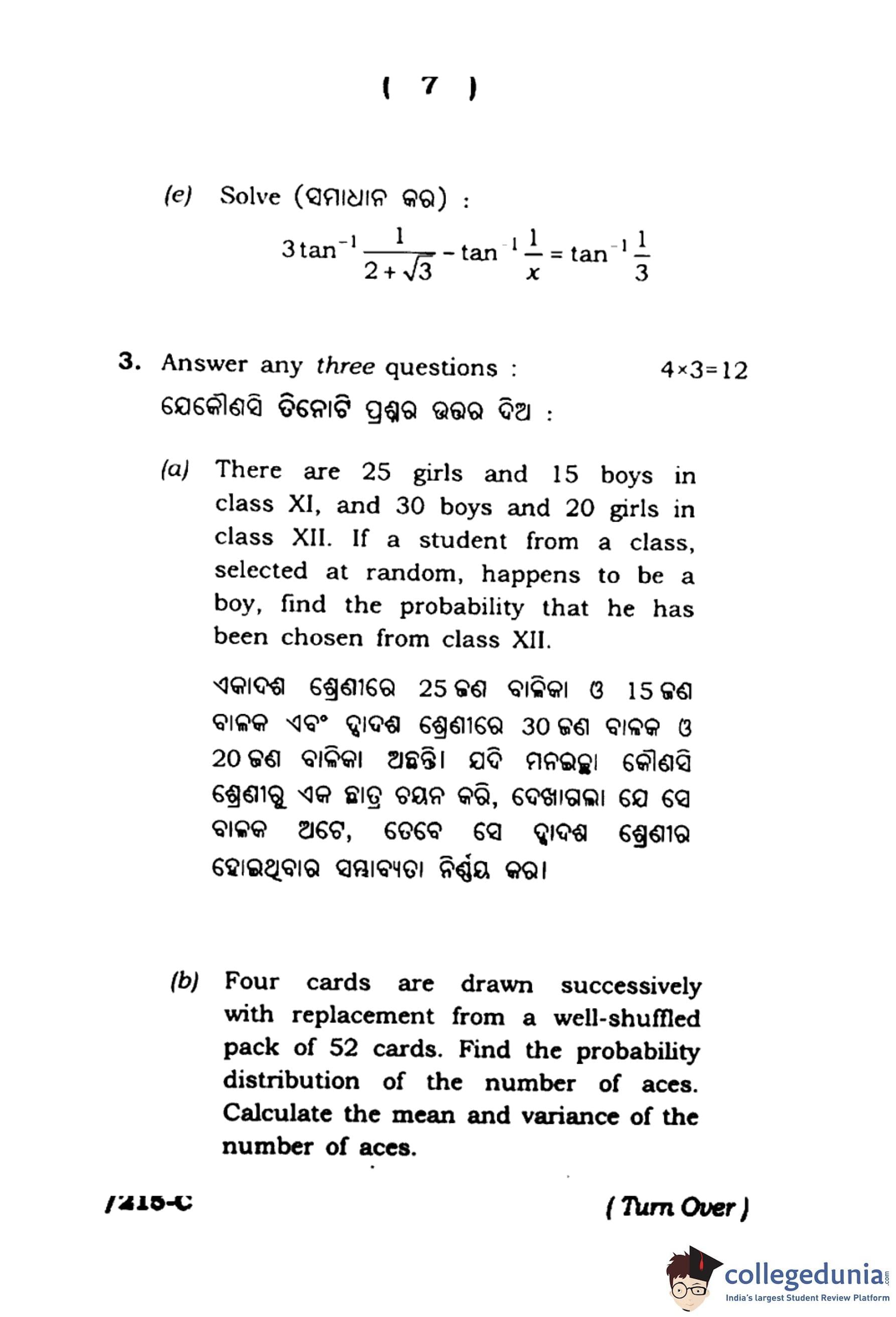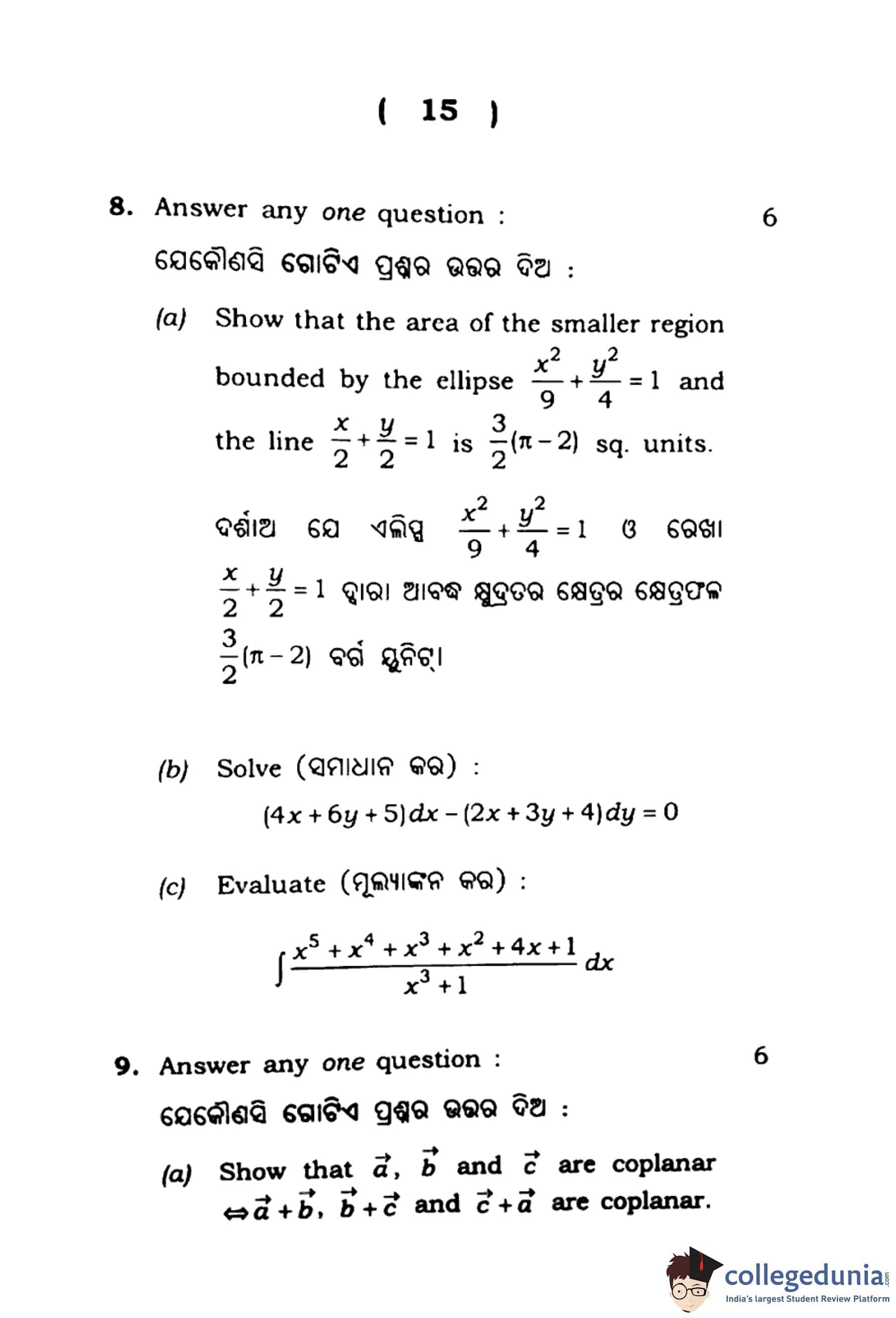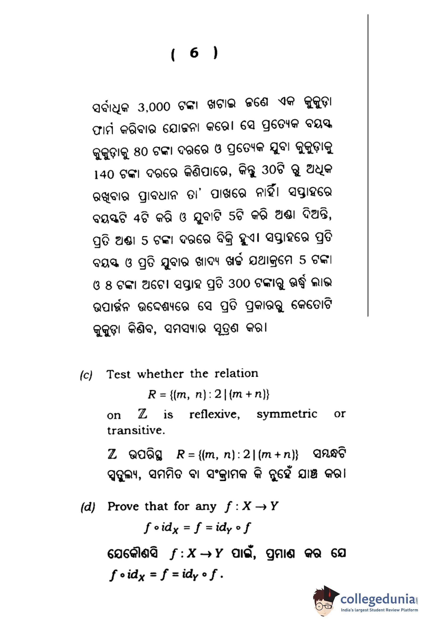 CHSE Odisha Class 12 Mathematics (Set C) Question Paper 2020 with Answer Key