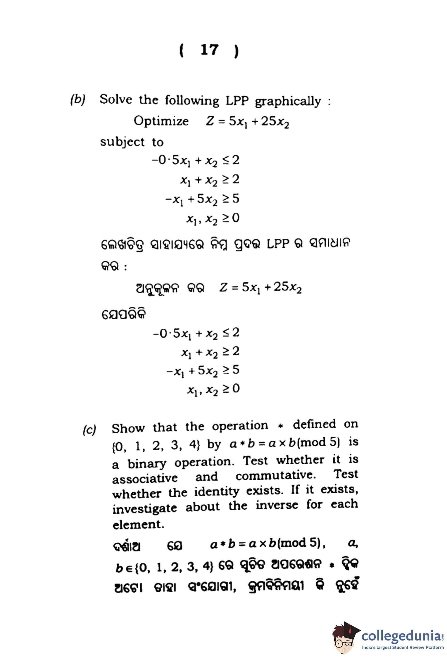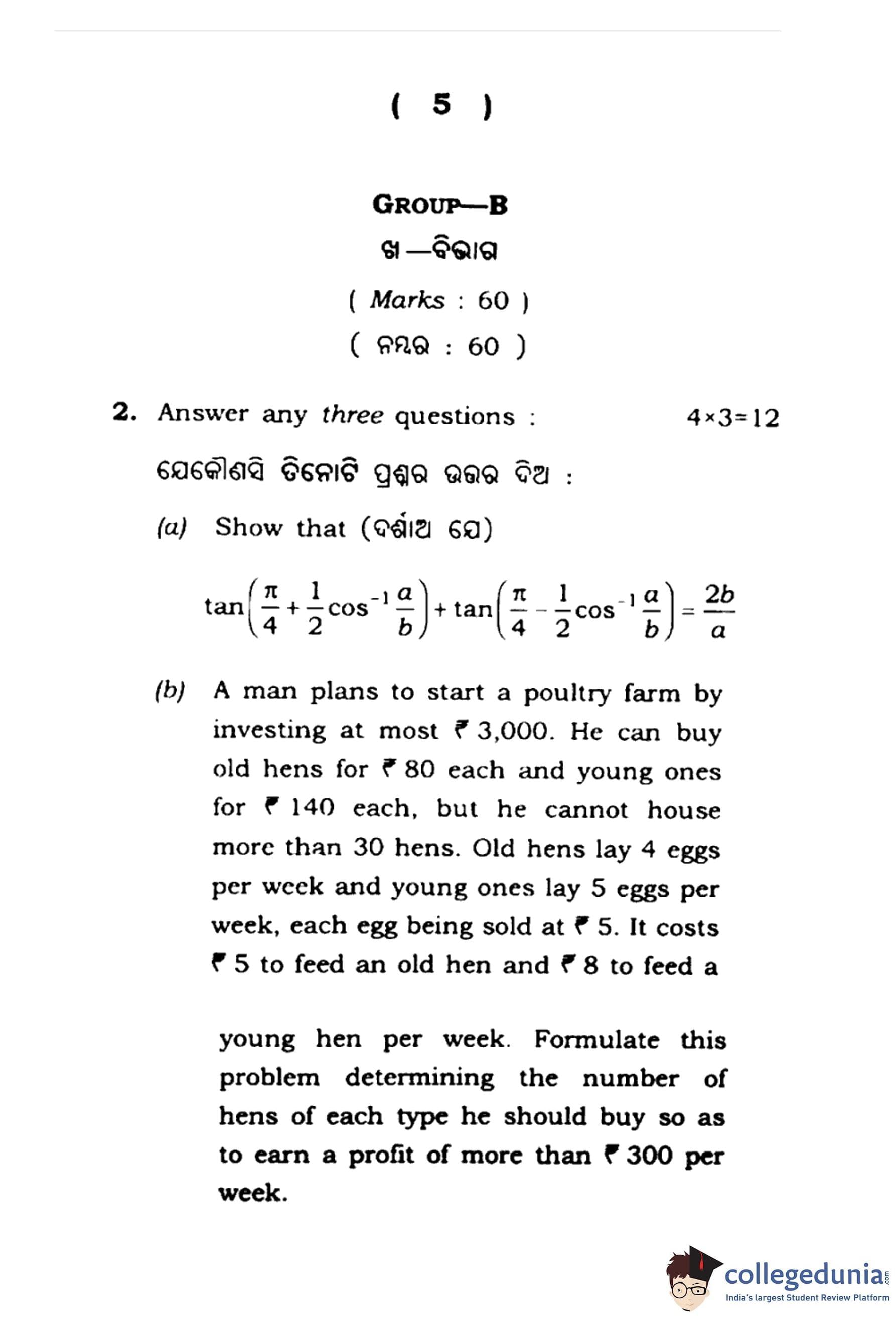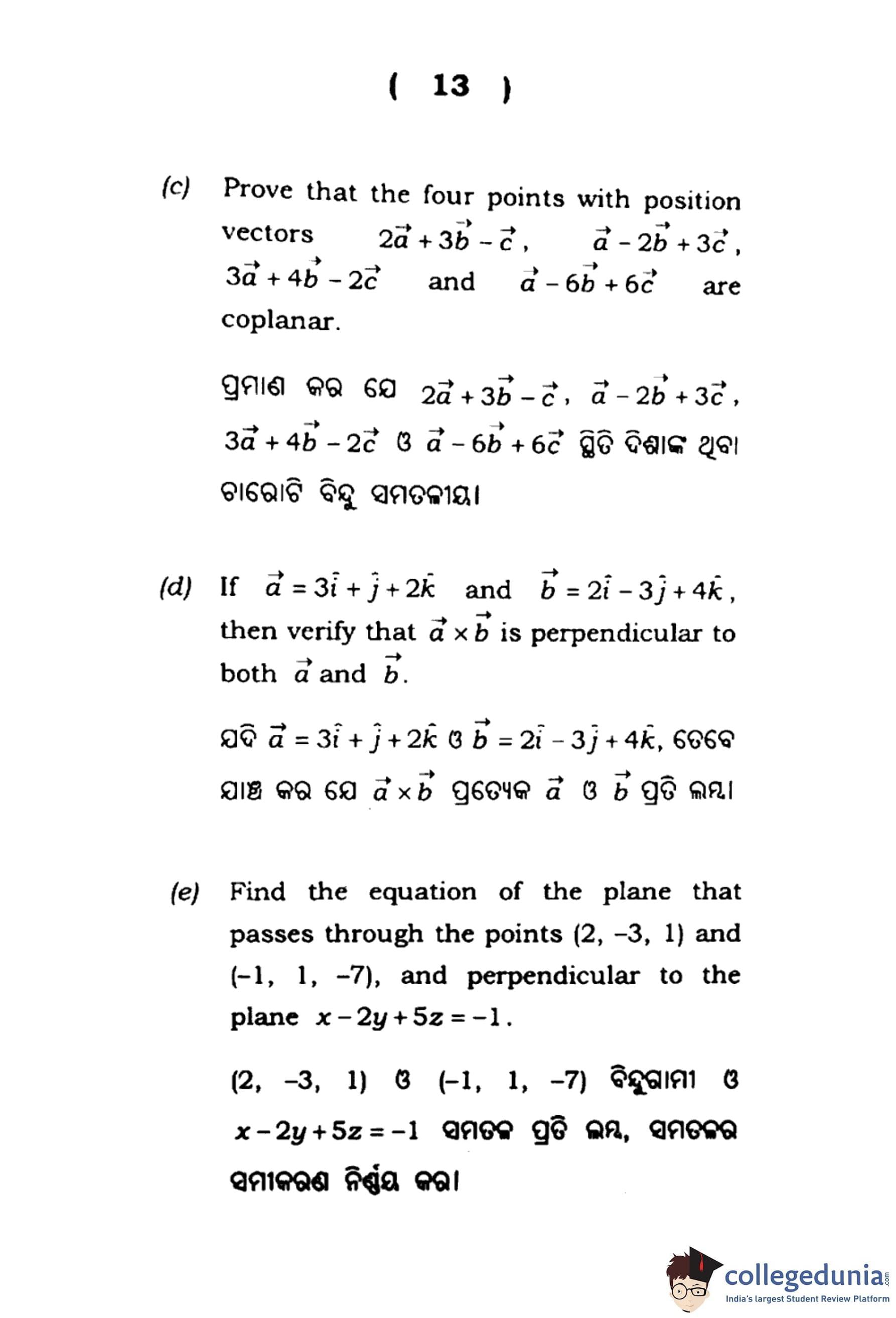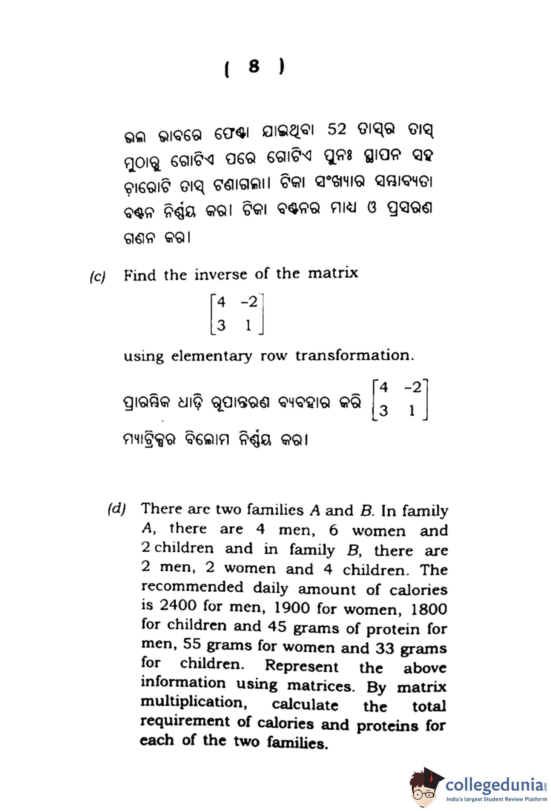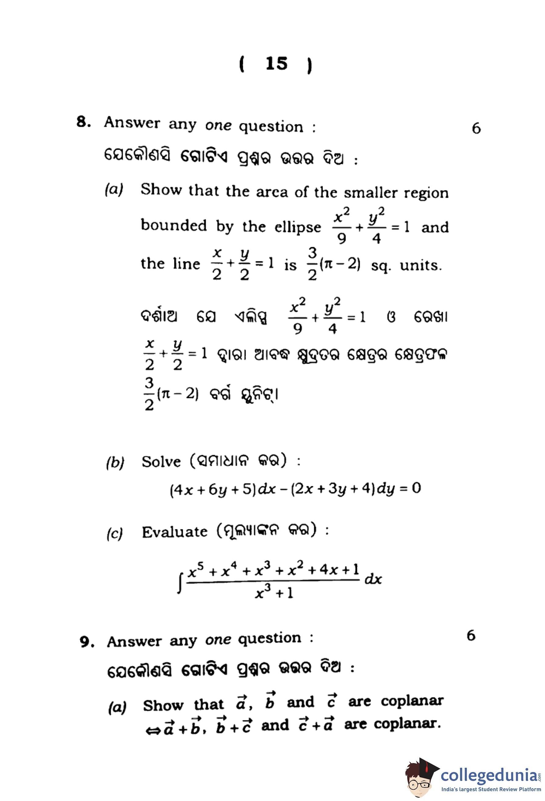 CHSE Odisha Class 12 Mathematics (Set C) Question Paper 2020 with Answer Key