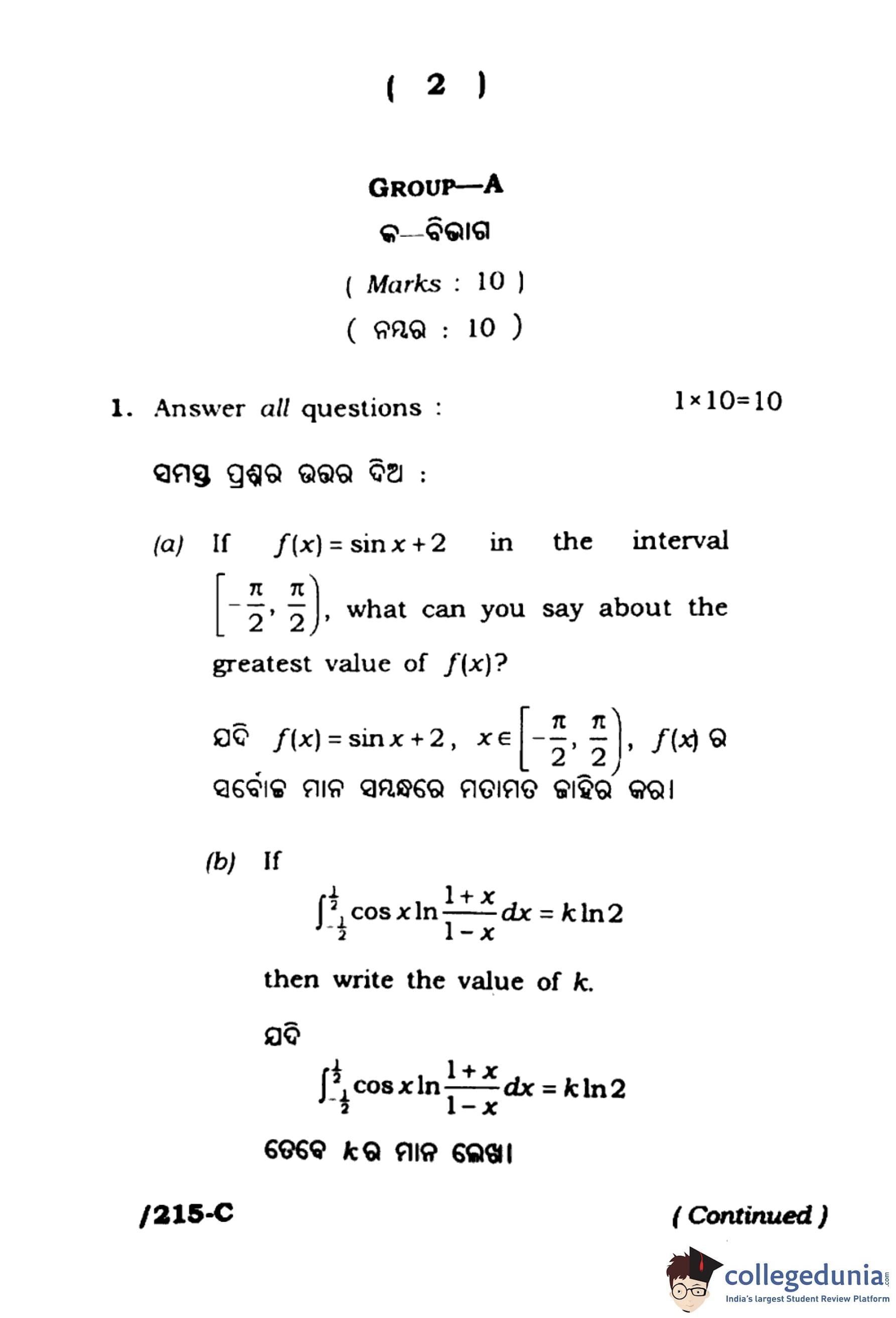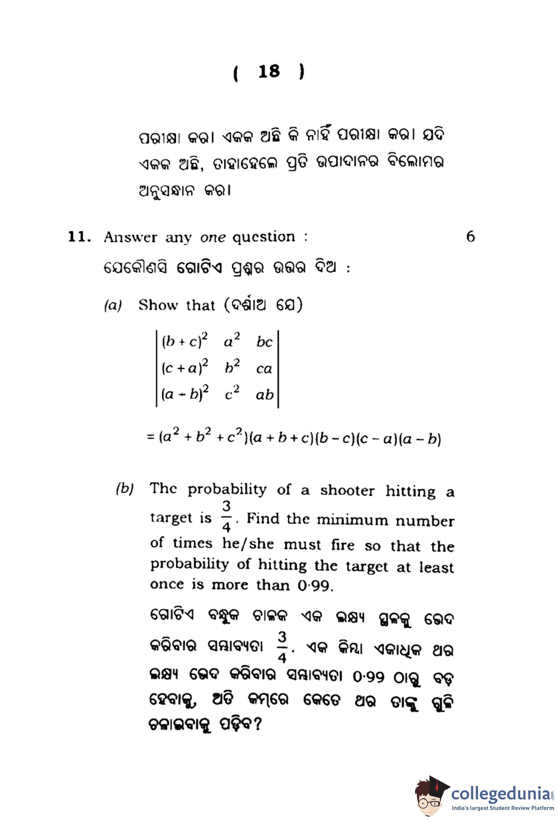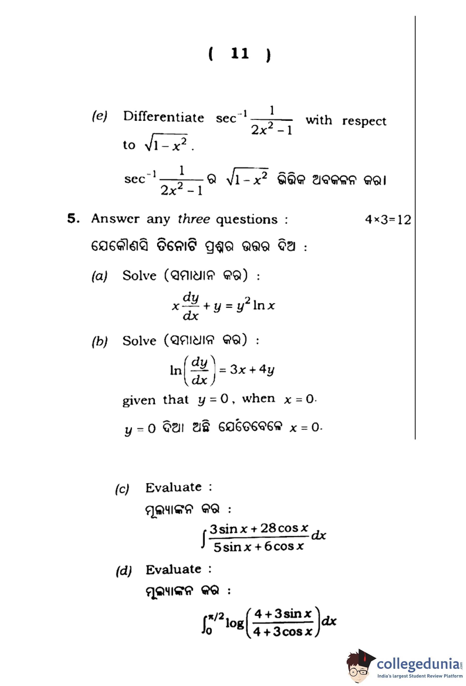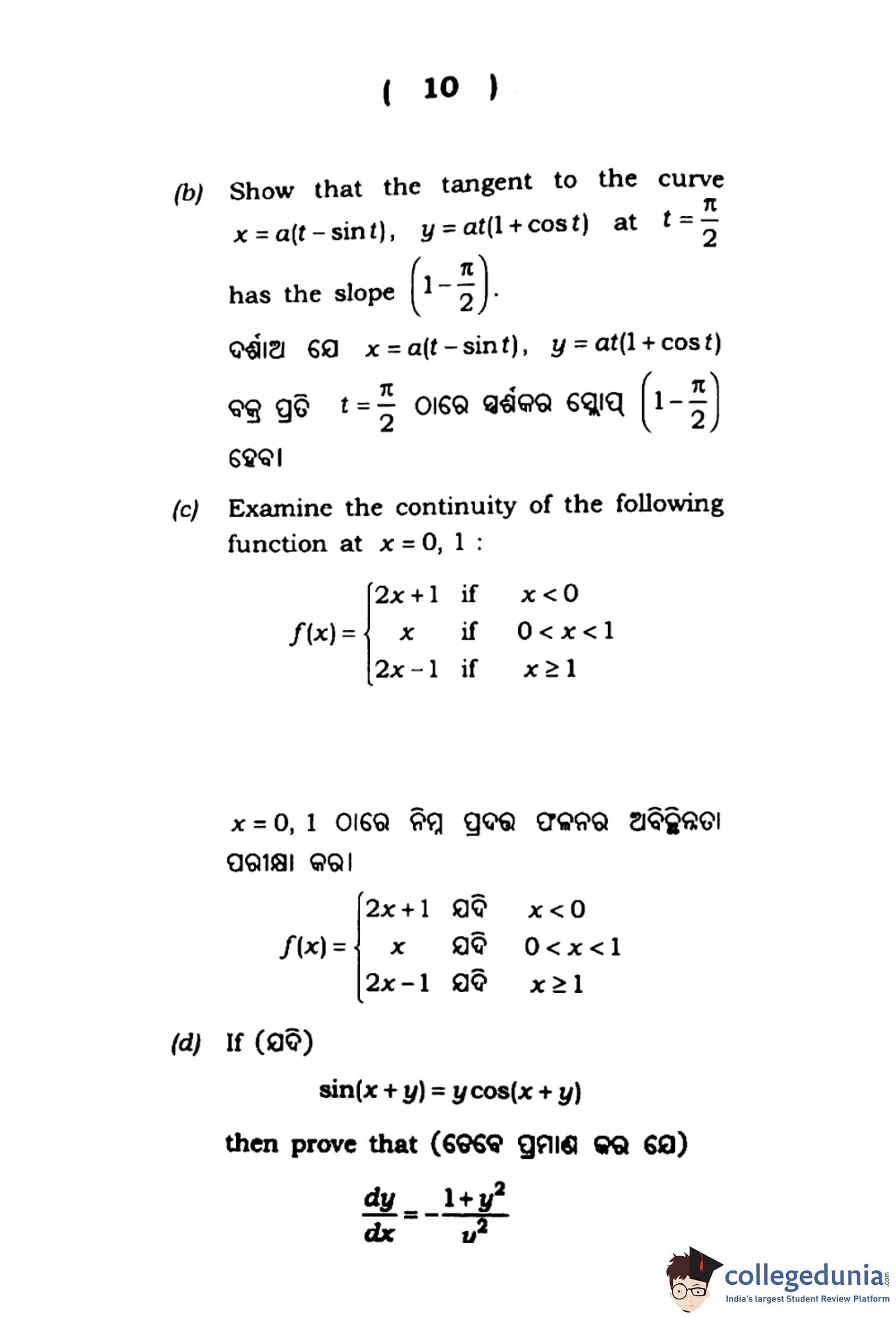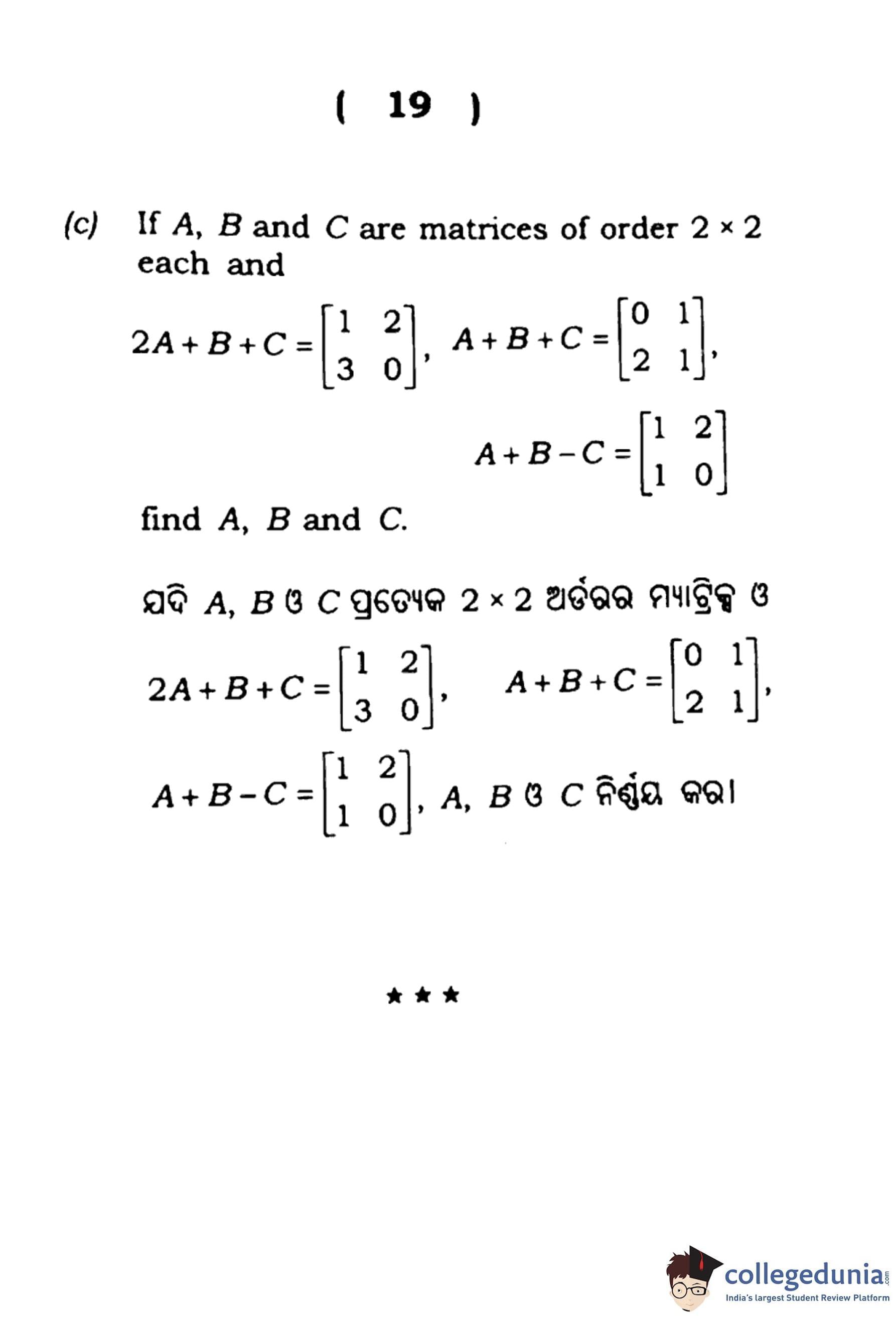 CHSE Odisha Class 12 Mathematics Question Paper 2020 with Answer Key pdf (Set C) is available for download here. The exam was conducted by Council of Higher Secondary Education, Odisha on March 11, 2020 in the Morning Session 10 AM to 1 PM. The question paper comprised a total of 11 questions divided among 3 sections.