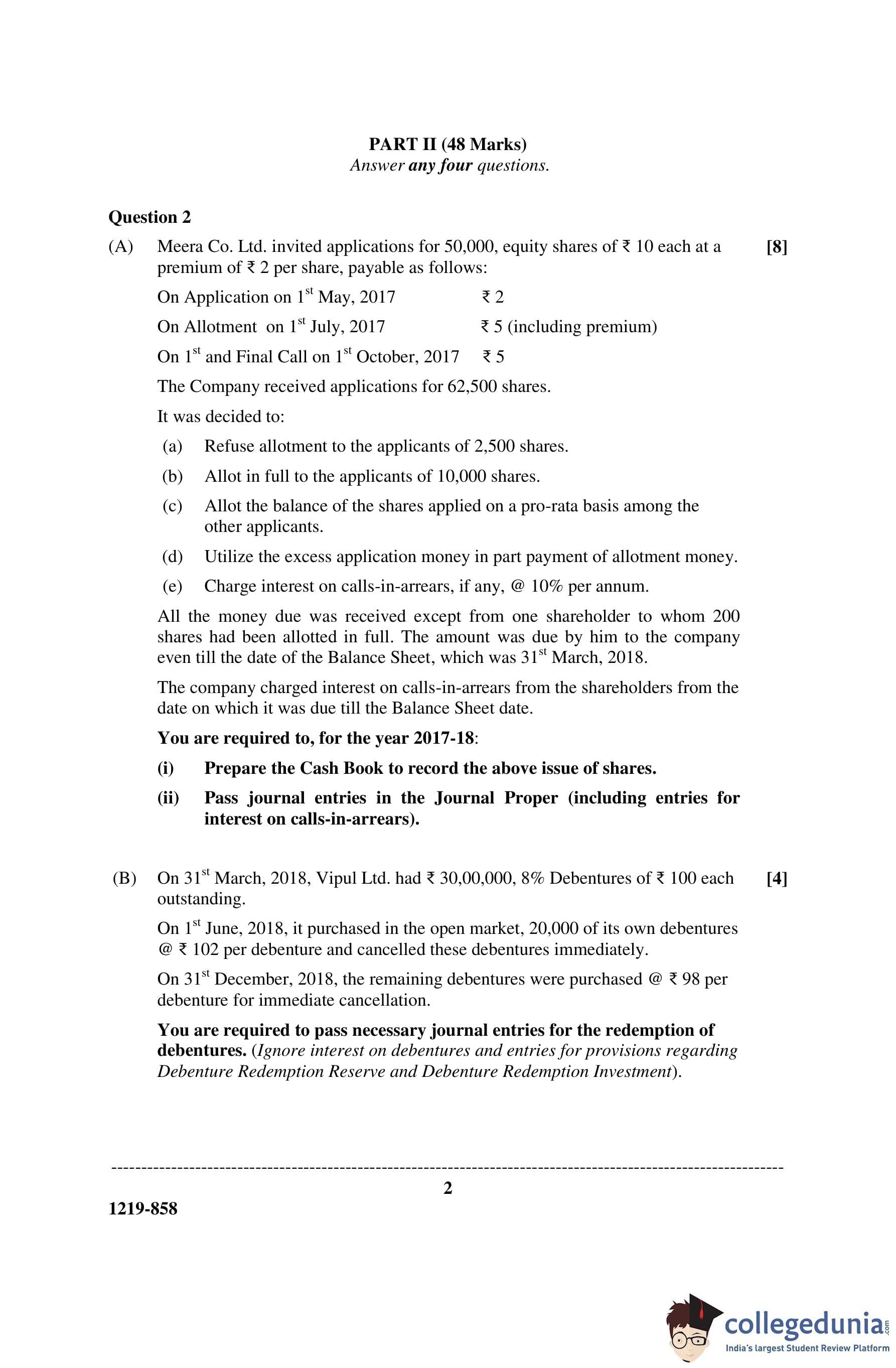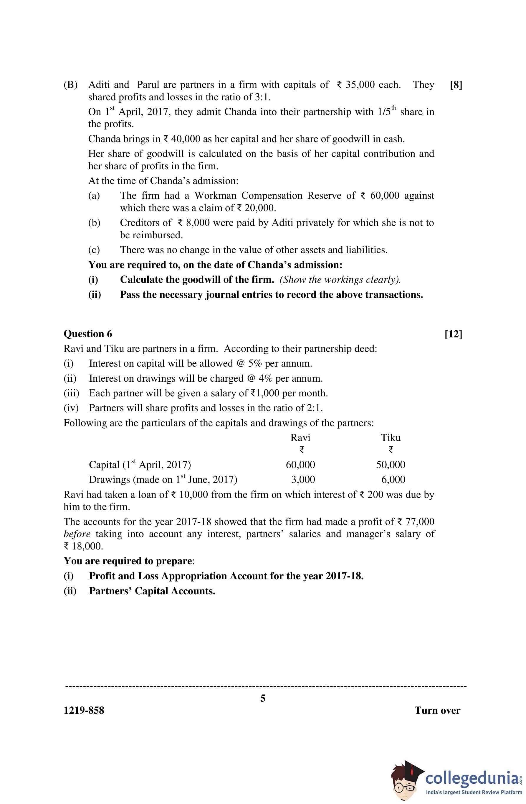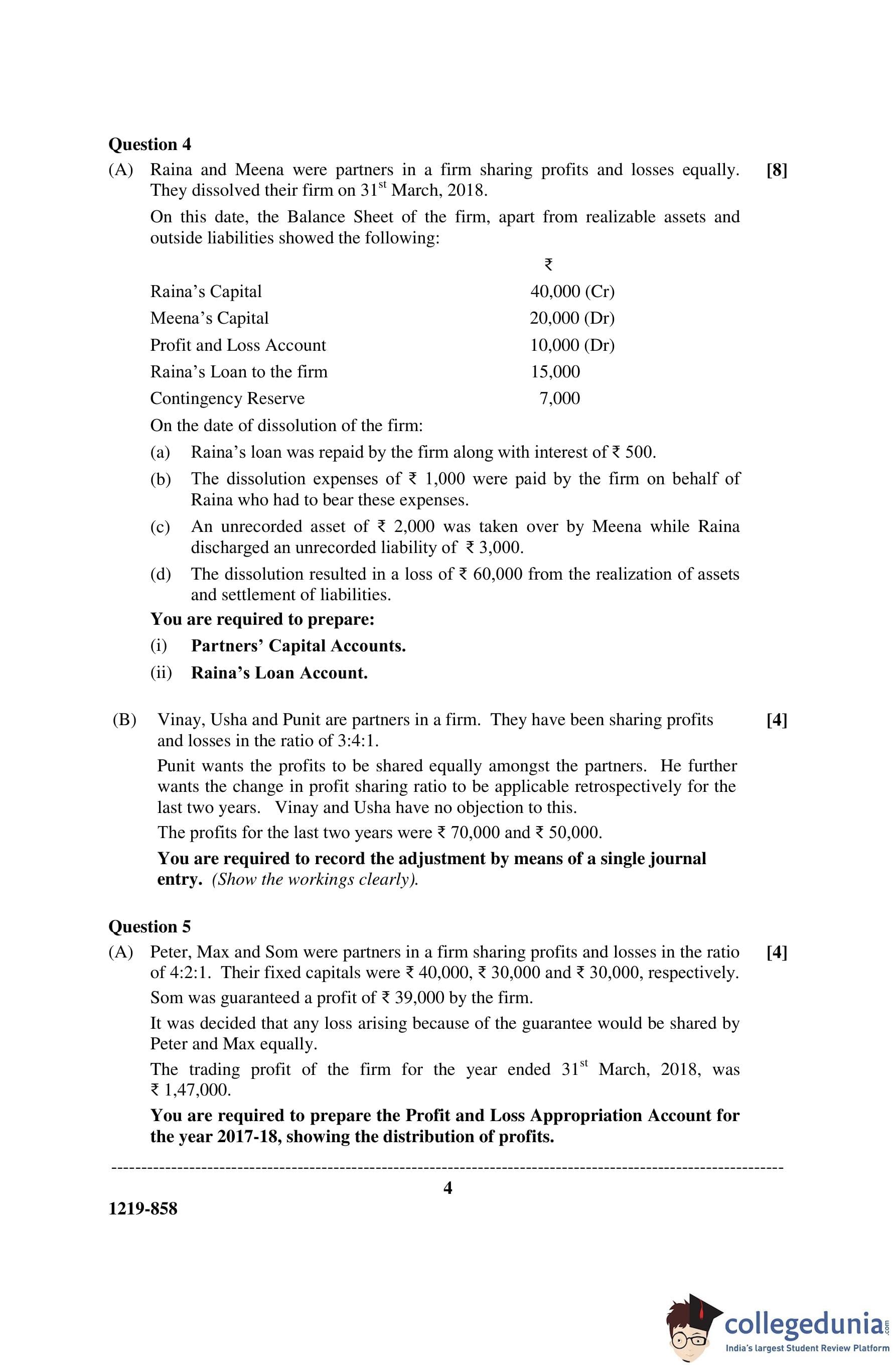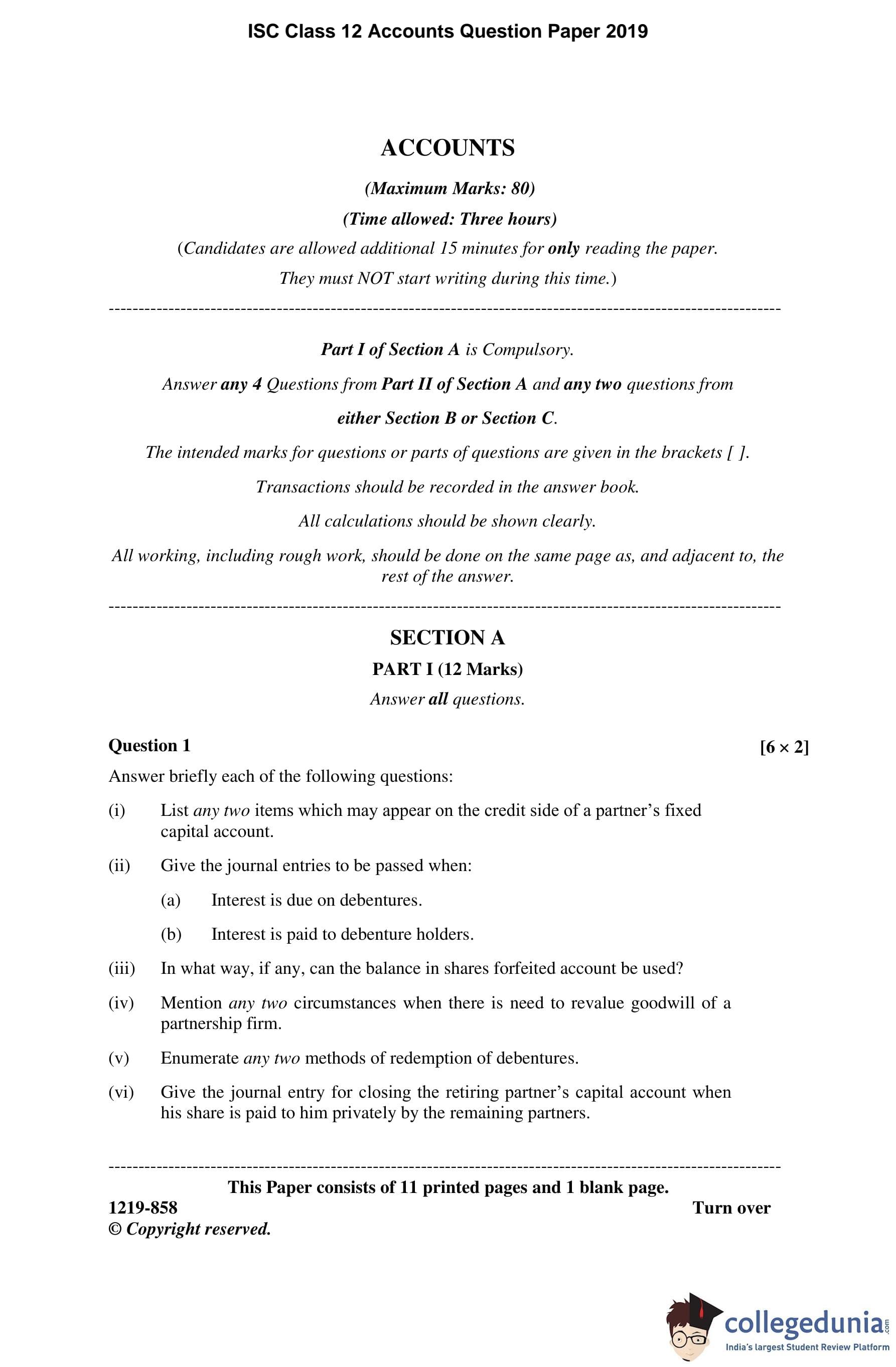 ISC Class 12 Accounts Question Paper 2019 with Answer Key