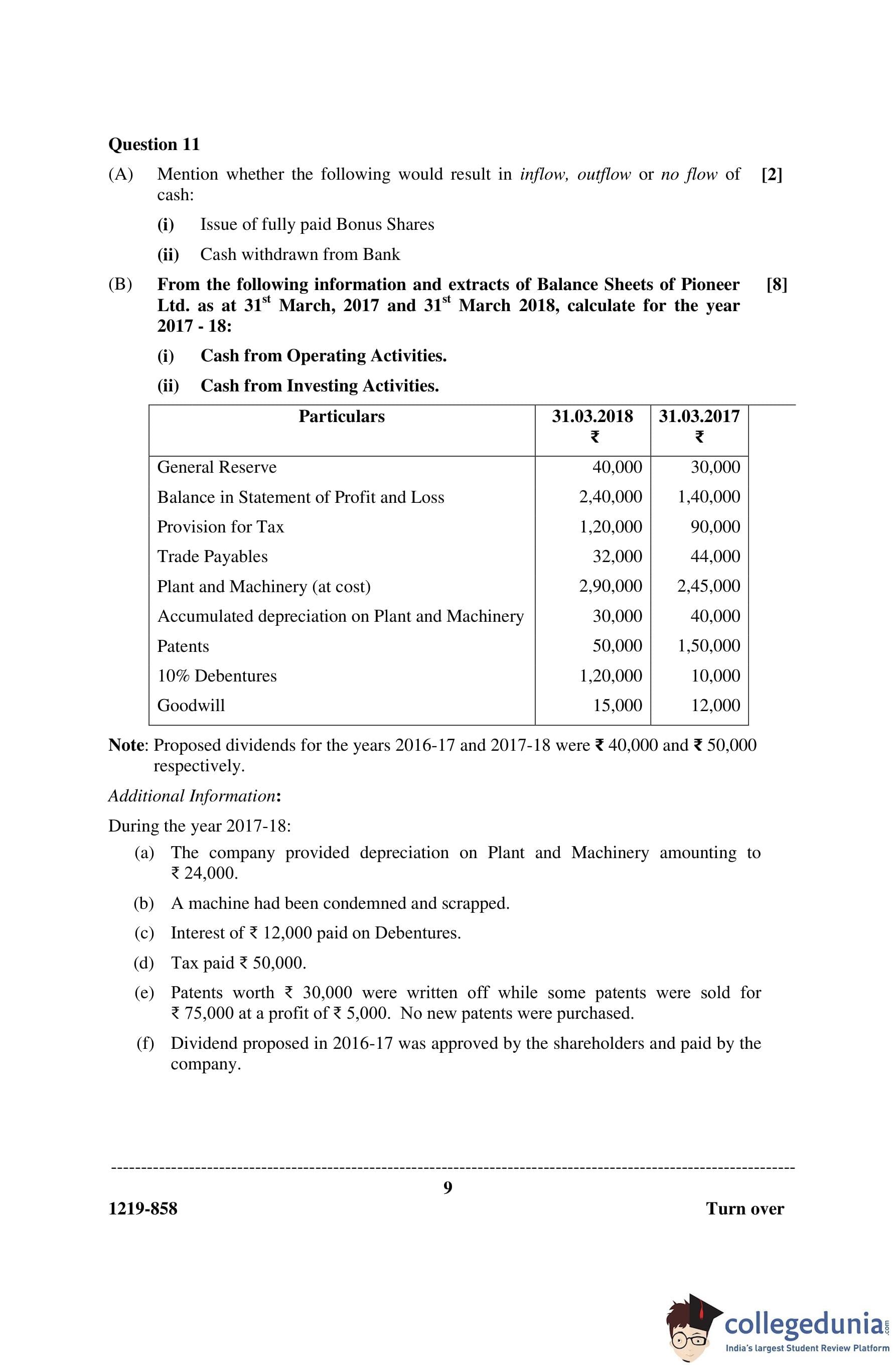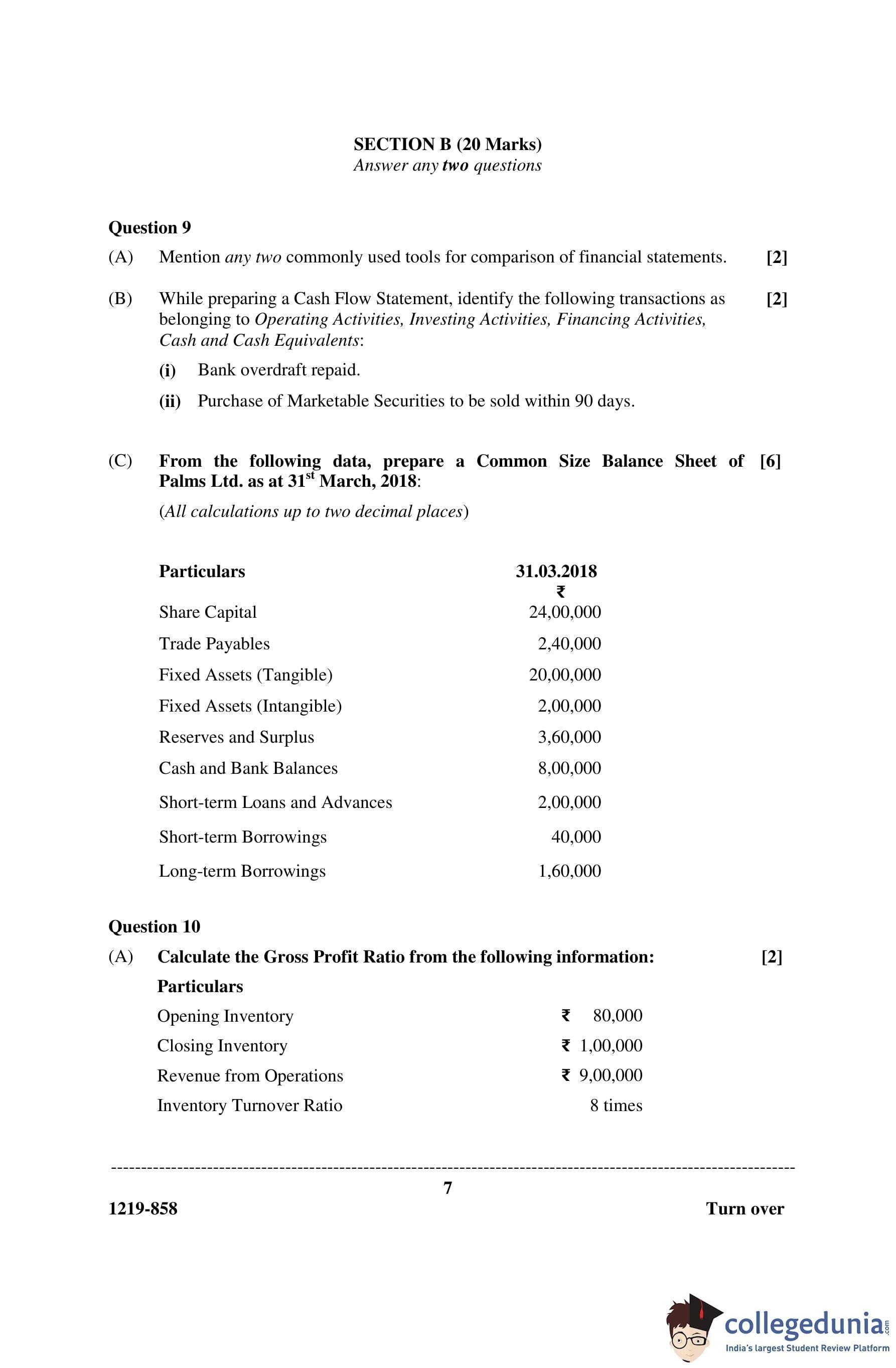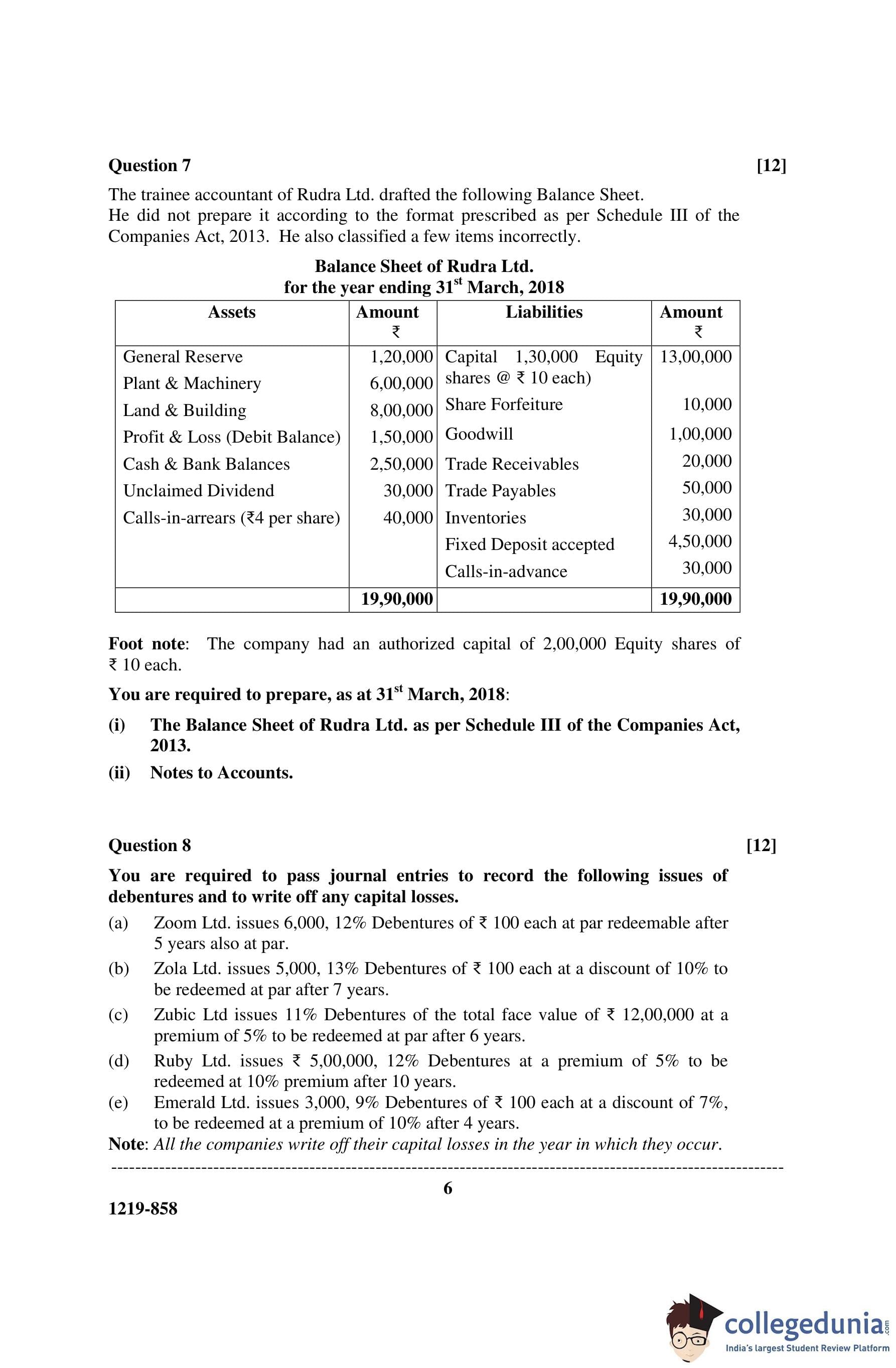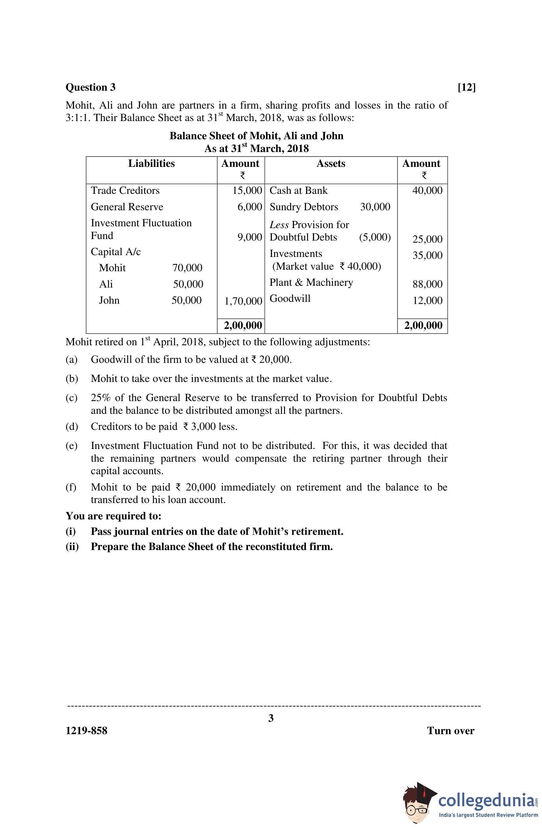 ISC Class 12 Accounts Question Paper 2019 with Answer Key