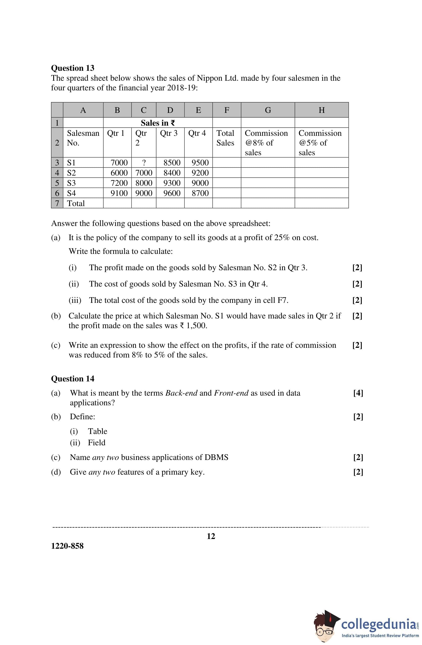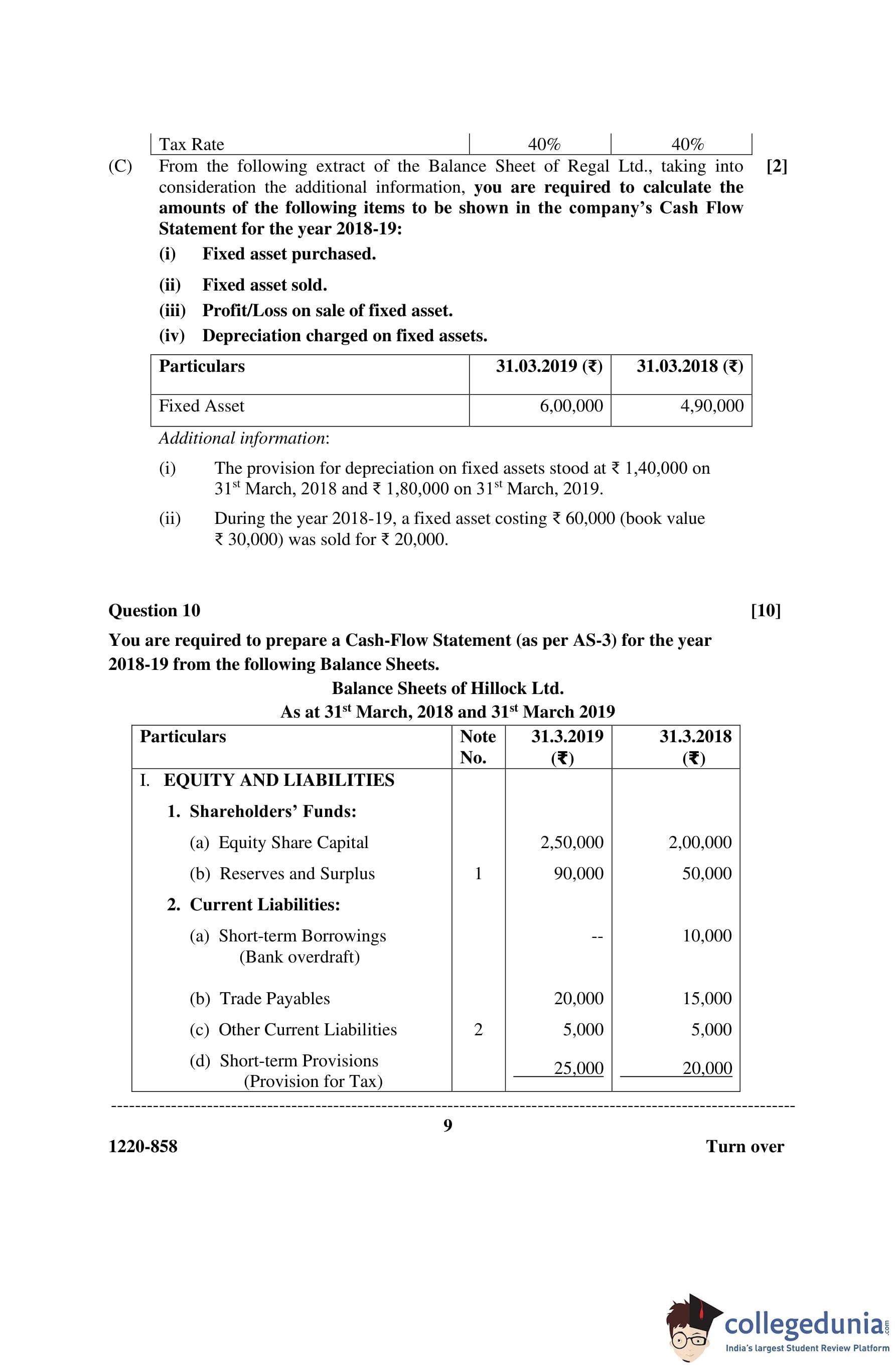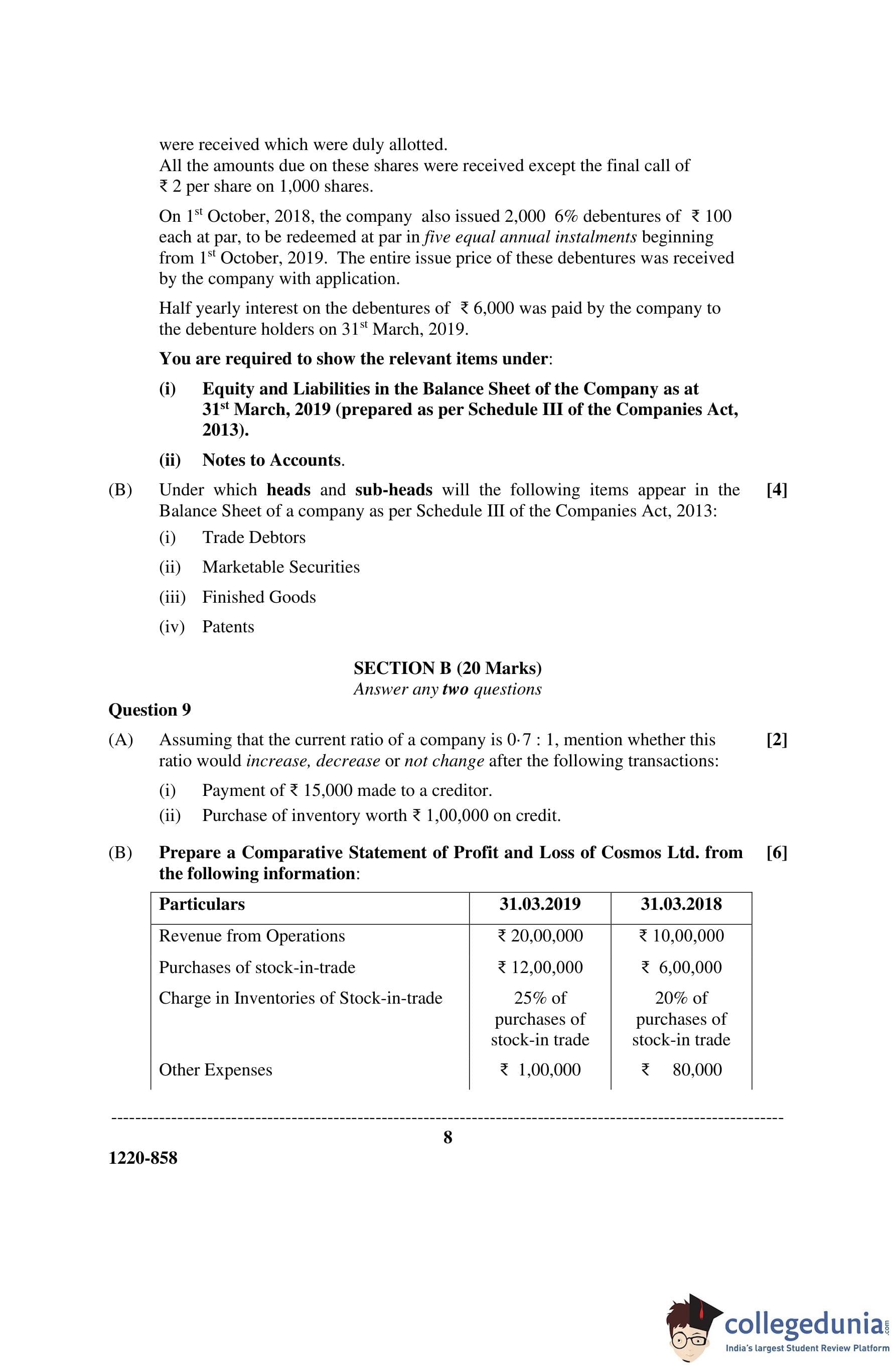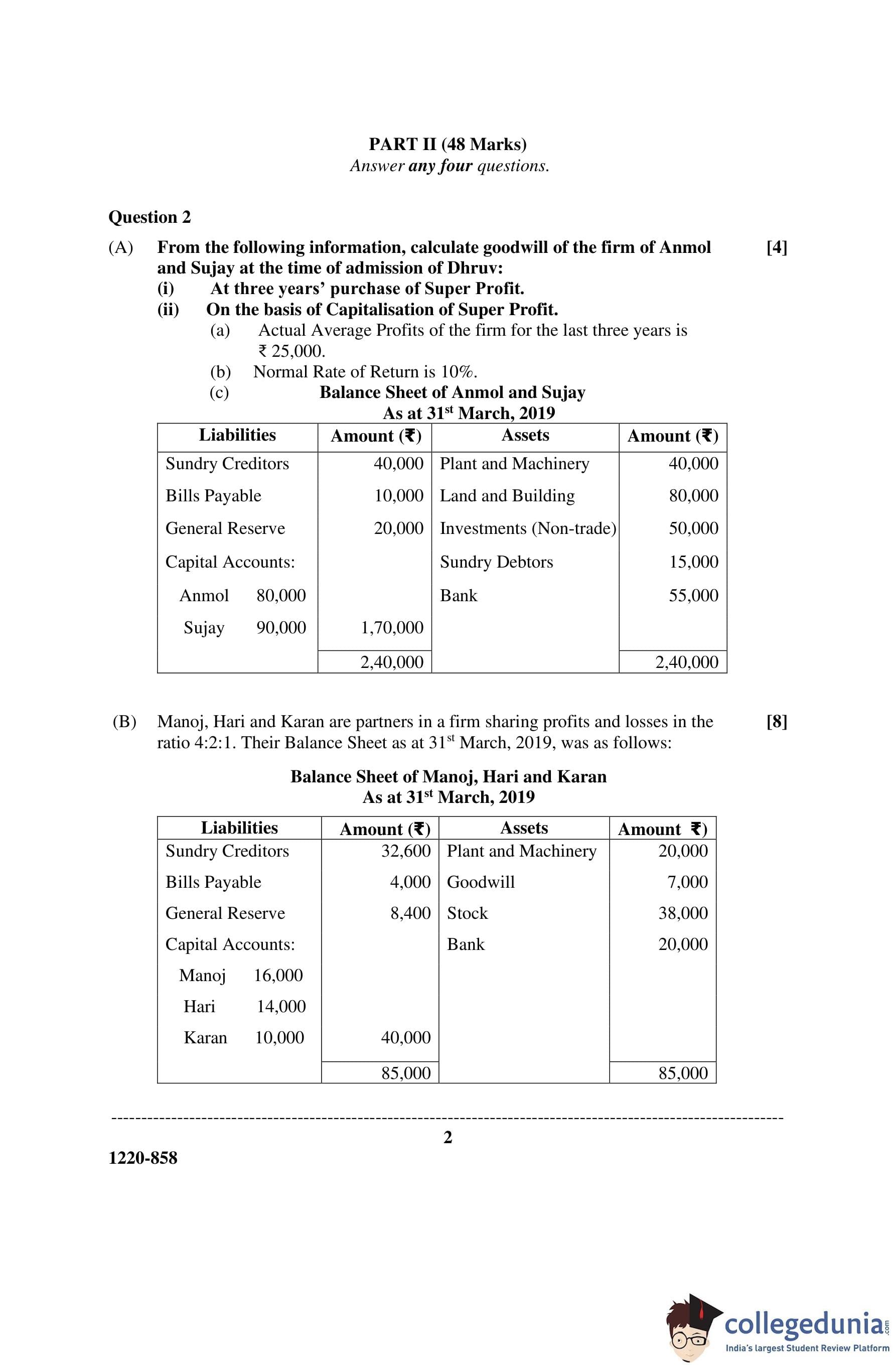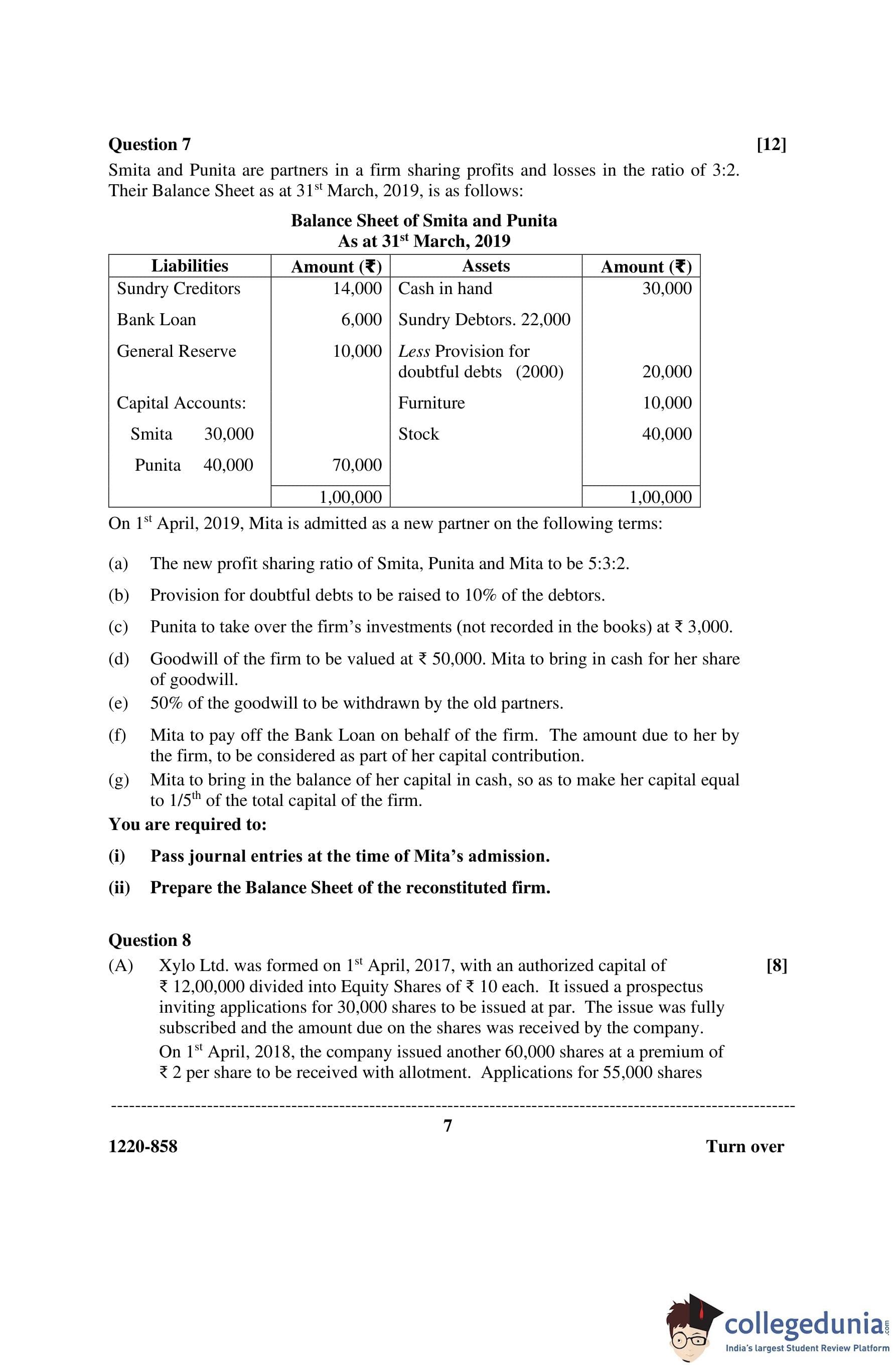 ISC Class 12 Accounts Question Paper 2020 with Answer Key
