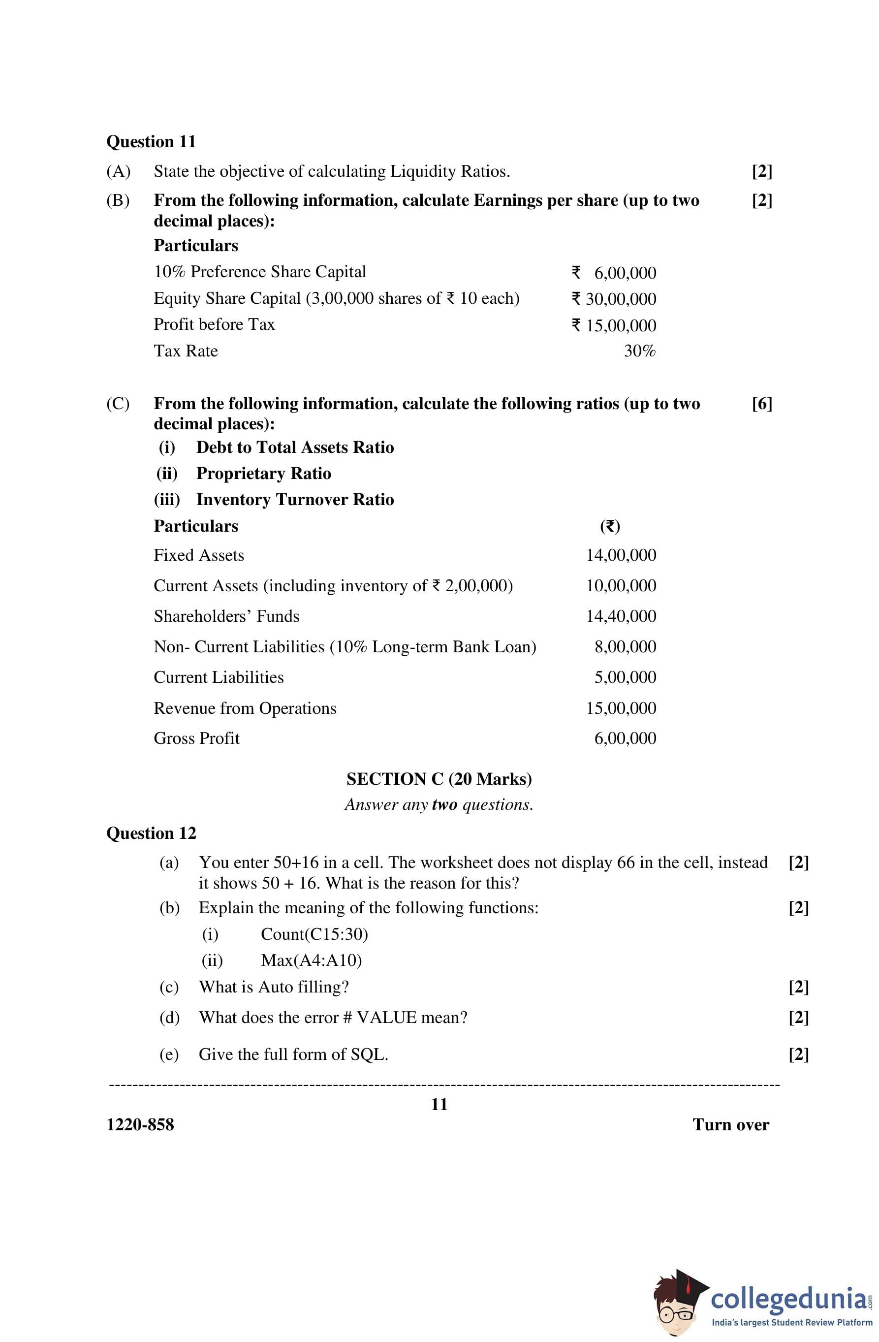 ISC Class 12 Accounts Question Paper 2020 with Answer Key pdf is available for download here. The exam was conducted by Council for the Indian School Certificate Examinations on February 11, 2020 in the Afternoon Session 2 PM to 5 PM. The question paper comprised a total of 14 questions divided among 3 sections.