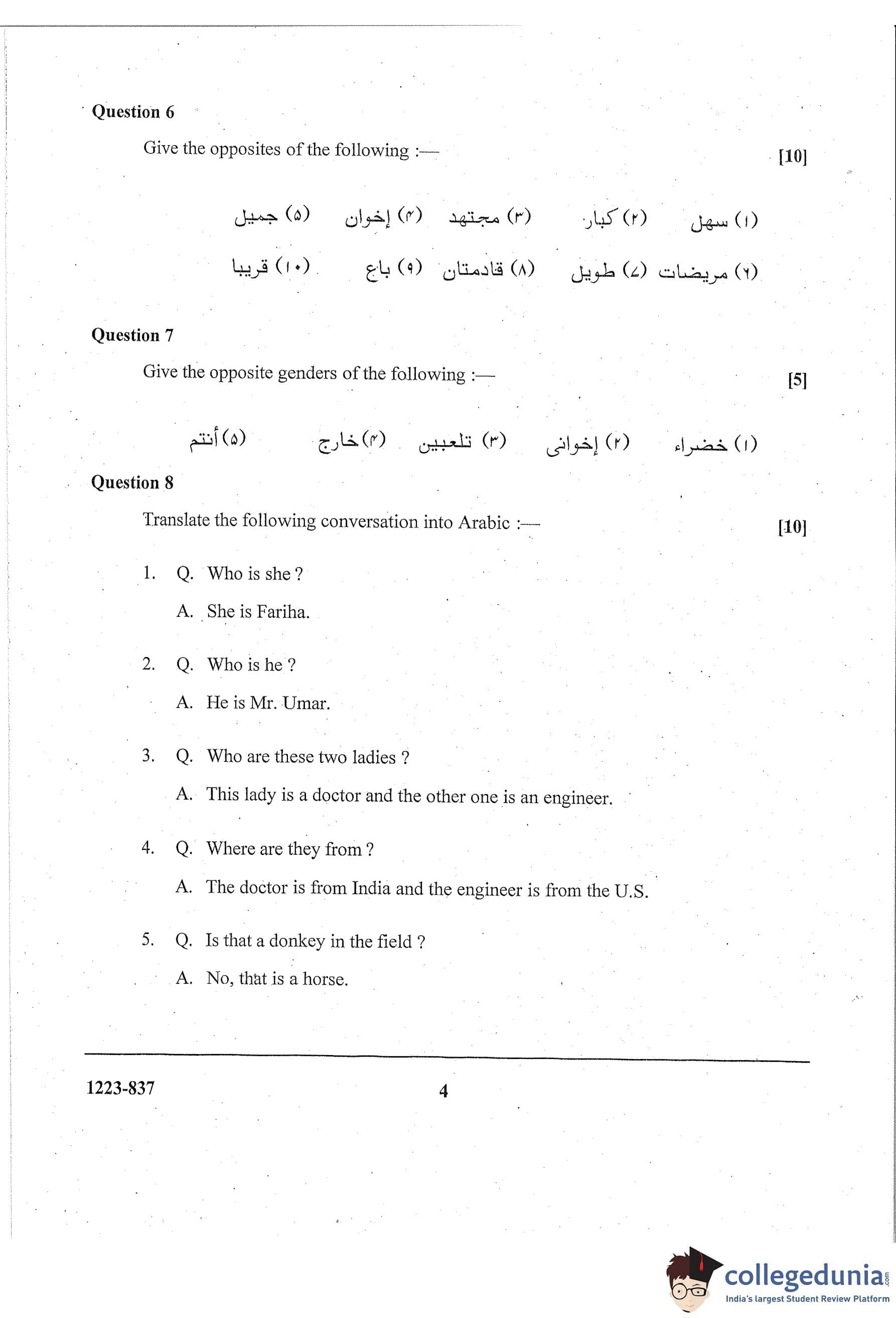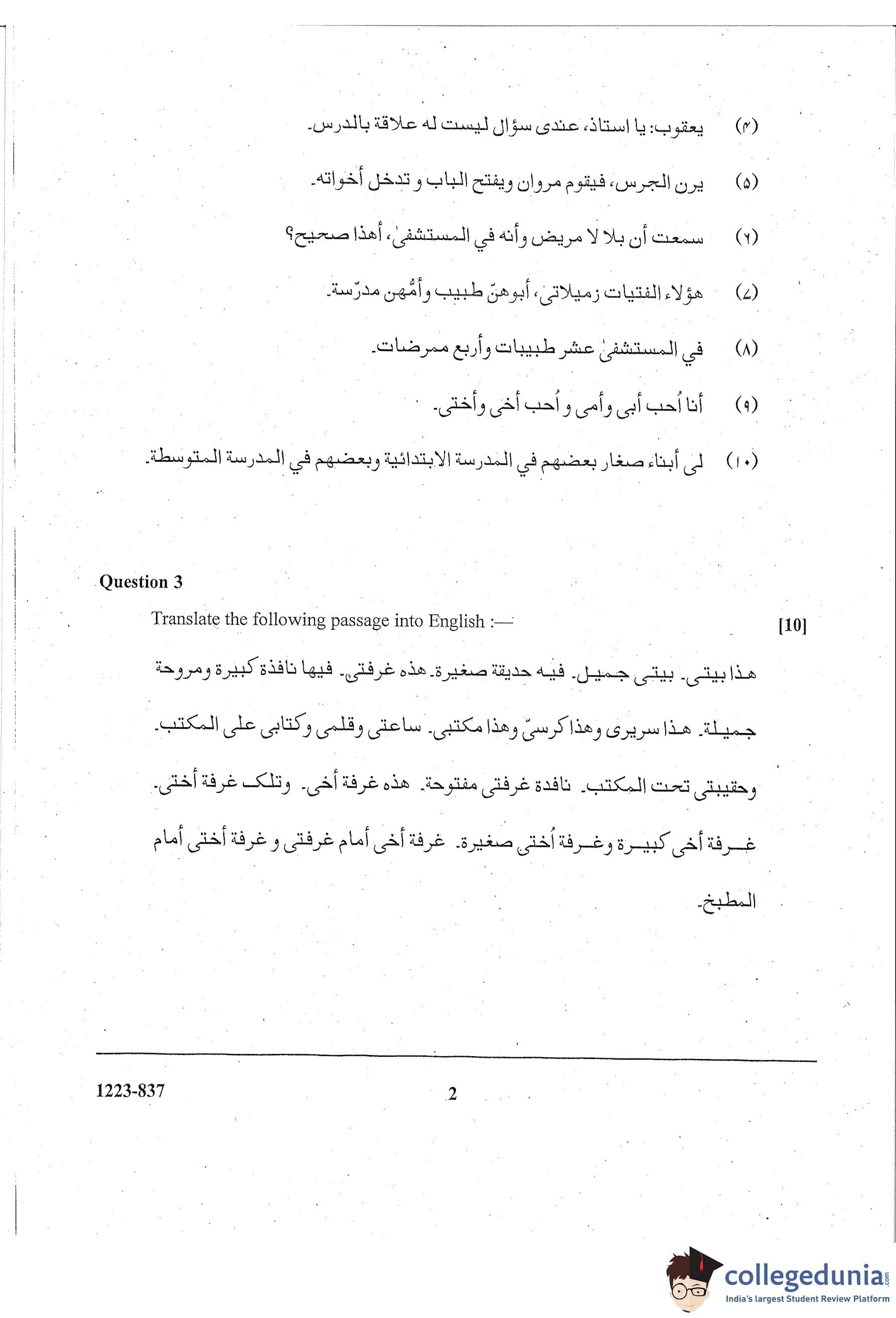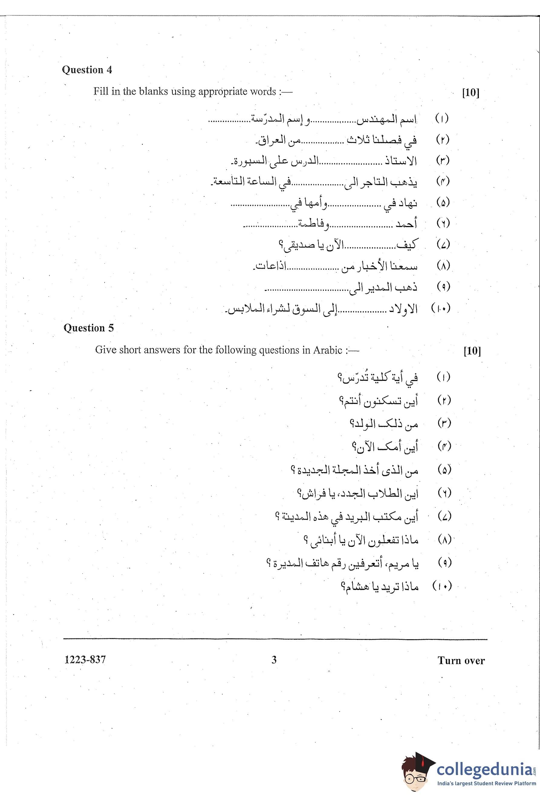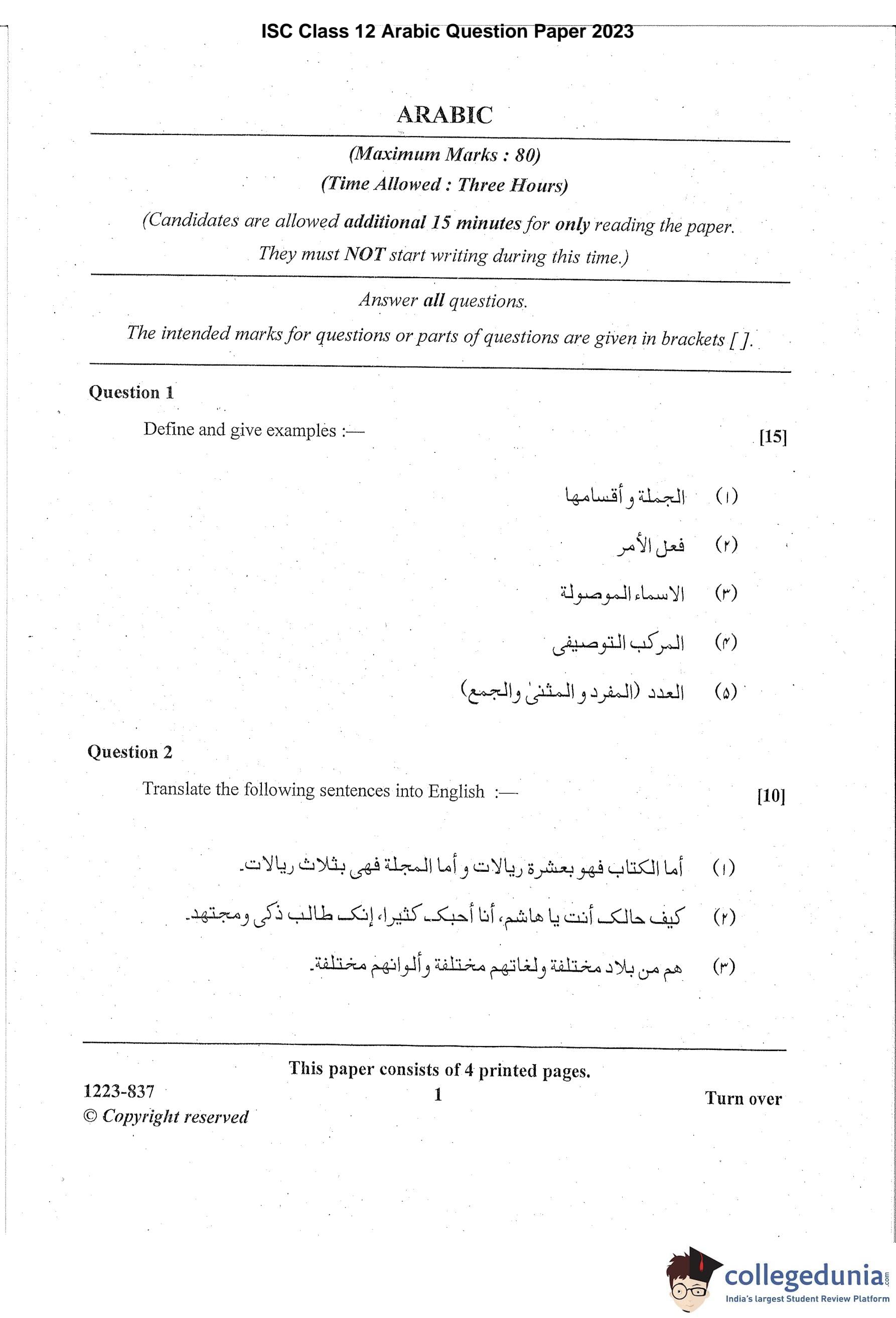 ISC Class 12 Arabic Question Paper 2023 with Answer Key
