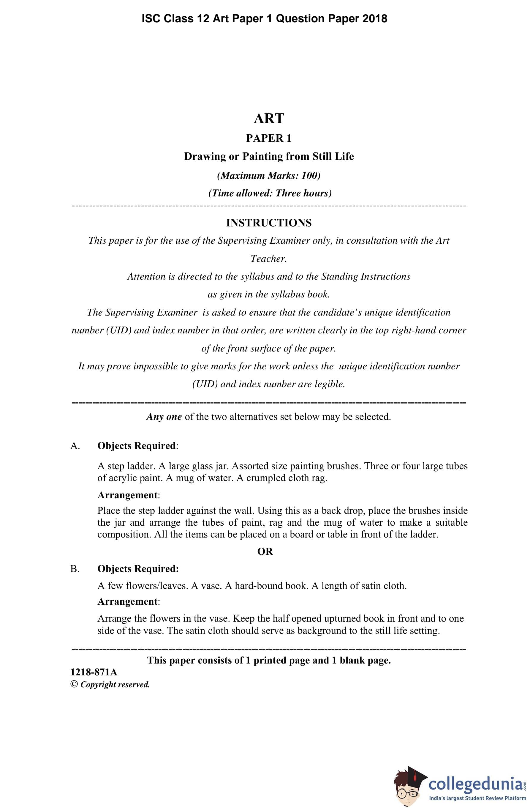 | ISC Class 12 Art Paper 1 Question Paper 2018 PDF | ISC Class 12 Art Paper 1 Answer Key 2018 PDF |