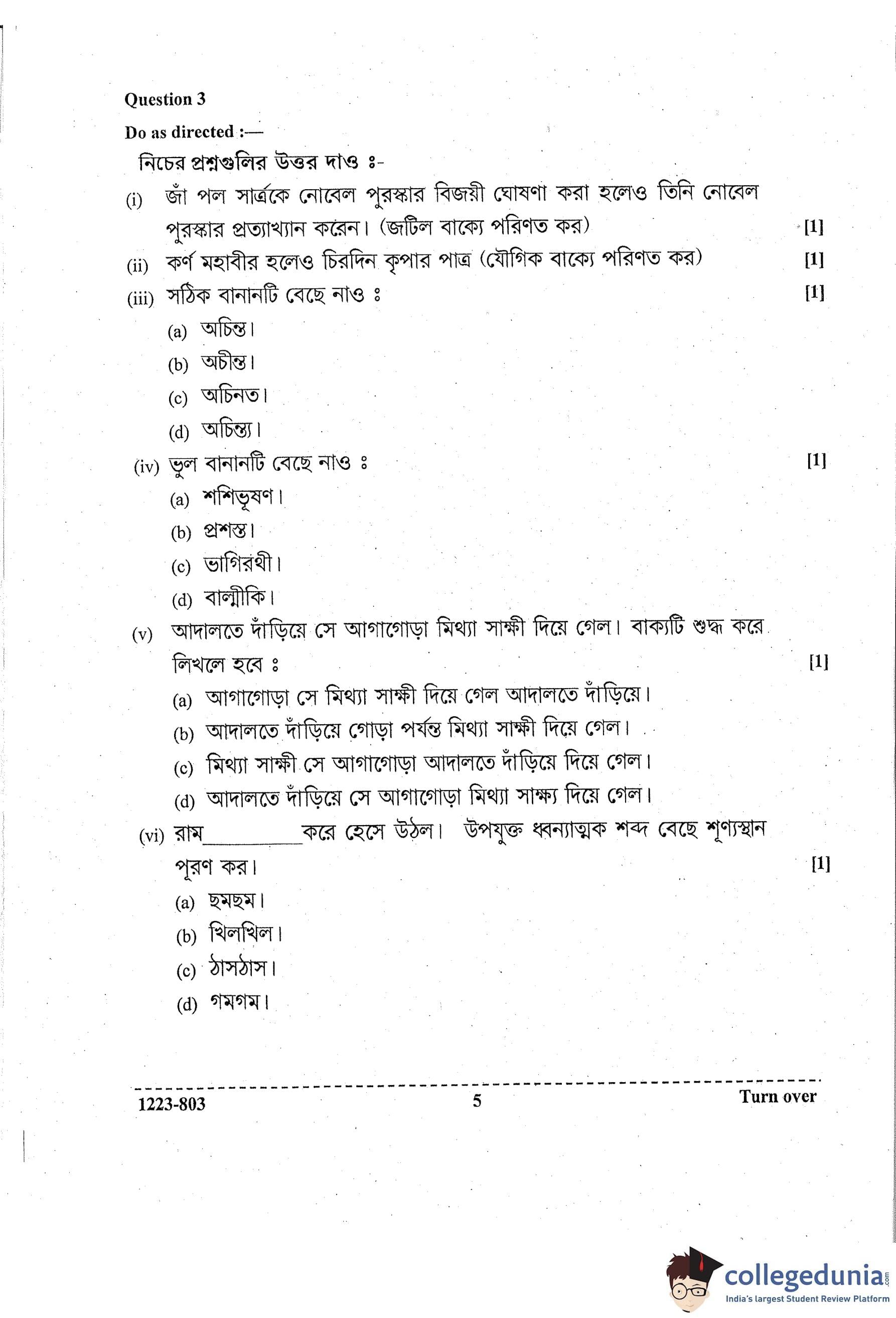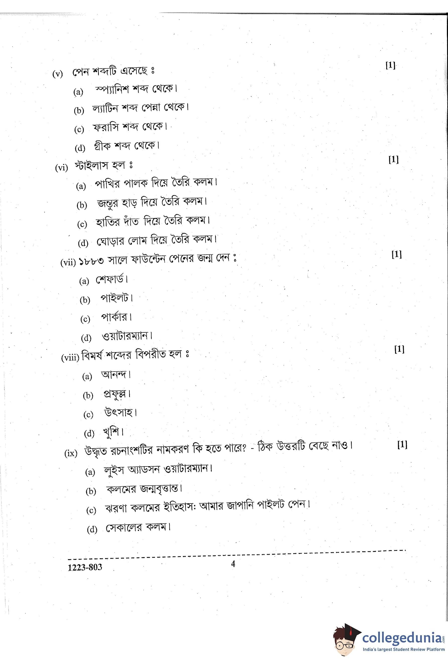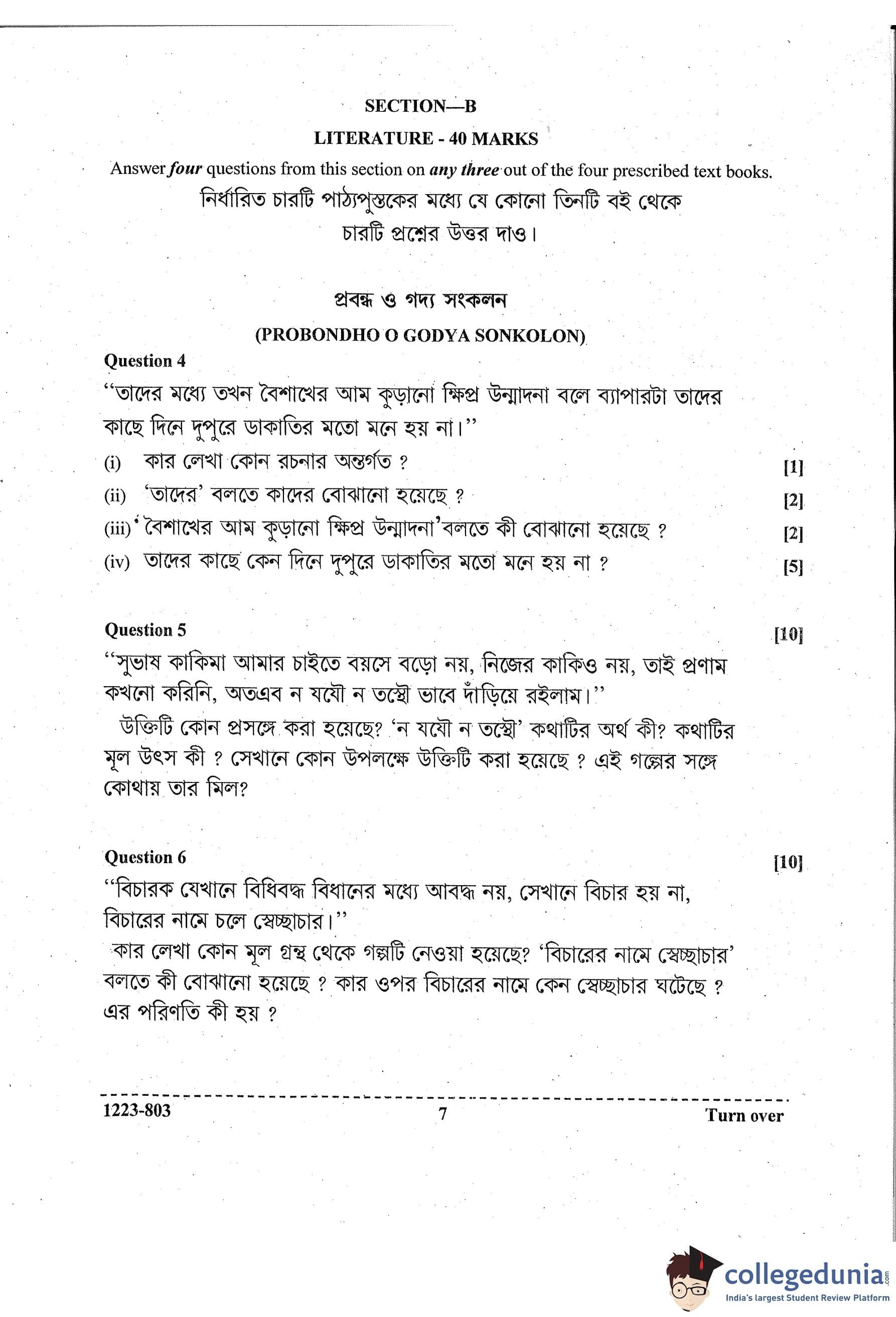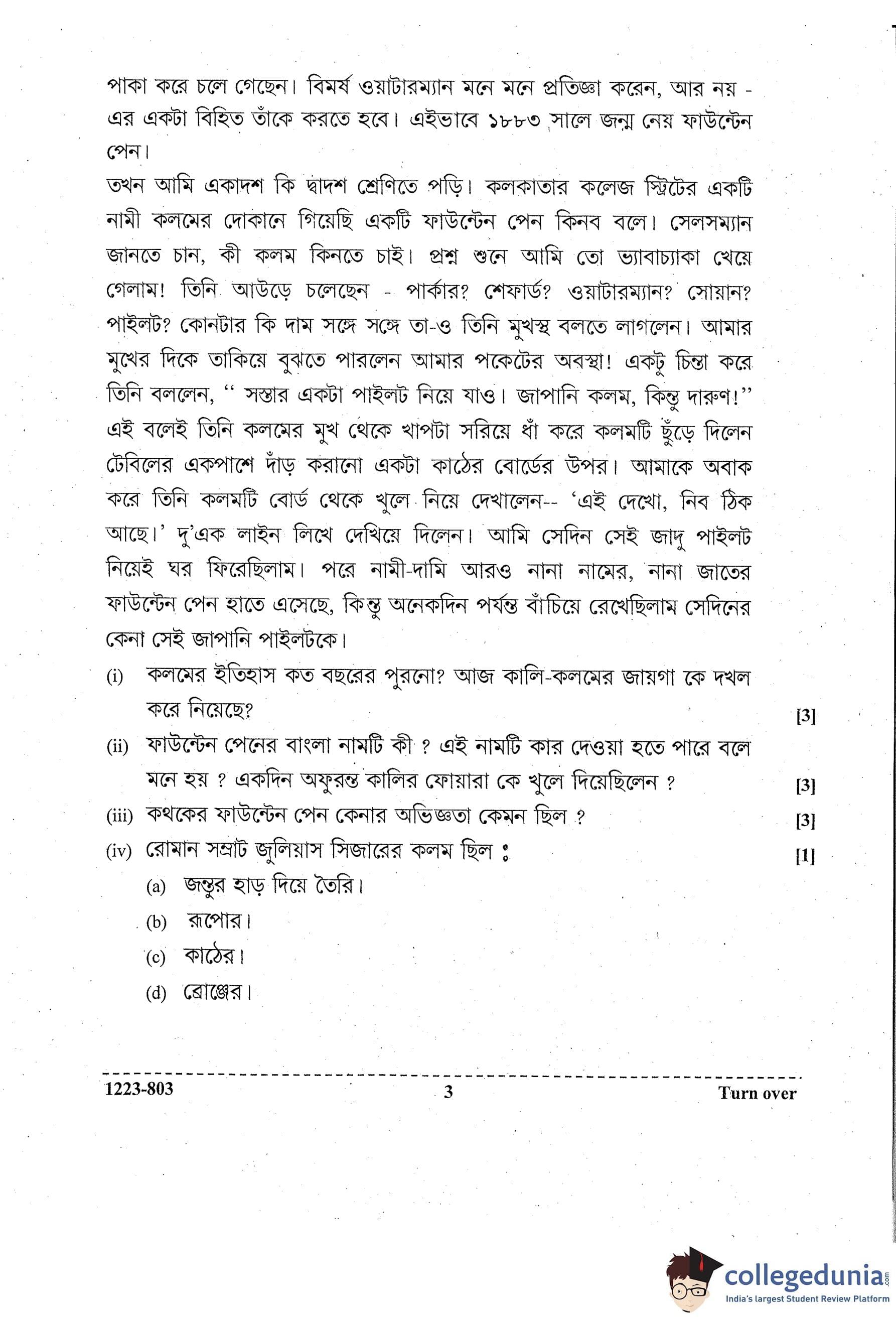 ISC Class 12 Bengali Question Paper 2023 with Answer Key