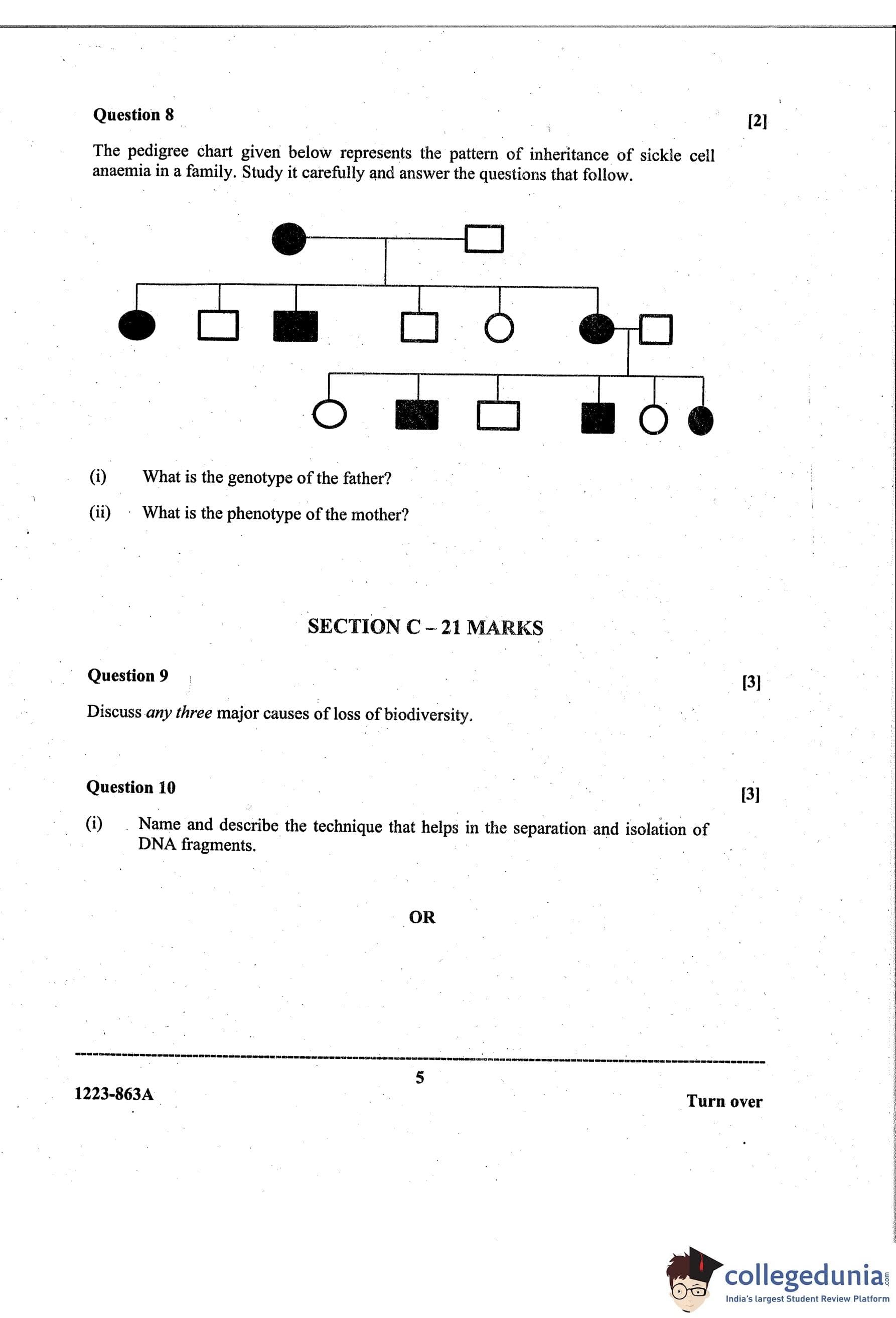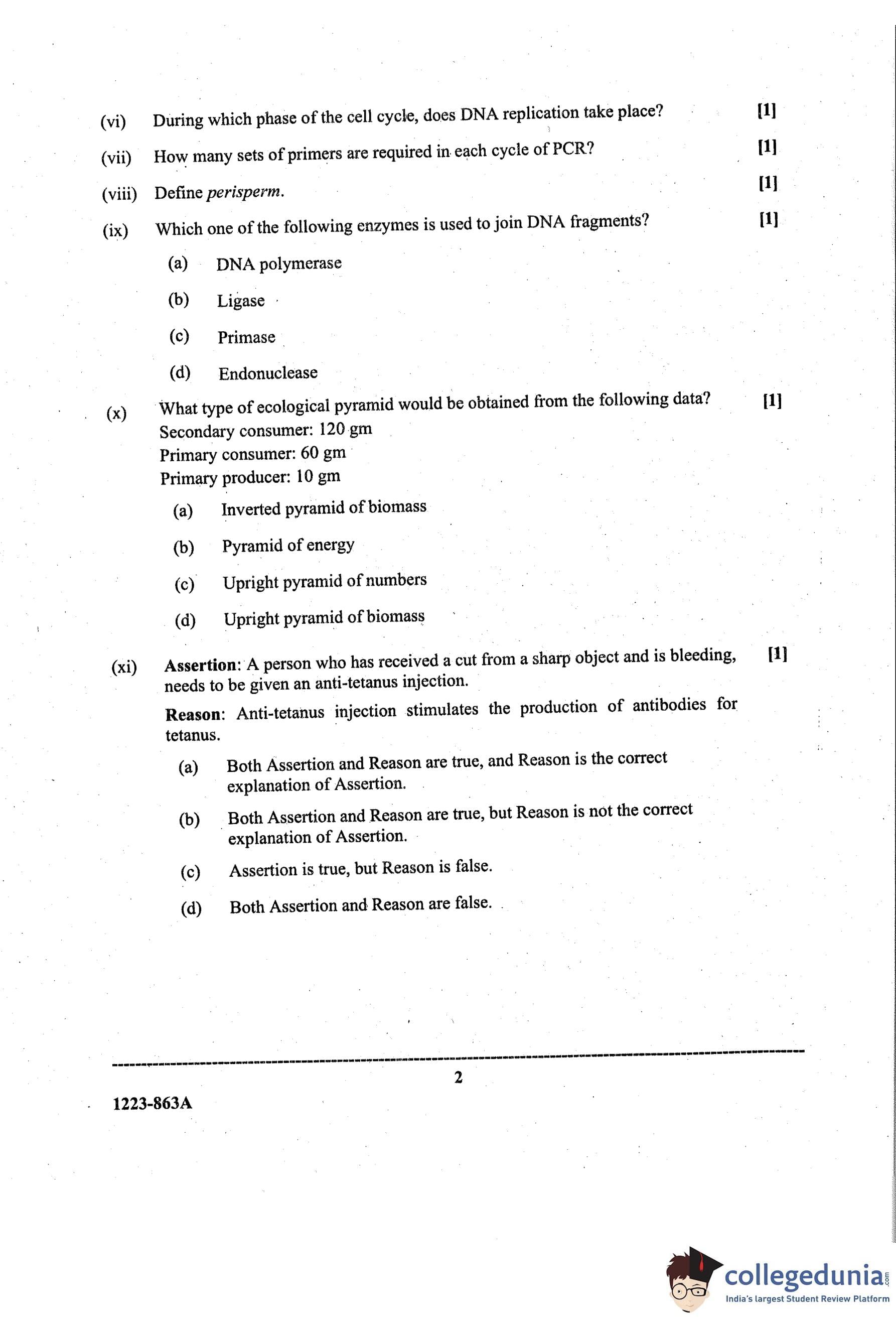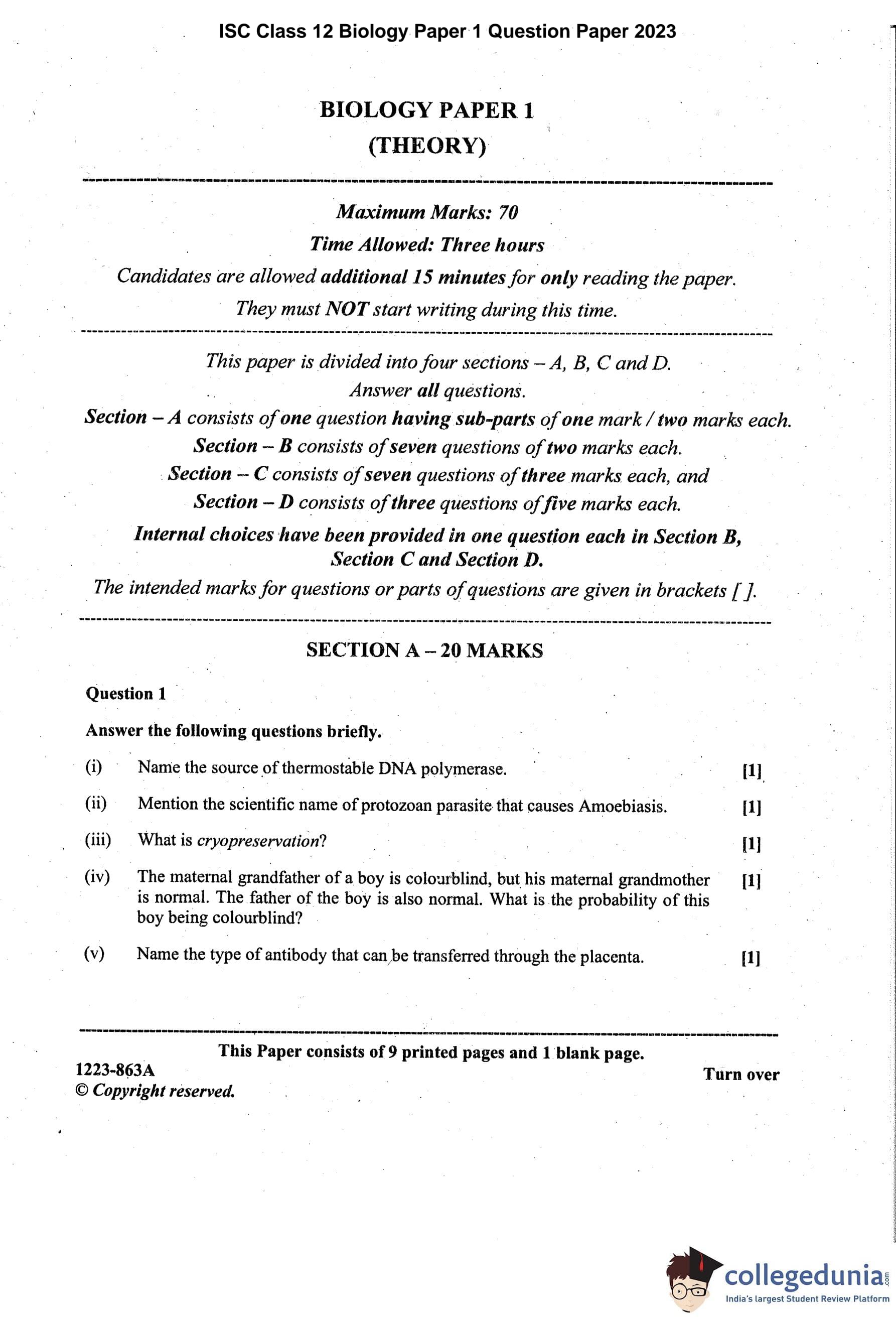 ISC Class 12 Biology Paper 1 Question Paper 2023 with Answer Key