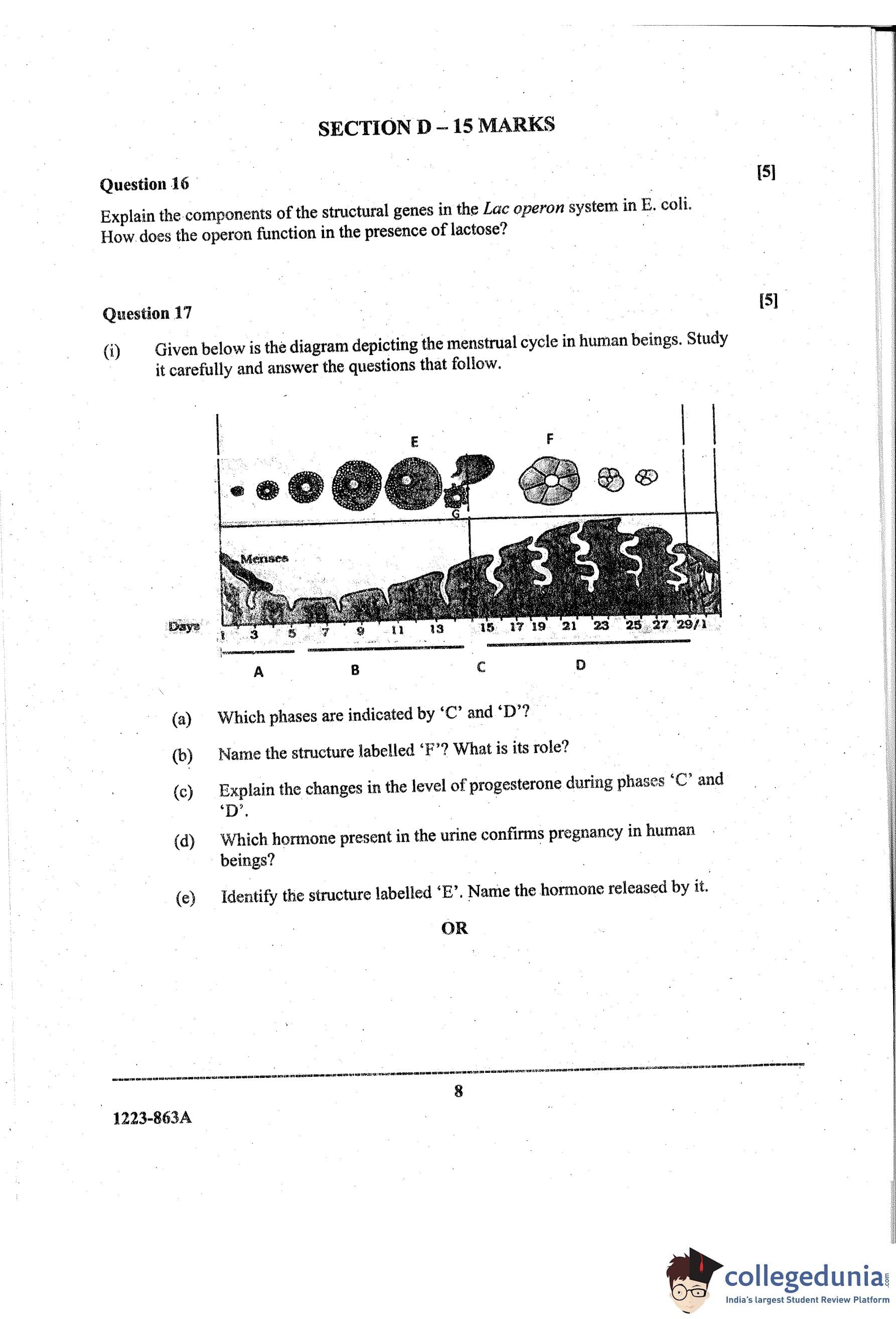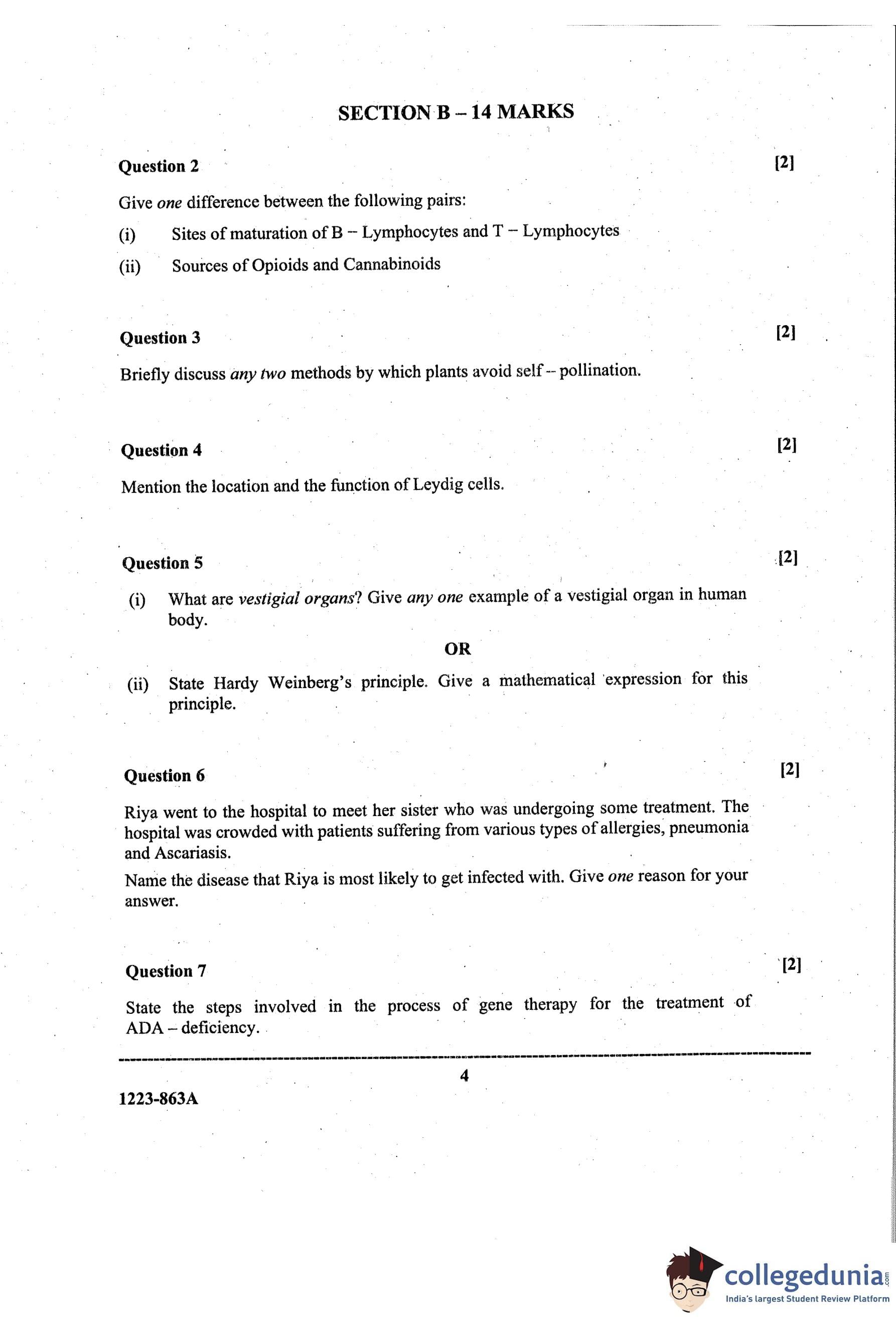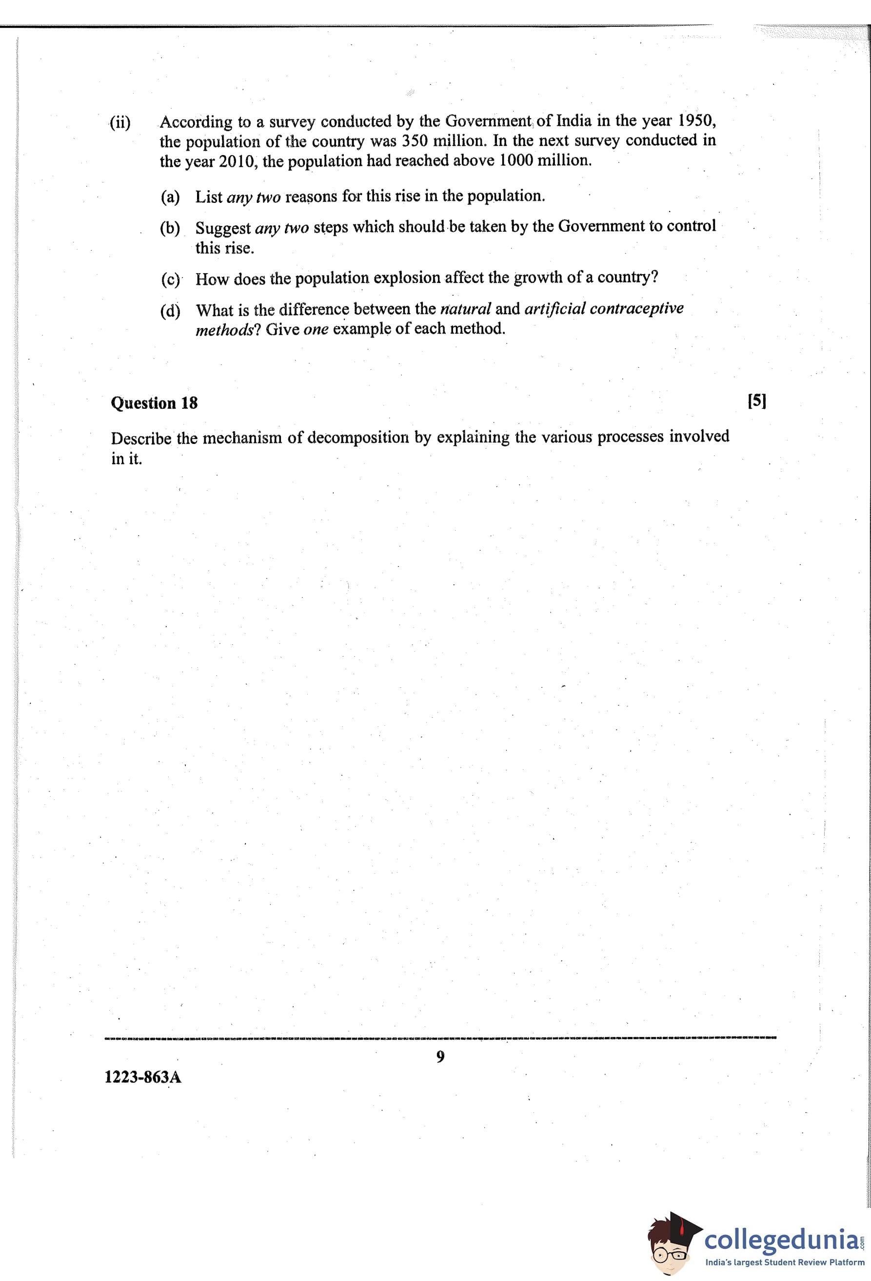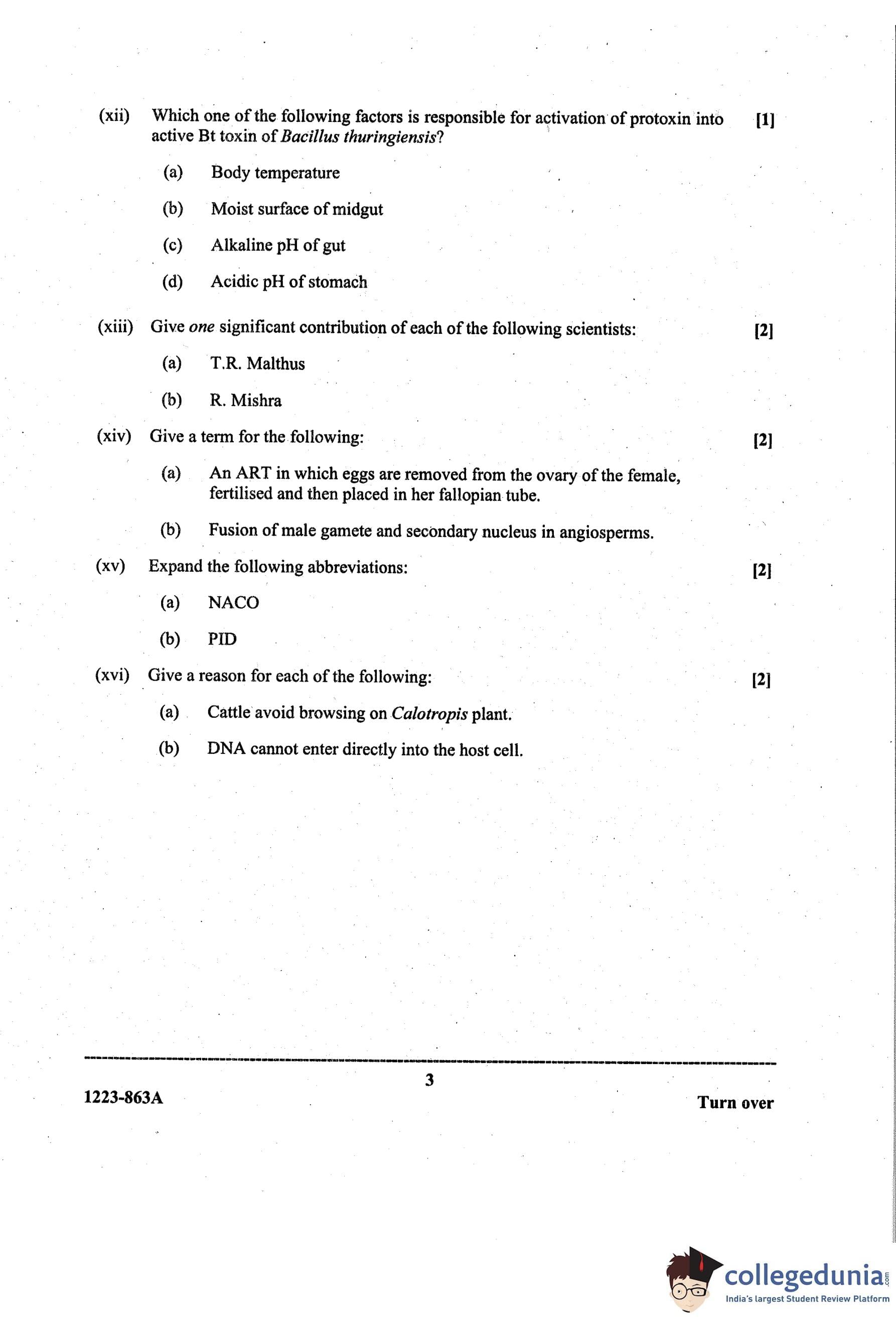 ISC Class 12 Biology Paper 1 Question Paper 2023 with Answer Key