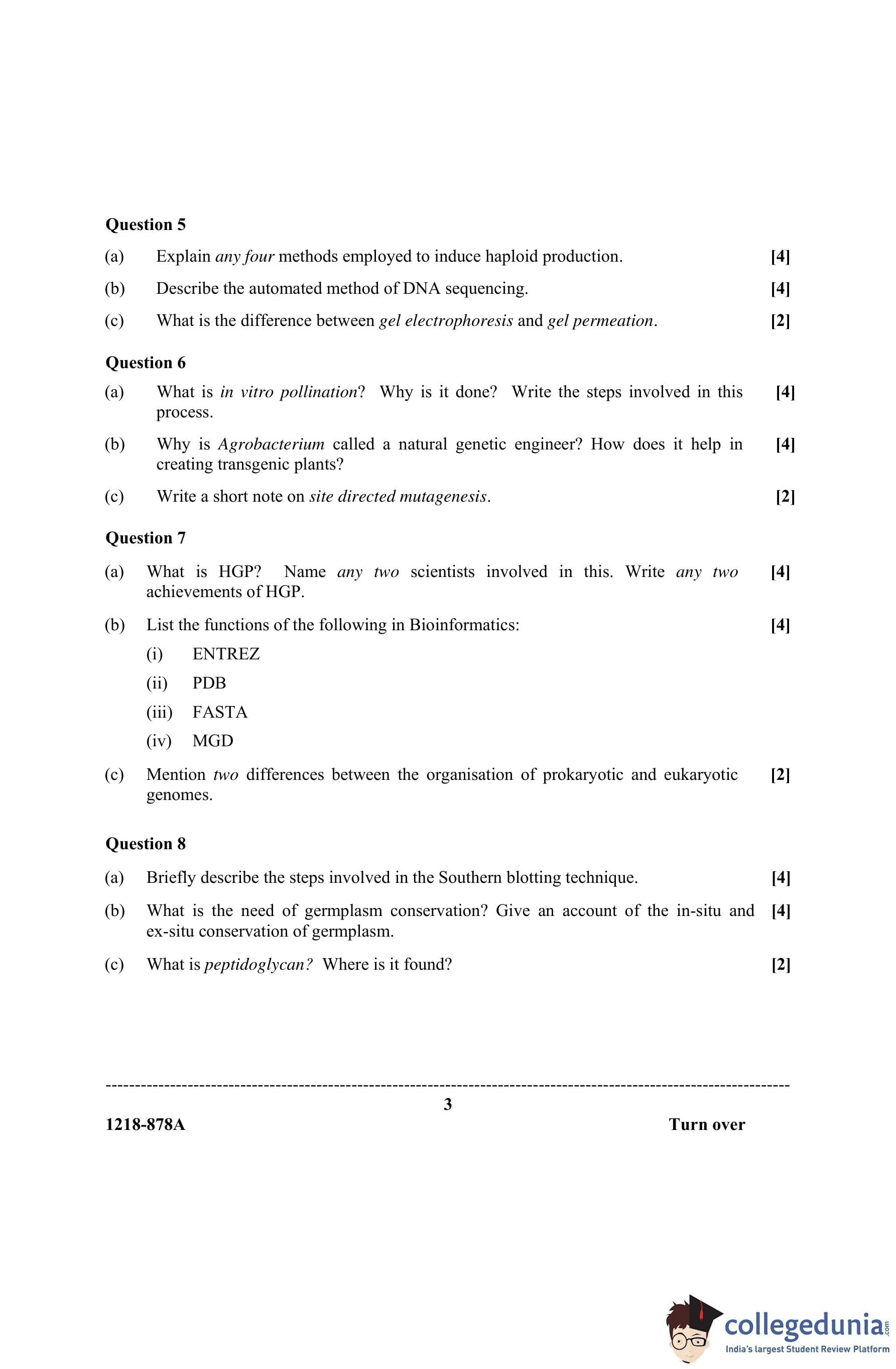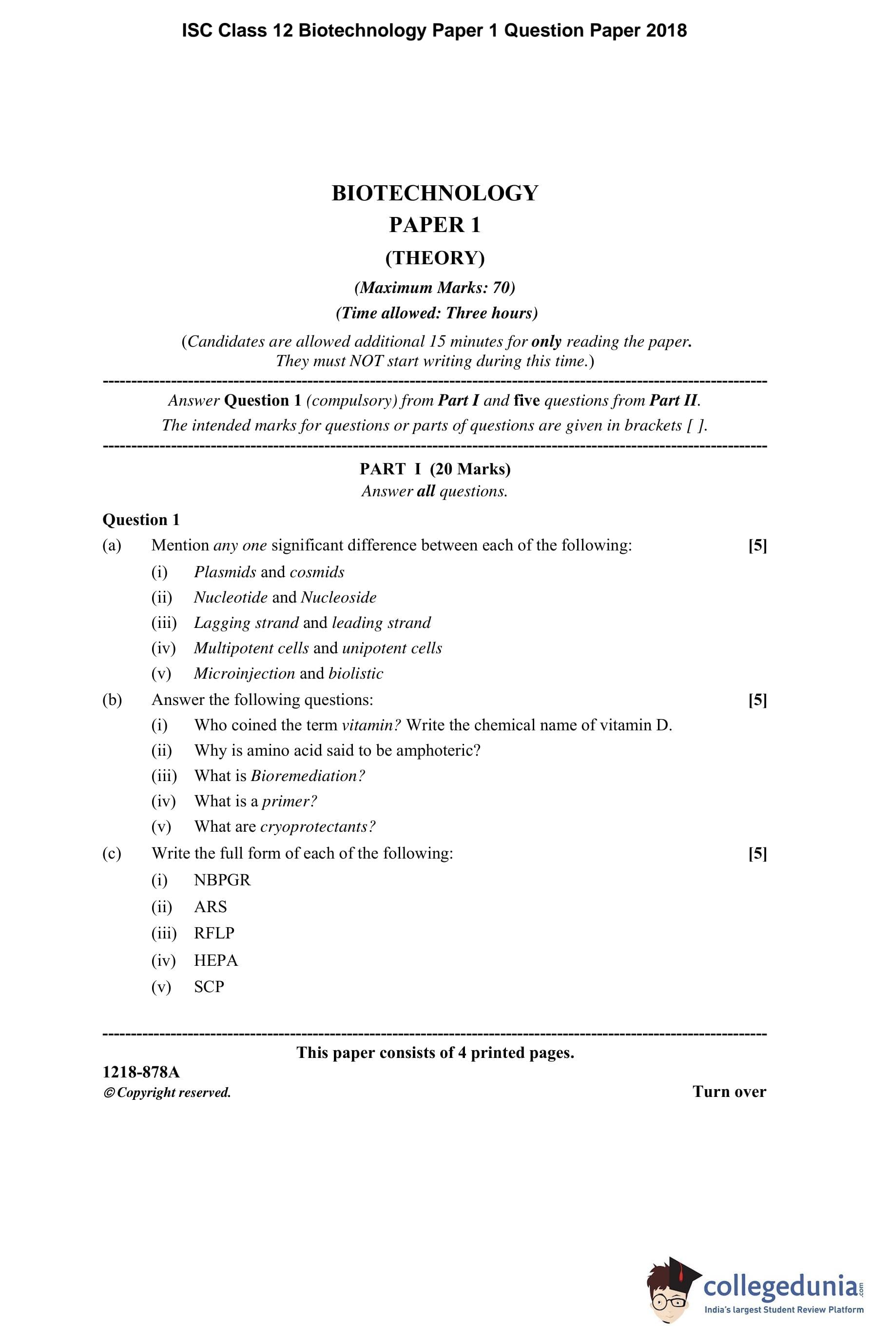 ISC Class 12 Biotechnology Paper 1 Question Paper 2018 with Answer Key