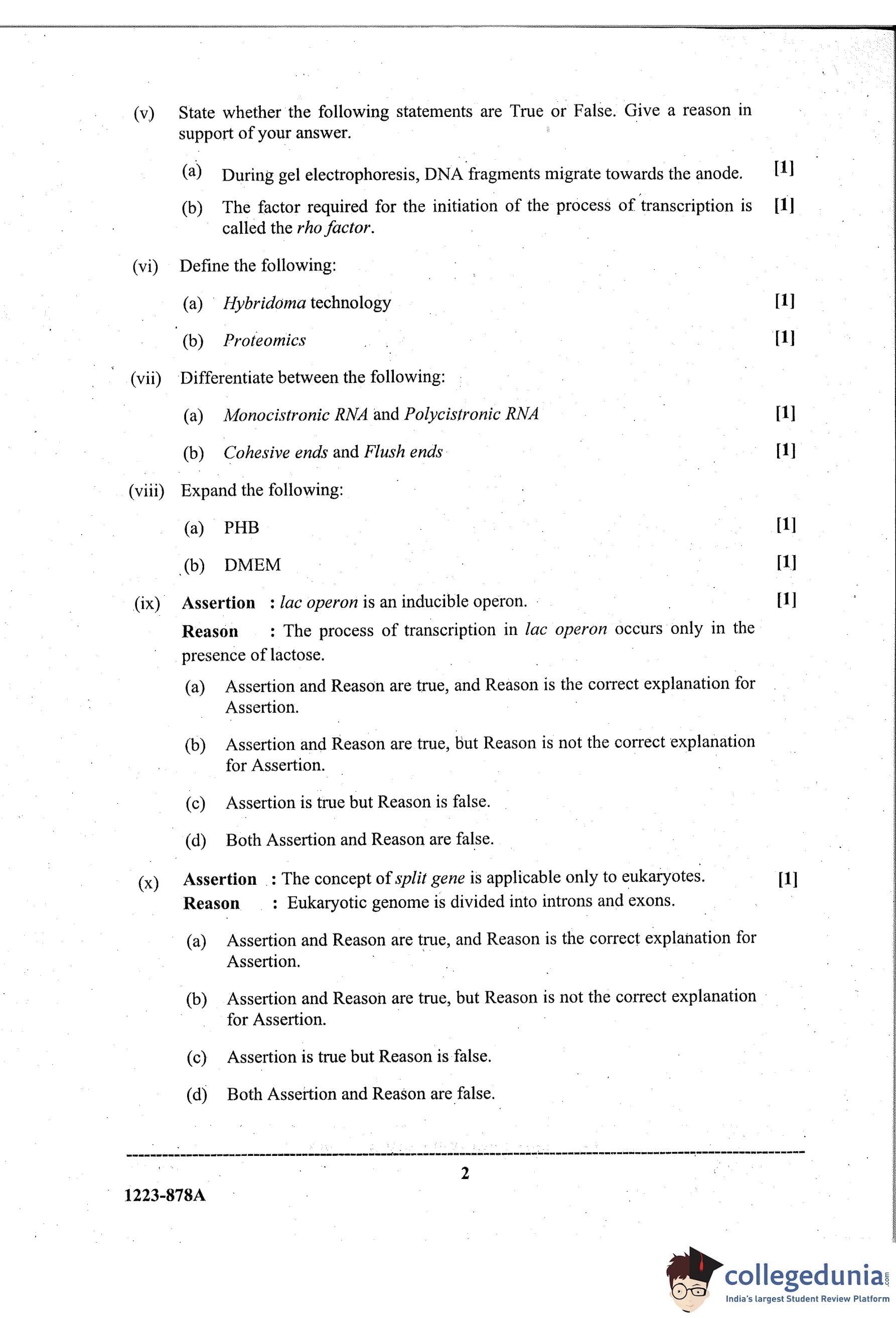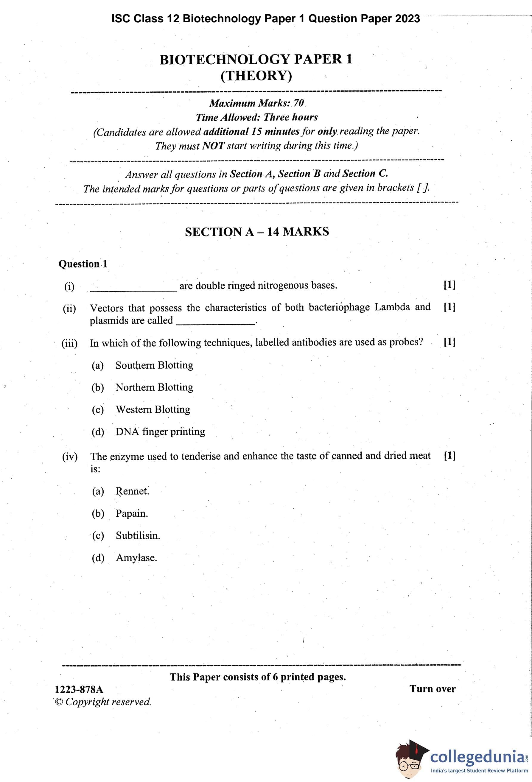 ISC Class 12 Biotechnology Paper 1 Question Paper 2023 with Answer Key