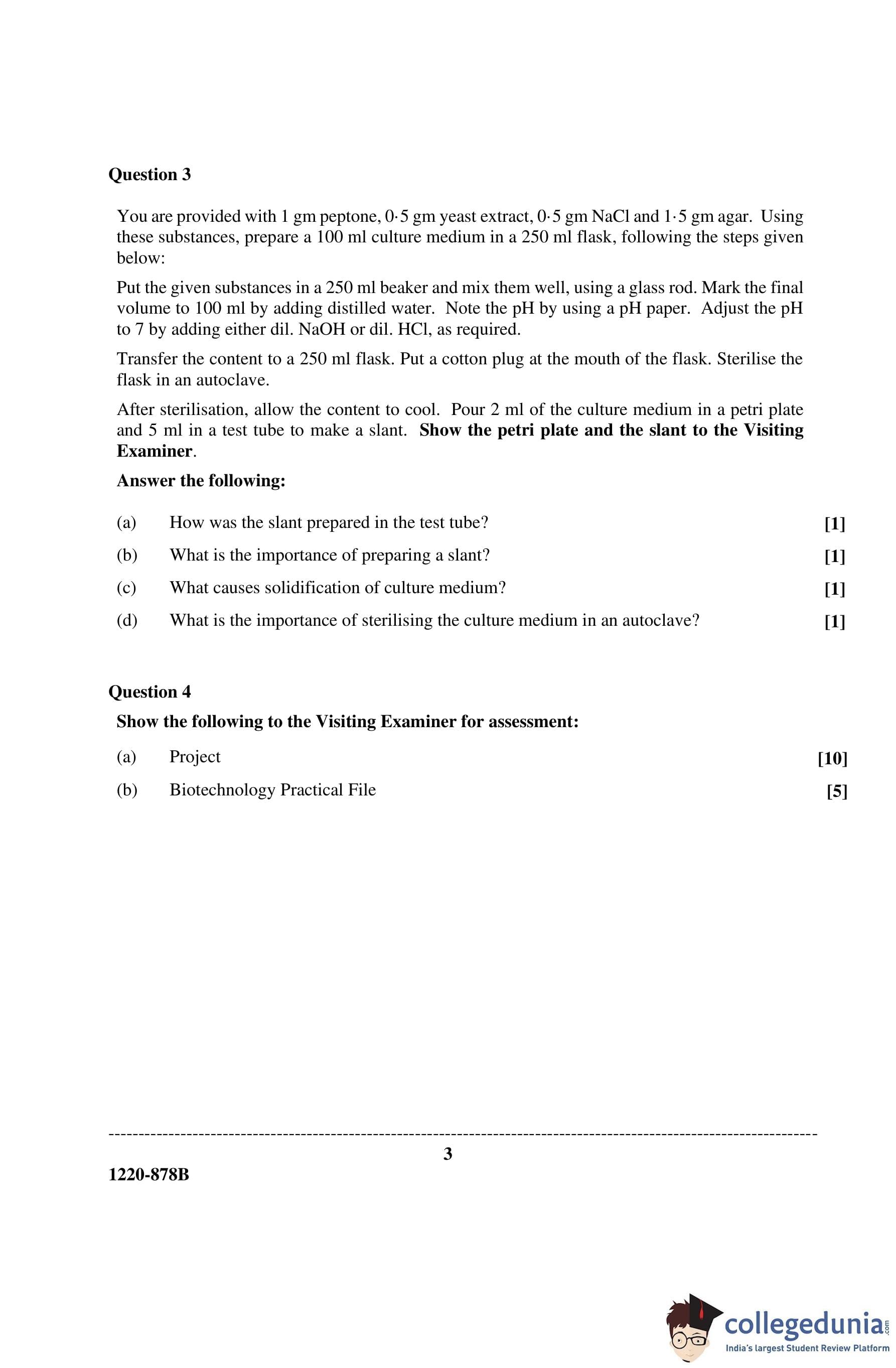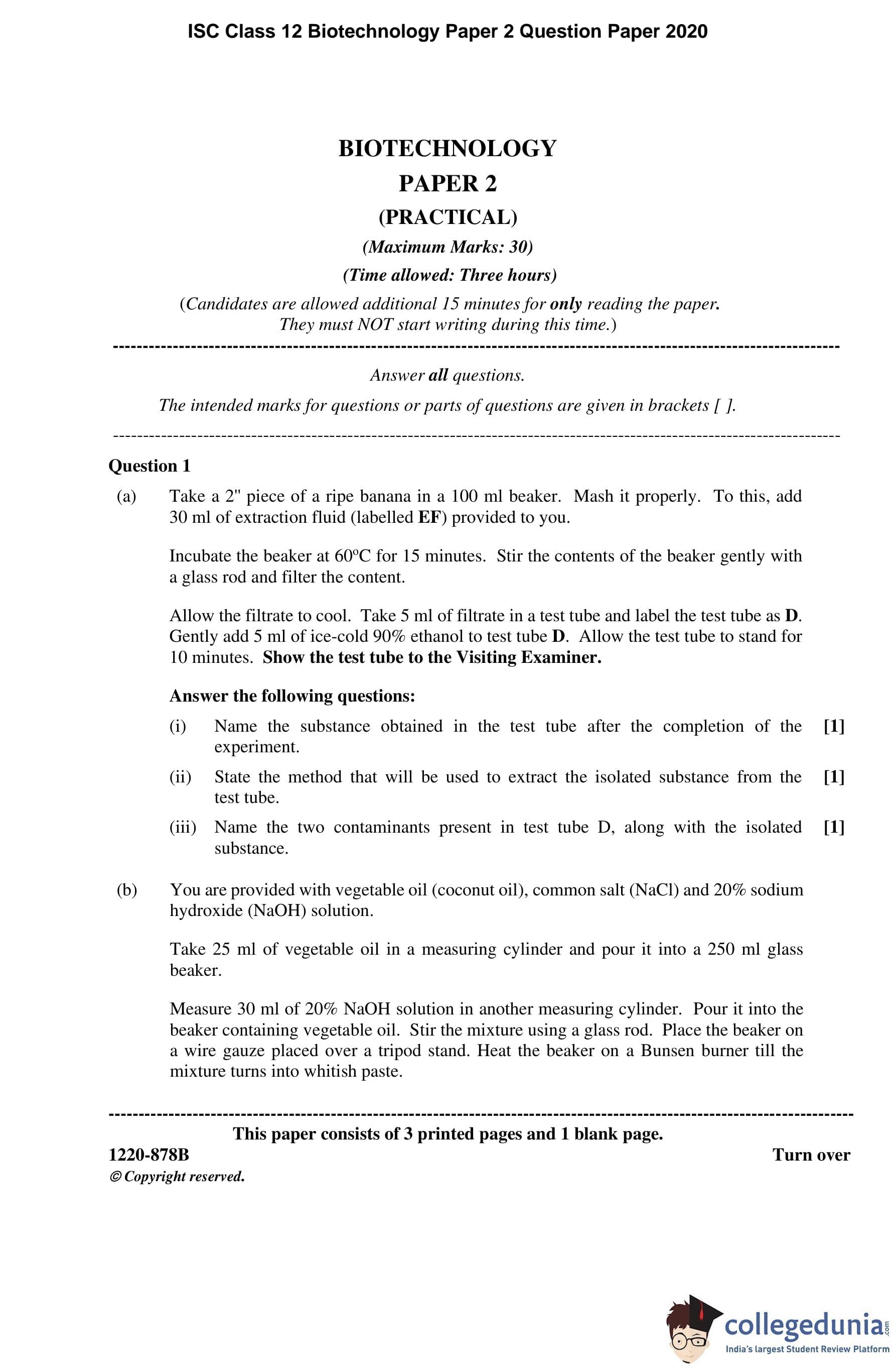 ISC Class 12 Biotechnology Paper 2 Question Paper 2020 with Answer Key