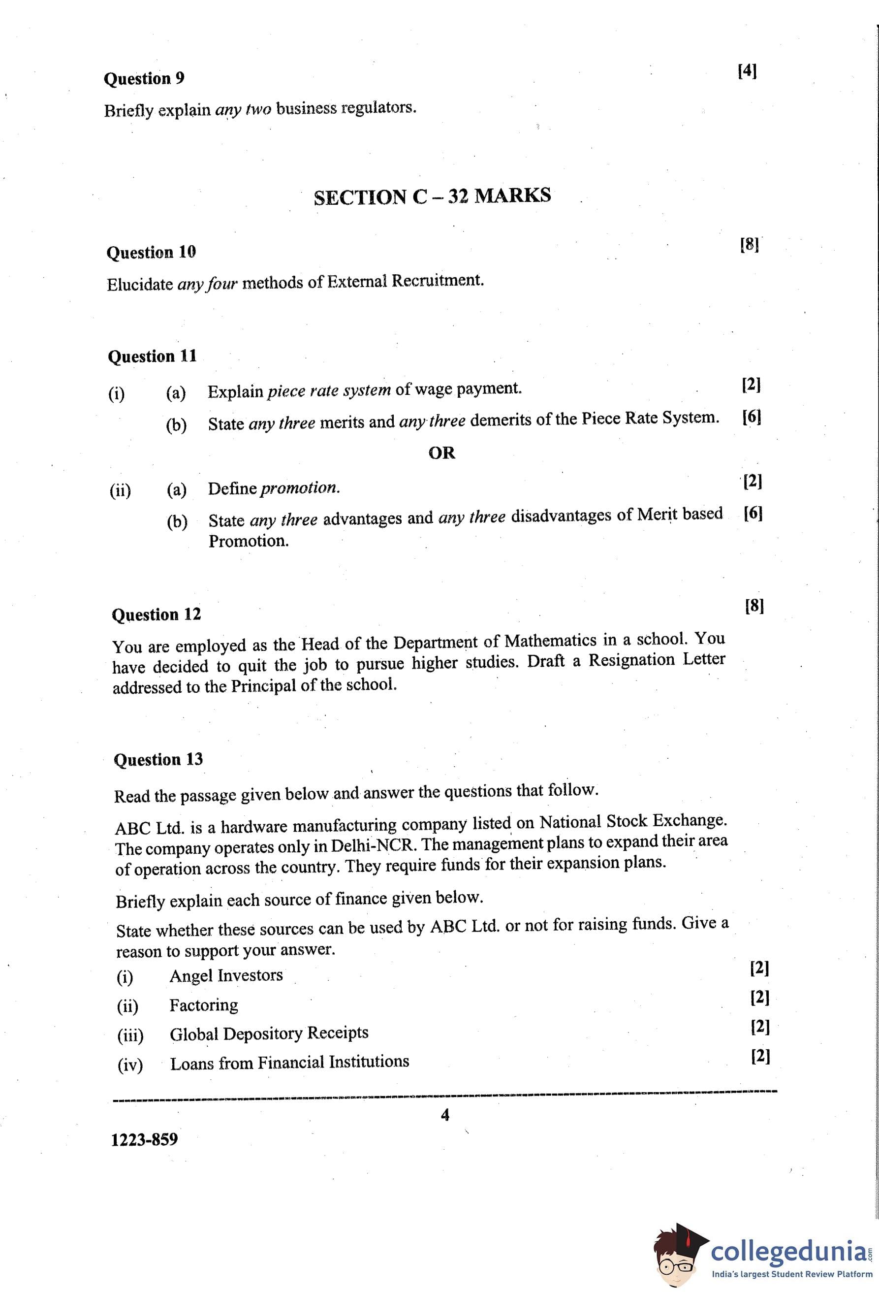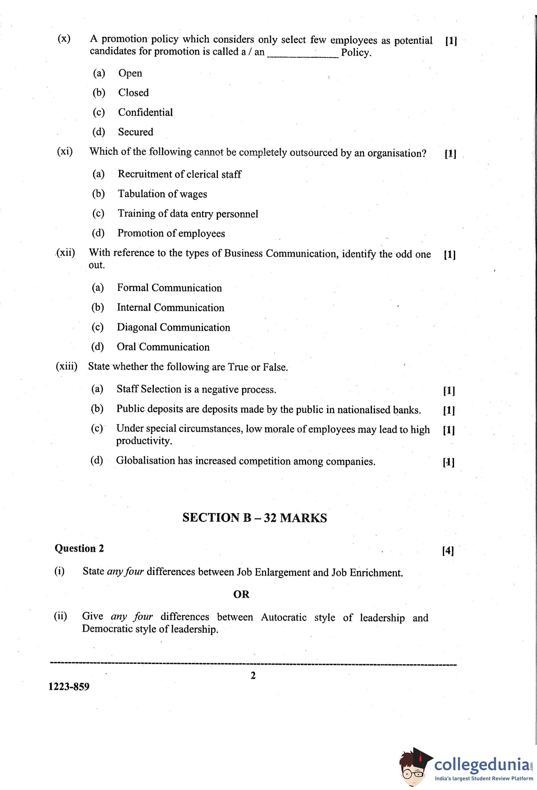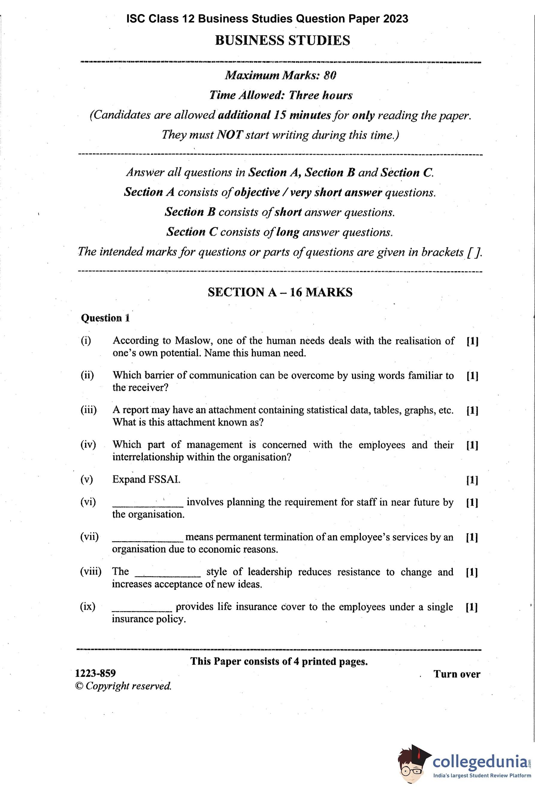ISC Class 12 Business Studies Question Paper 2023 with Answer Key