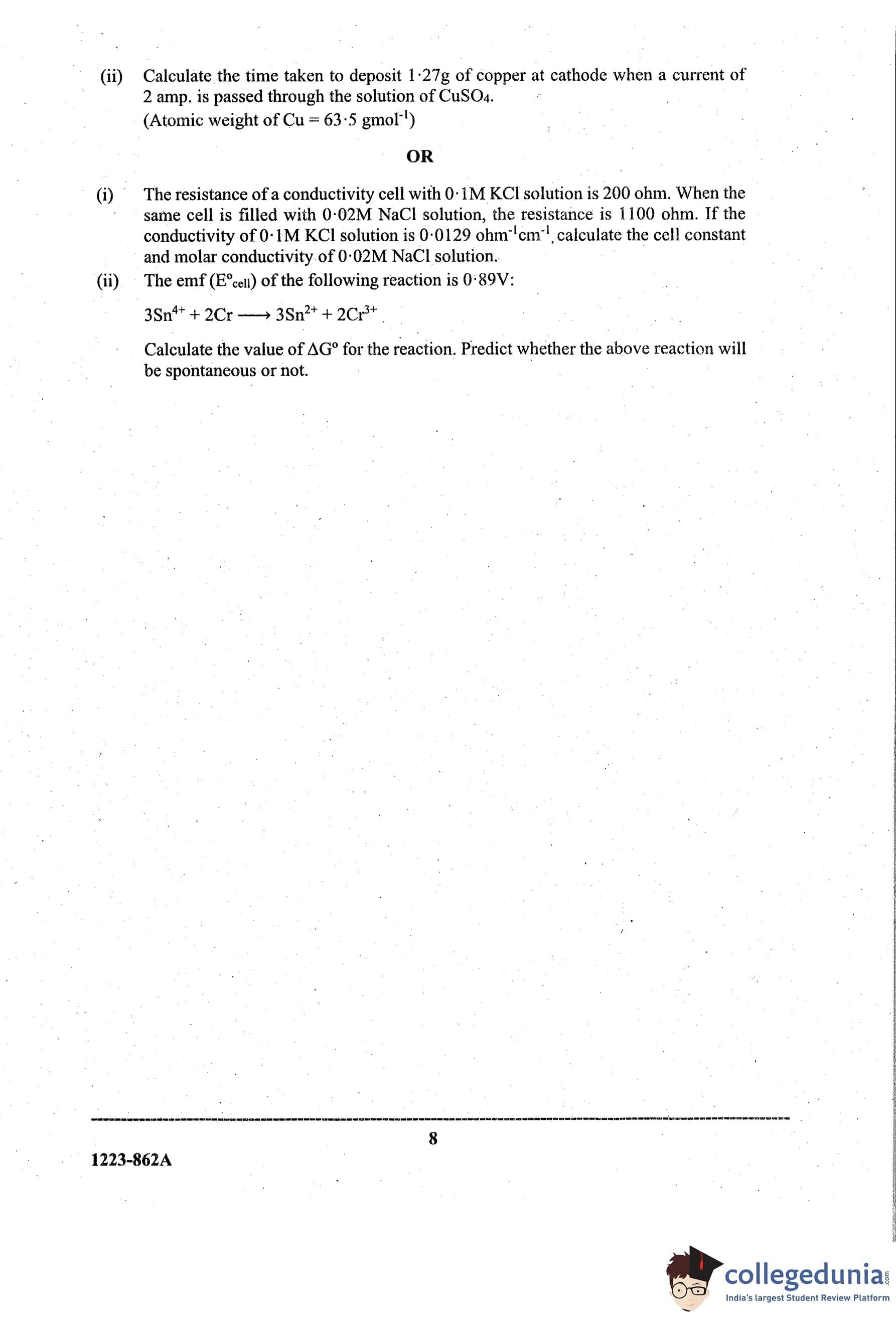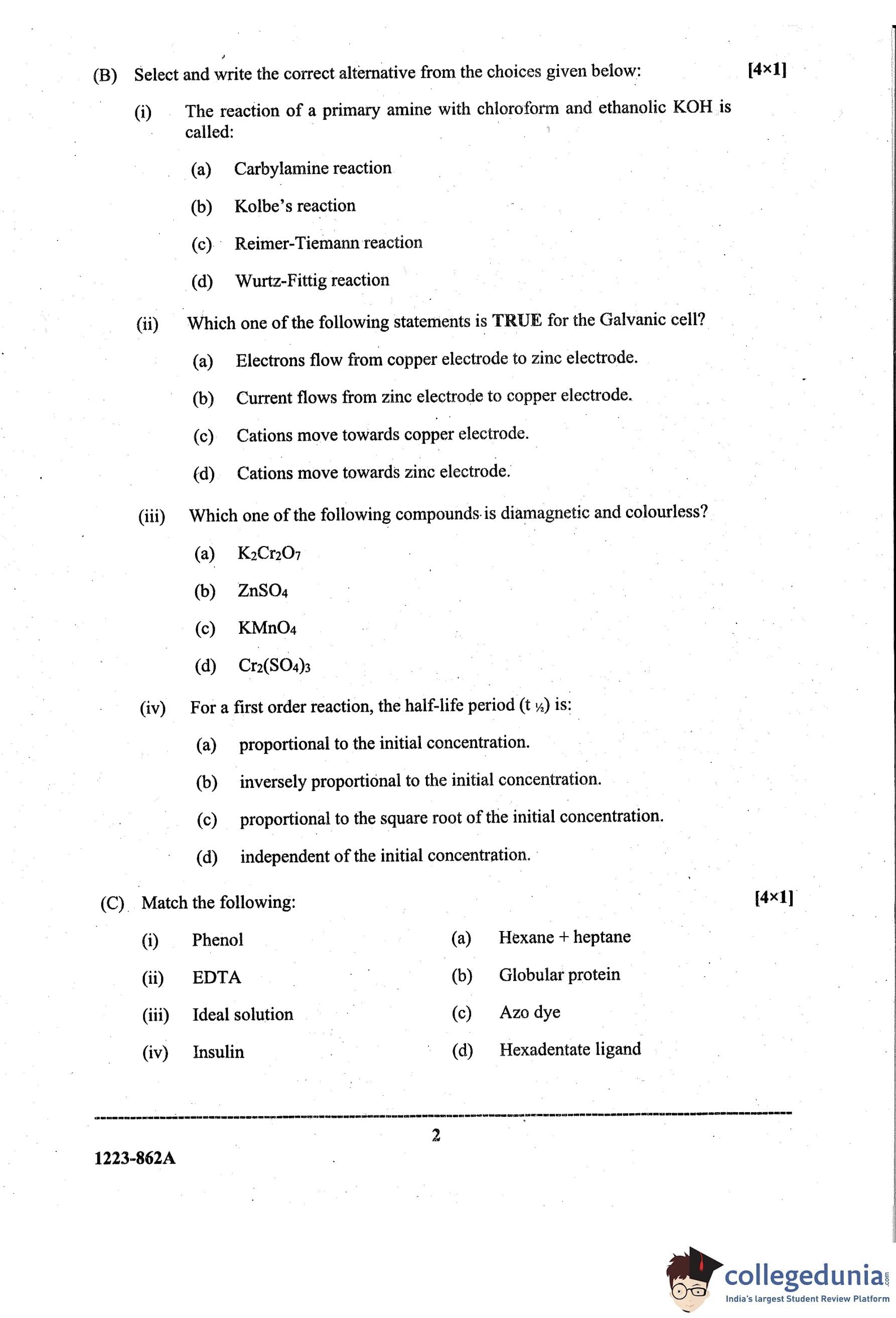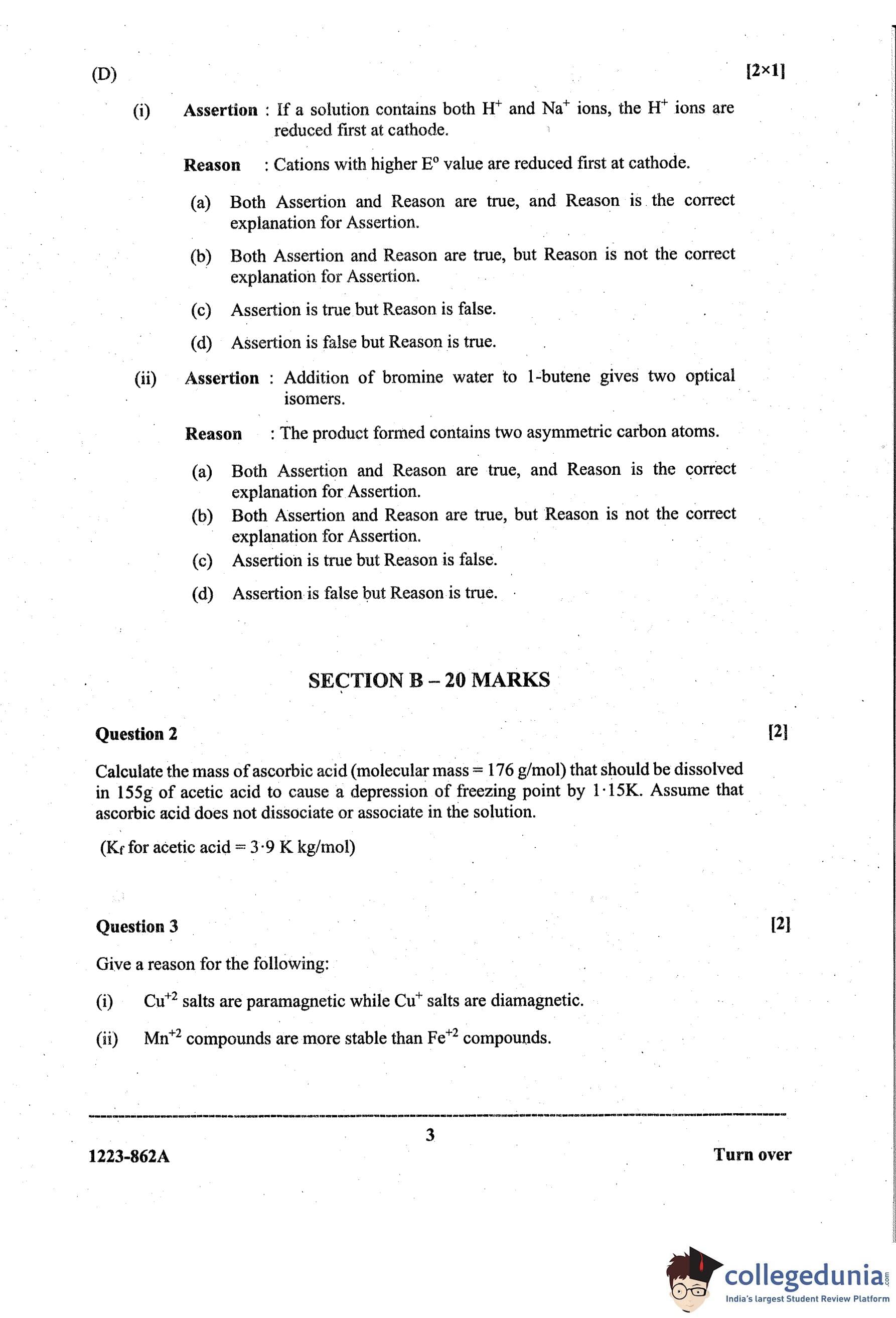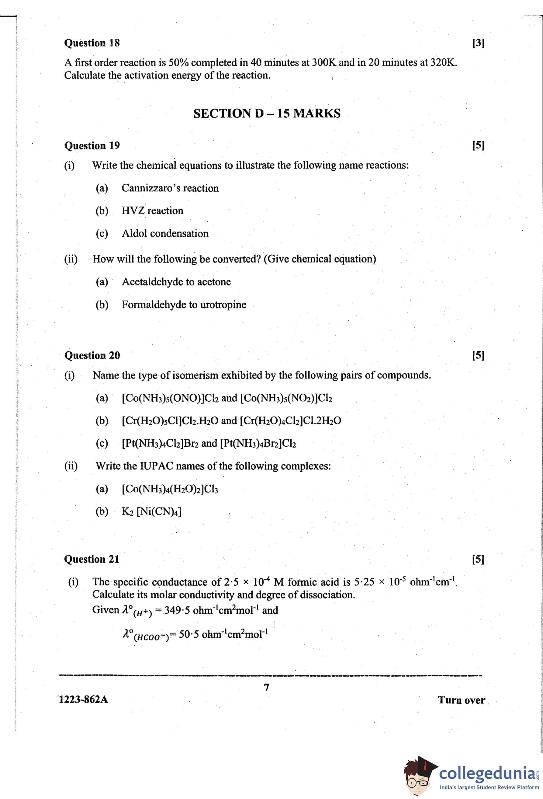 ISC Class 12 Chemistry Paper 1 Question Paper 2023 with Answer Key