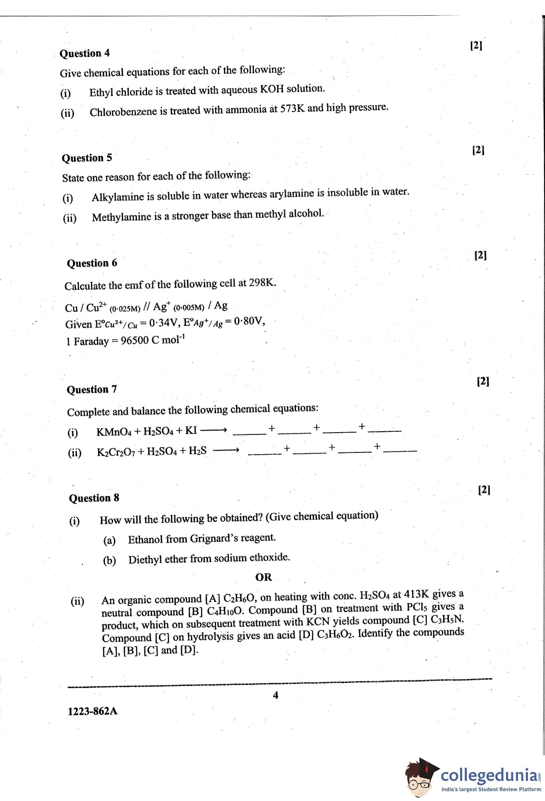 | ISC Class 12 Chemistry Question Paper 2023 PDF | ISC Class 12 Chemistry Answer Key 2023 PDF |