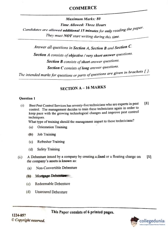 | ISC Class 12 Commerce Question Paper 2024 with Answer Key | Check Solutions |