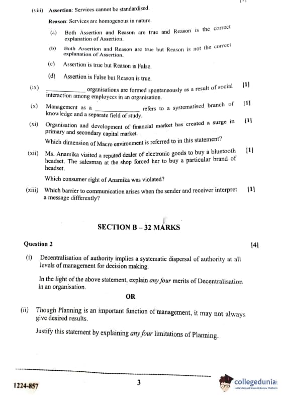 (viii) Assertion: Services cannot be standardised. Reason: Services are homogenous in nature.