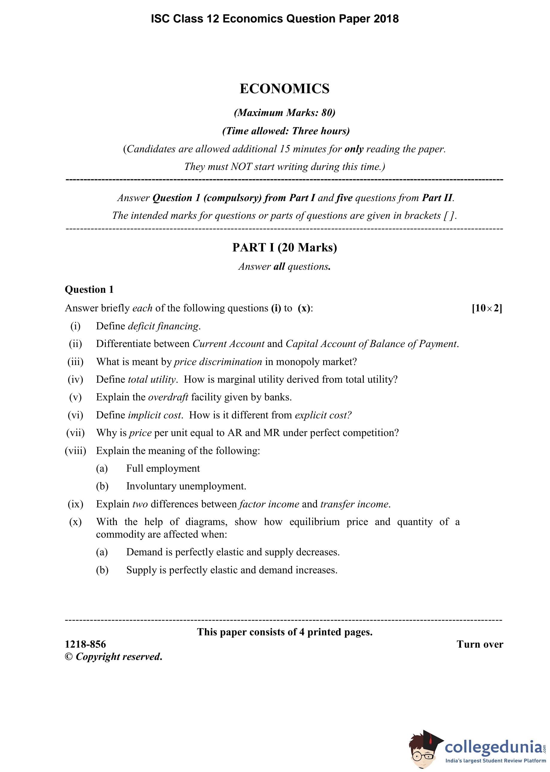 | ISC Class 12 Economics Question Paper 2018 PDF | ISC Class 12 Economics Answer Key 2018 PDF |
