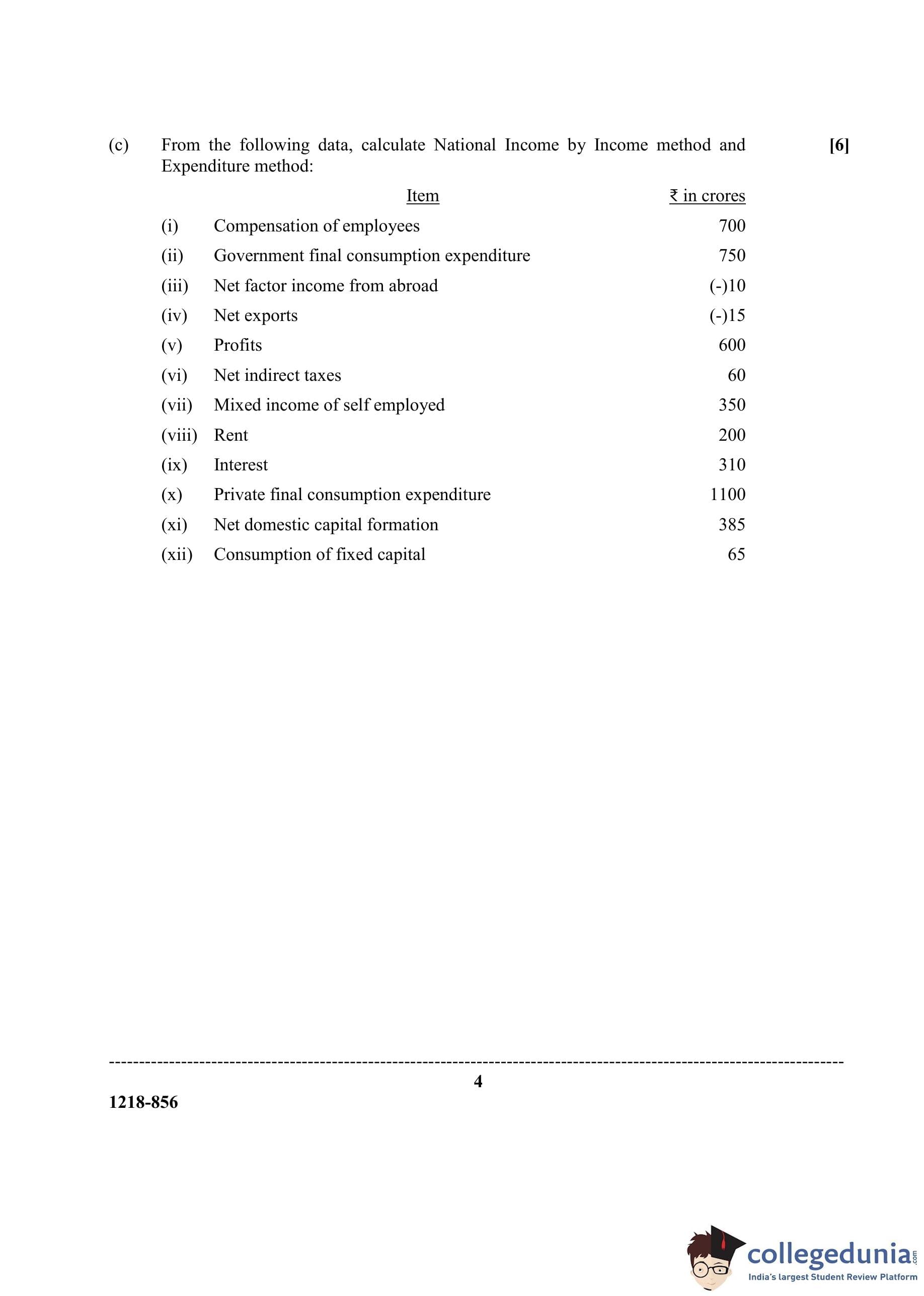 ISC Class 12 Economics Question Paper 2018 with Answer Key