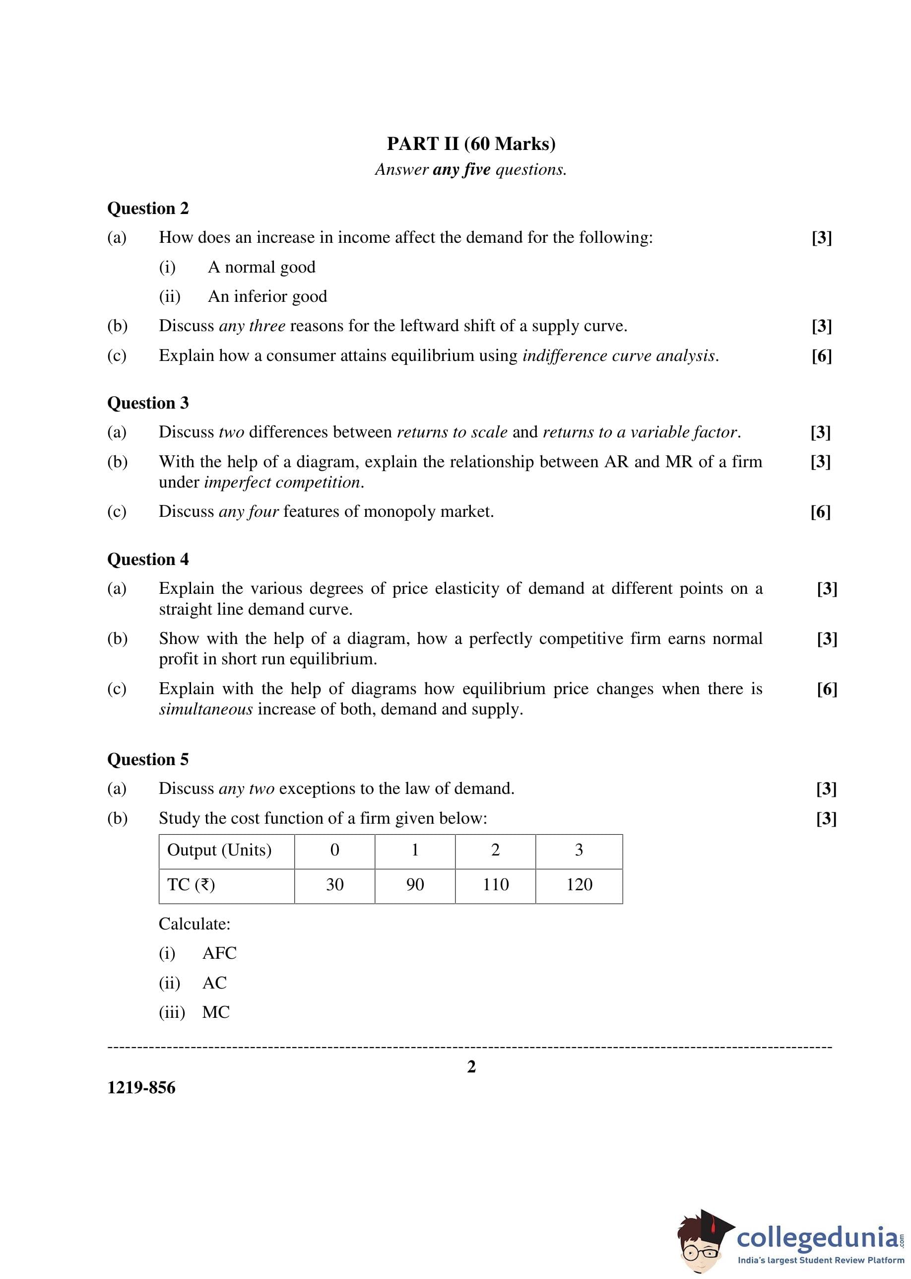 ISC Class 12 Economics Question Paper 2019 with Answer Key pdf is available for download here. The exam was conducted by Council for the Indian School Certificate Examinations on February 15, 2019 in the Afternoon Session 2 PM to 5 PM. The question paper comprised a total of 9 questions divided among 2 sections.
