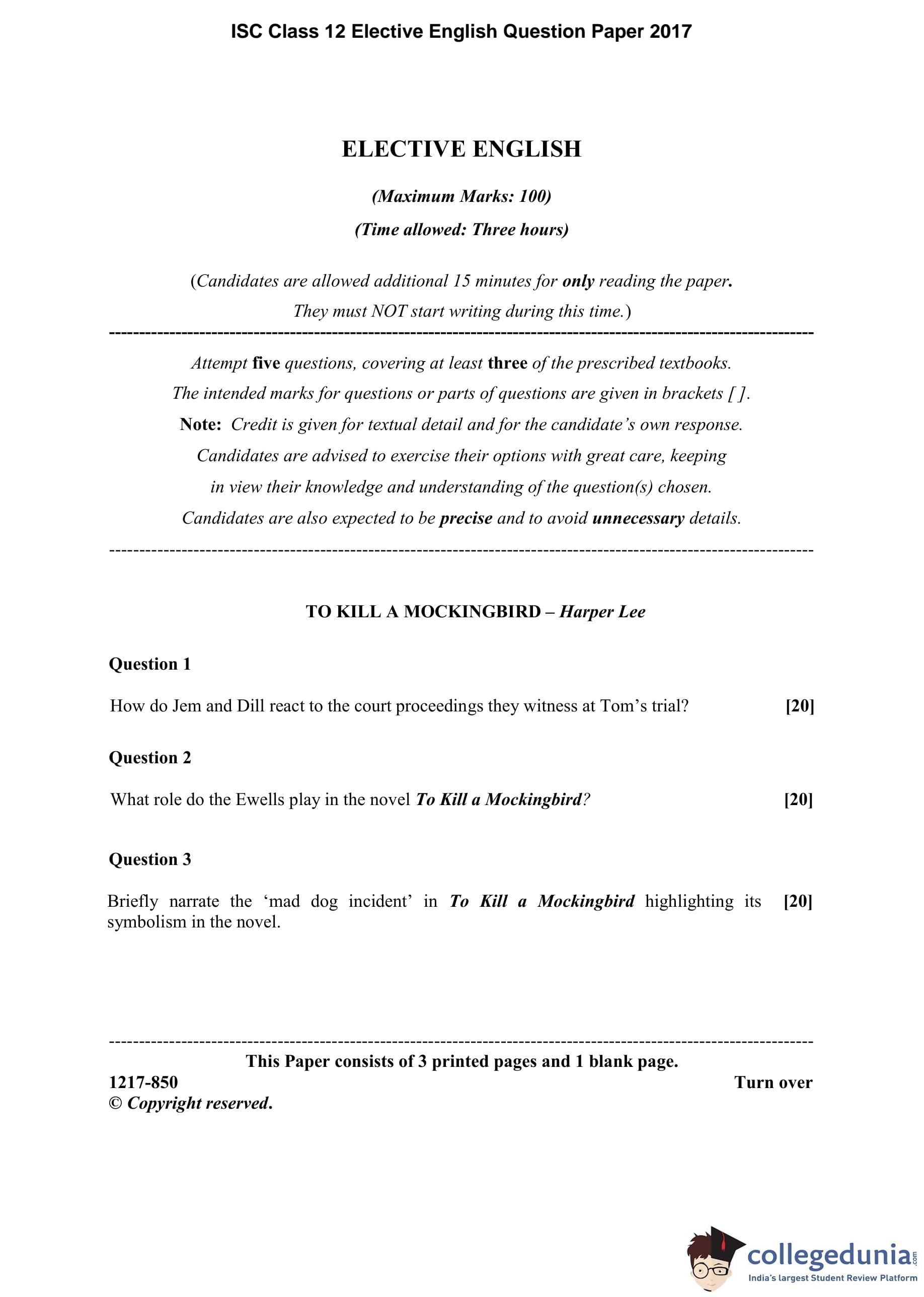 | ISC Class 12 Elective English Question Paper 2017 PDF | ISC Class 12 Elective English Answer Key 2017 PDF |