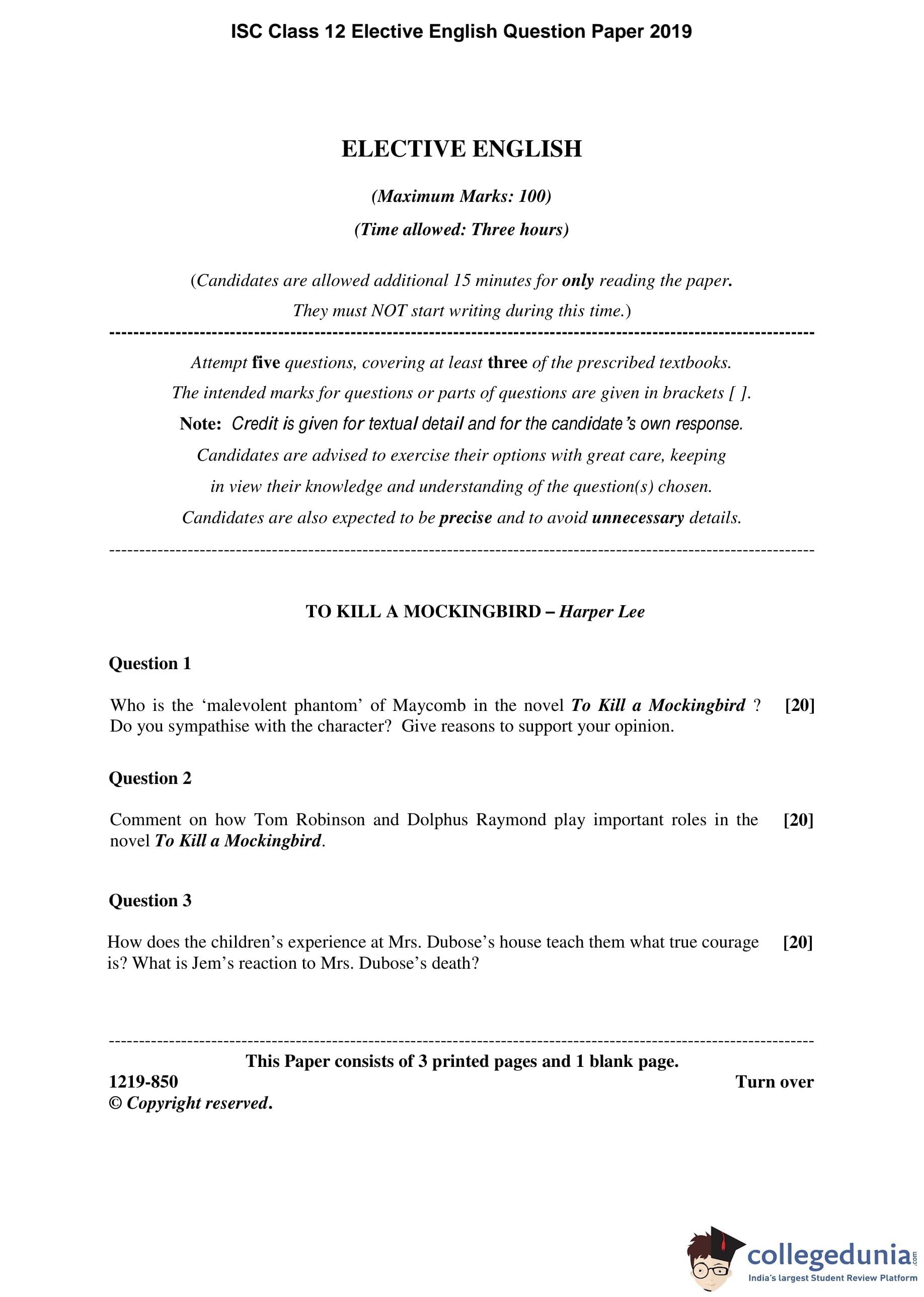 | ISC Class 12 Elective English Question Paper 2019 PDF | ISC Class 12 Elective English Answer Key 2019 PDF |
