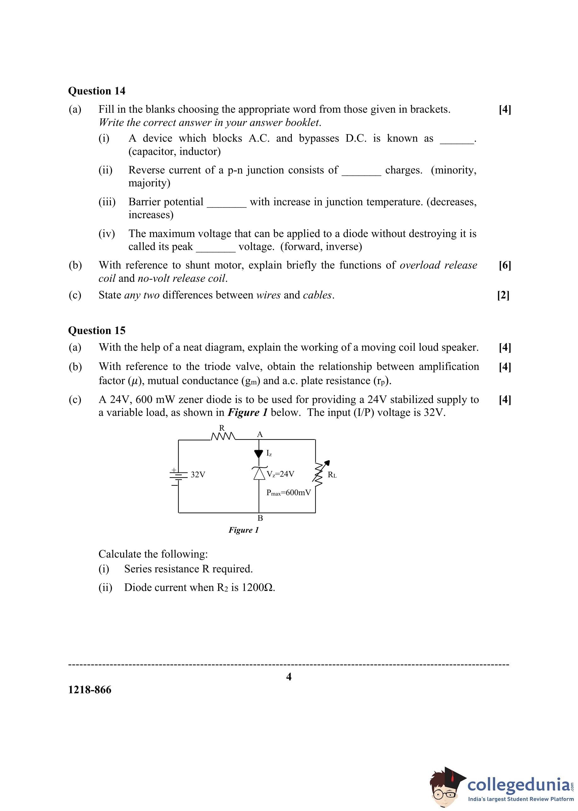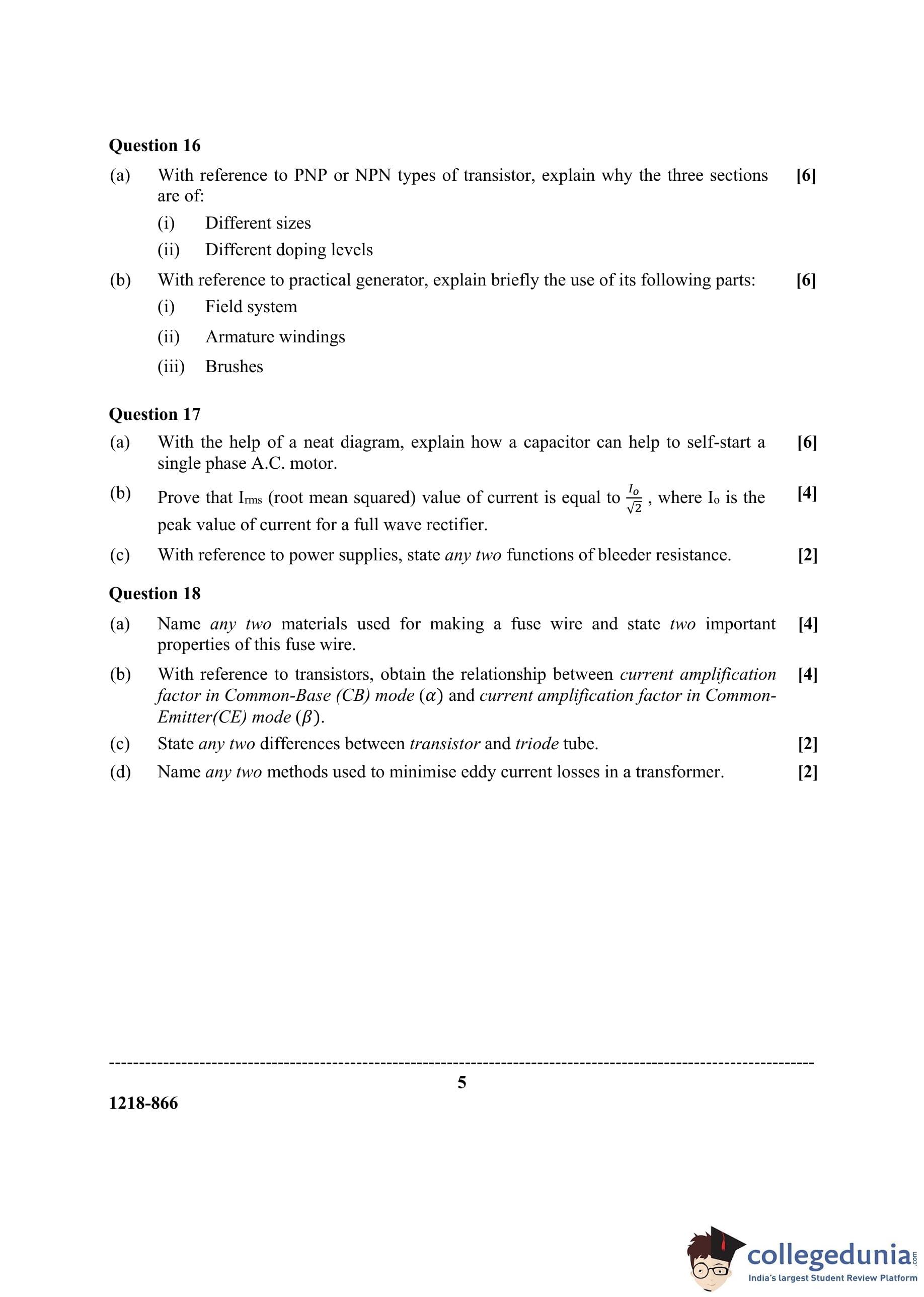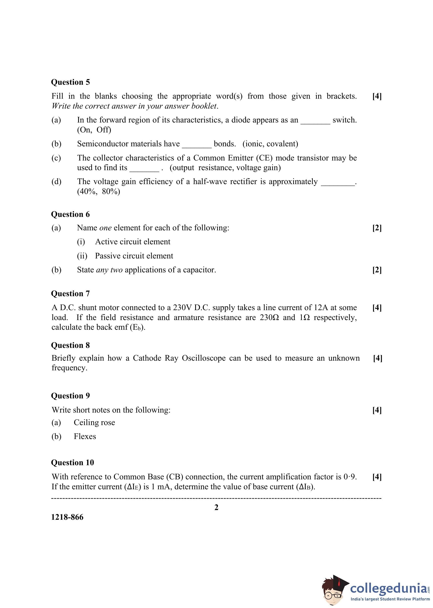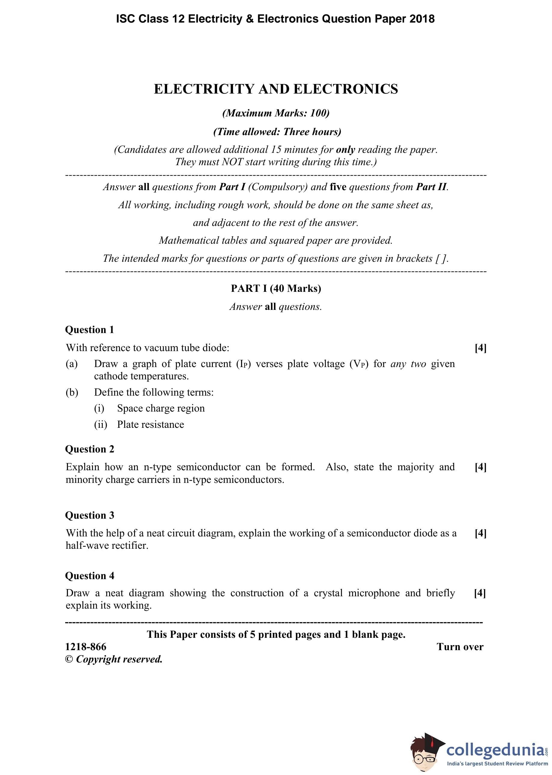 ISC Class 12 Electricity & Electronics Question Paper 2018 with Answer Key