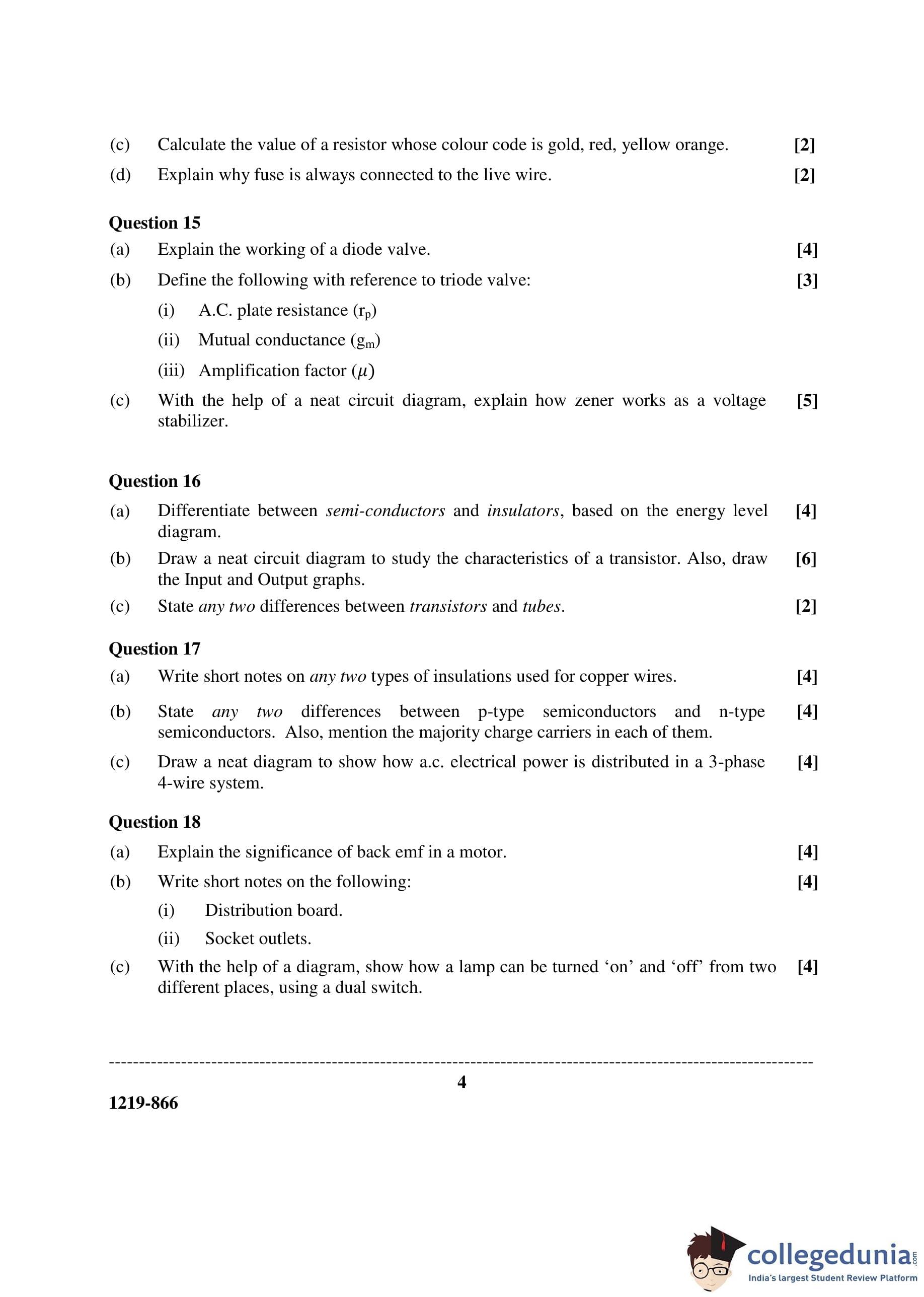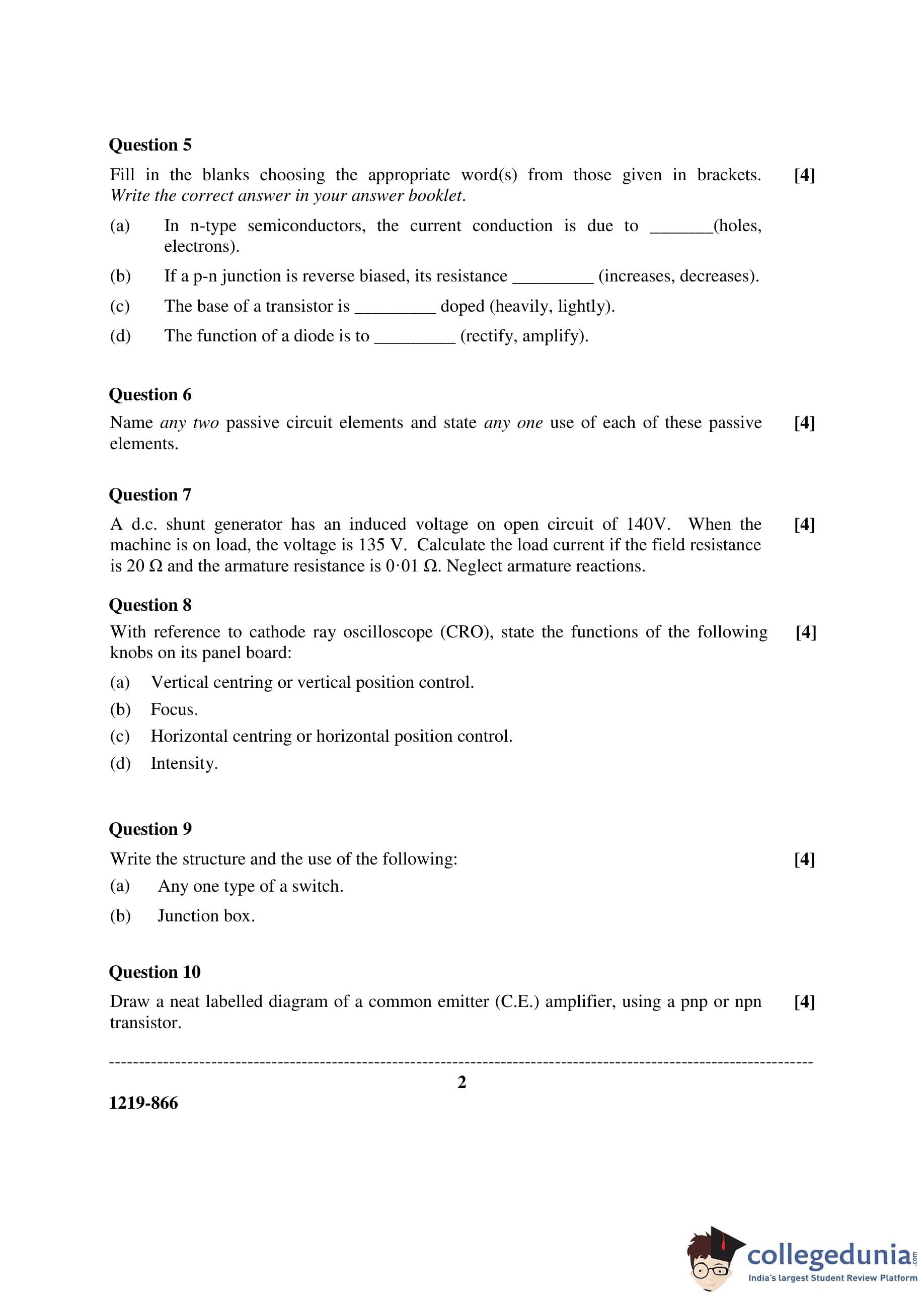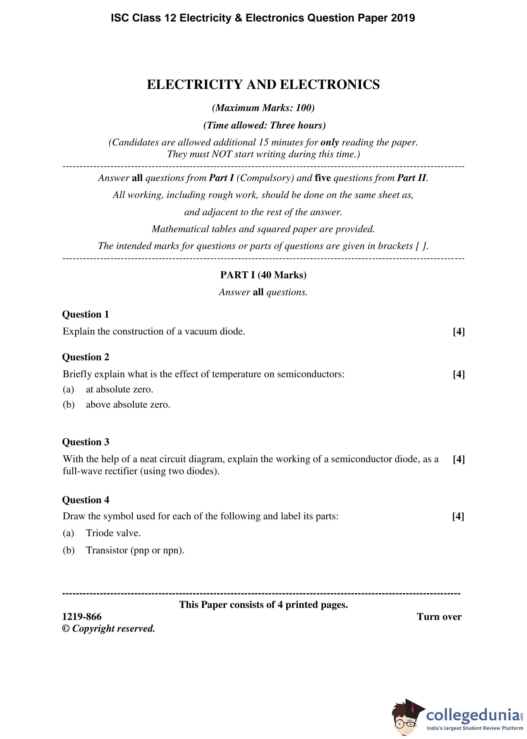 ISC Class 12 Electricity & Electronics Question Paper 2019 with Answer Key