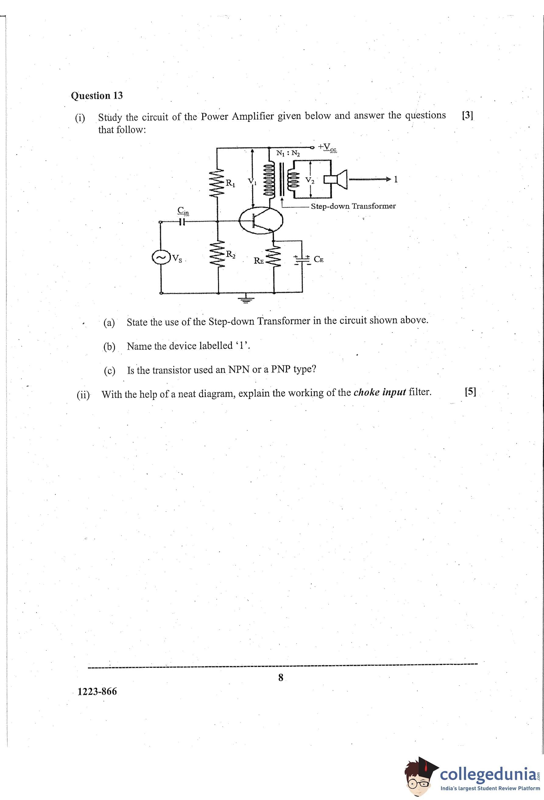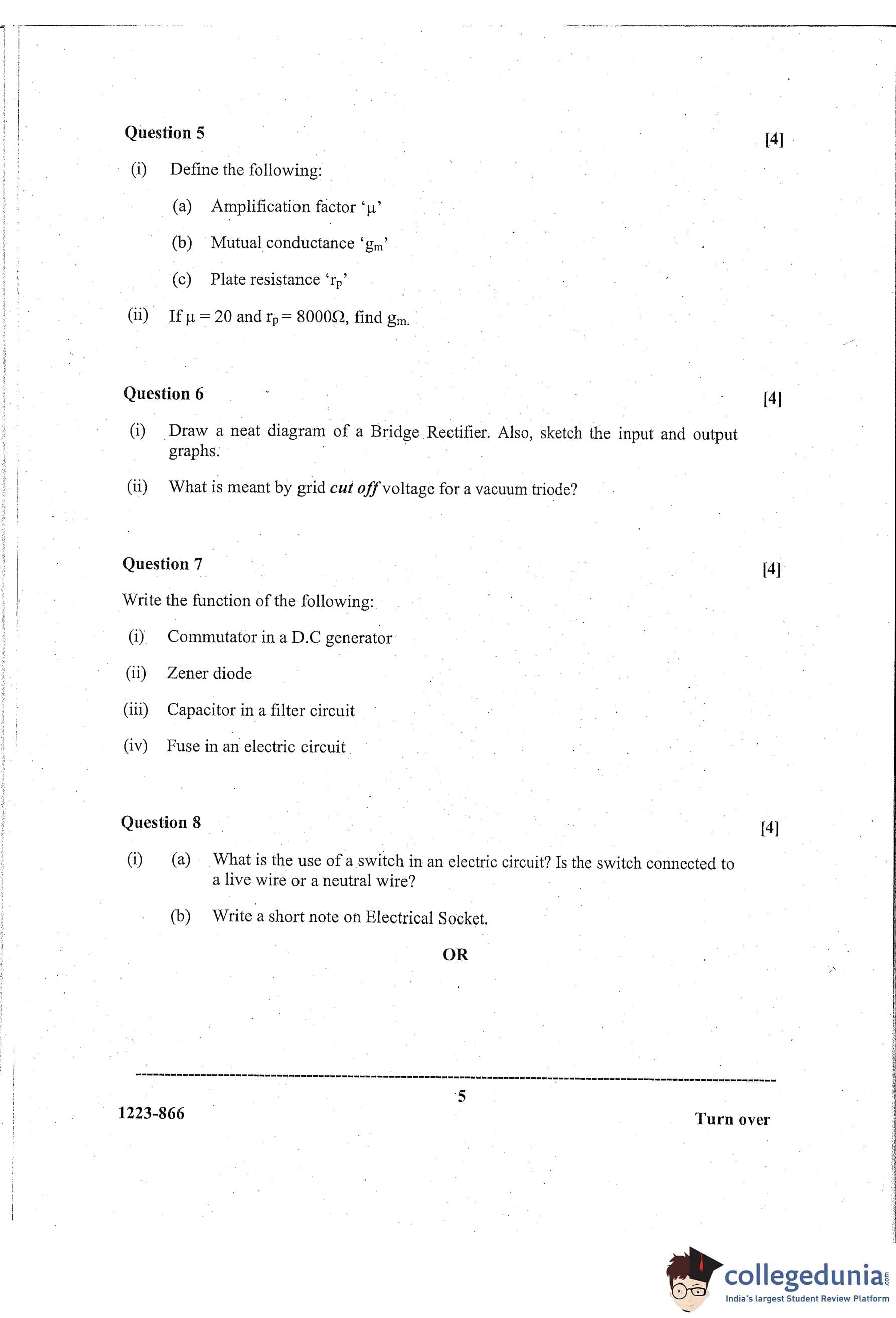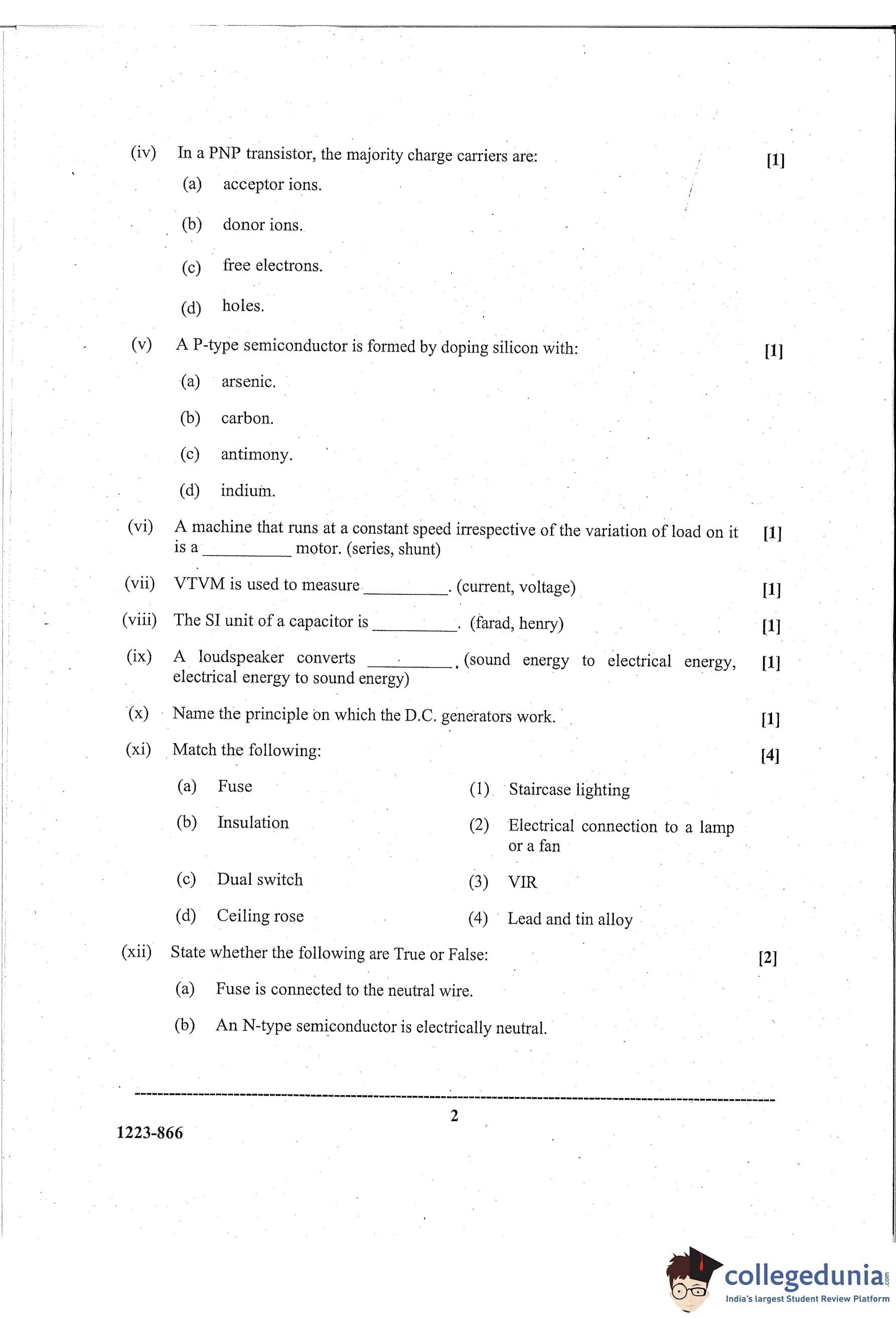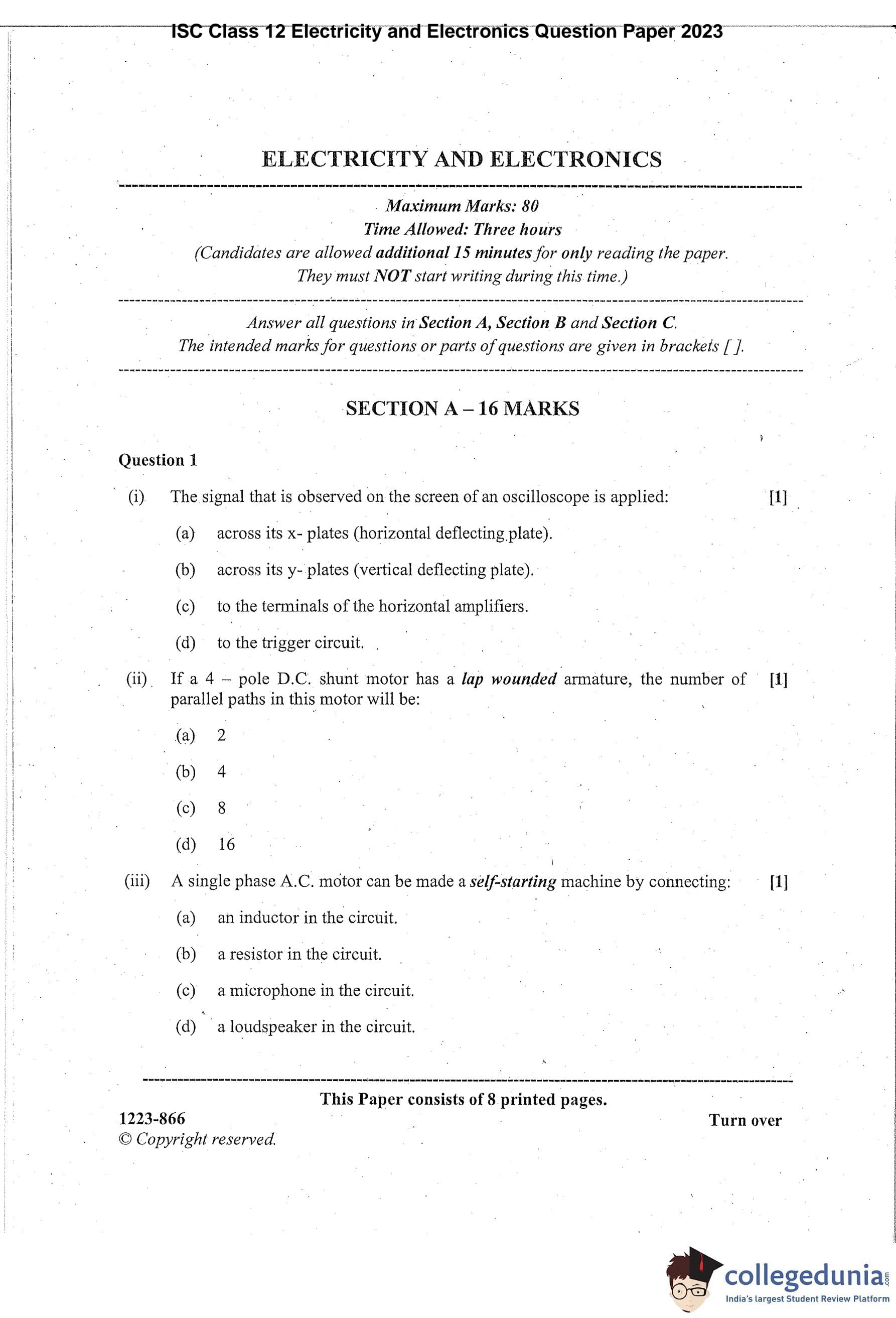 ISC Class 12 Electricity and Electronics Question Paper 2023 with Answer Key