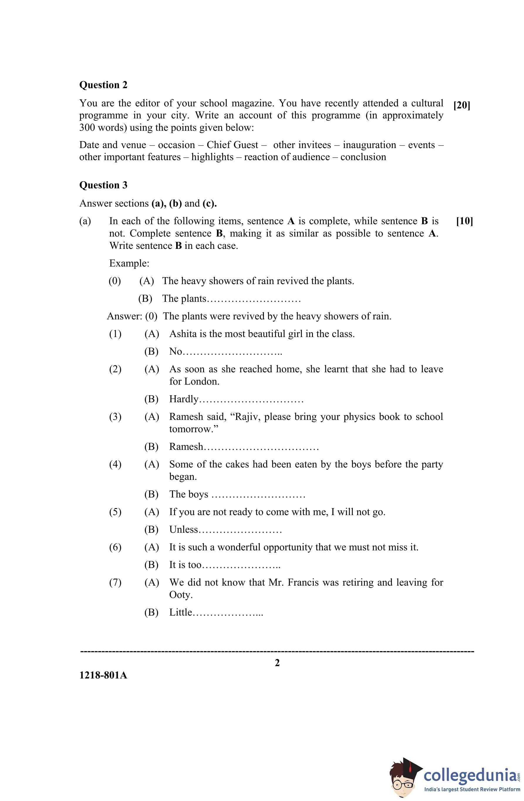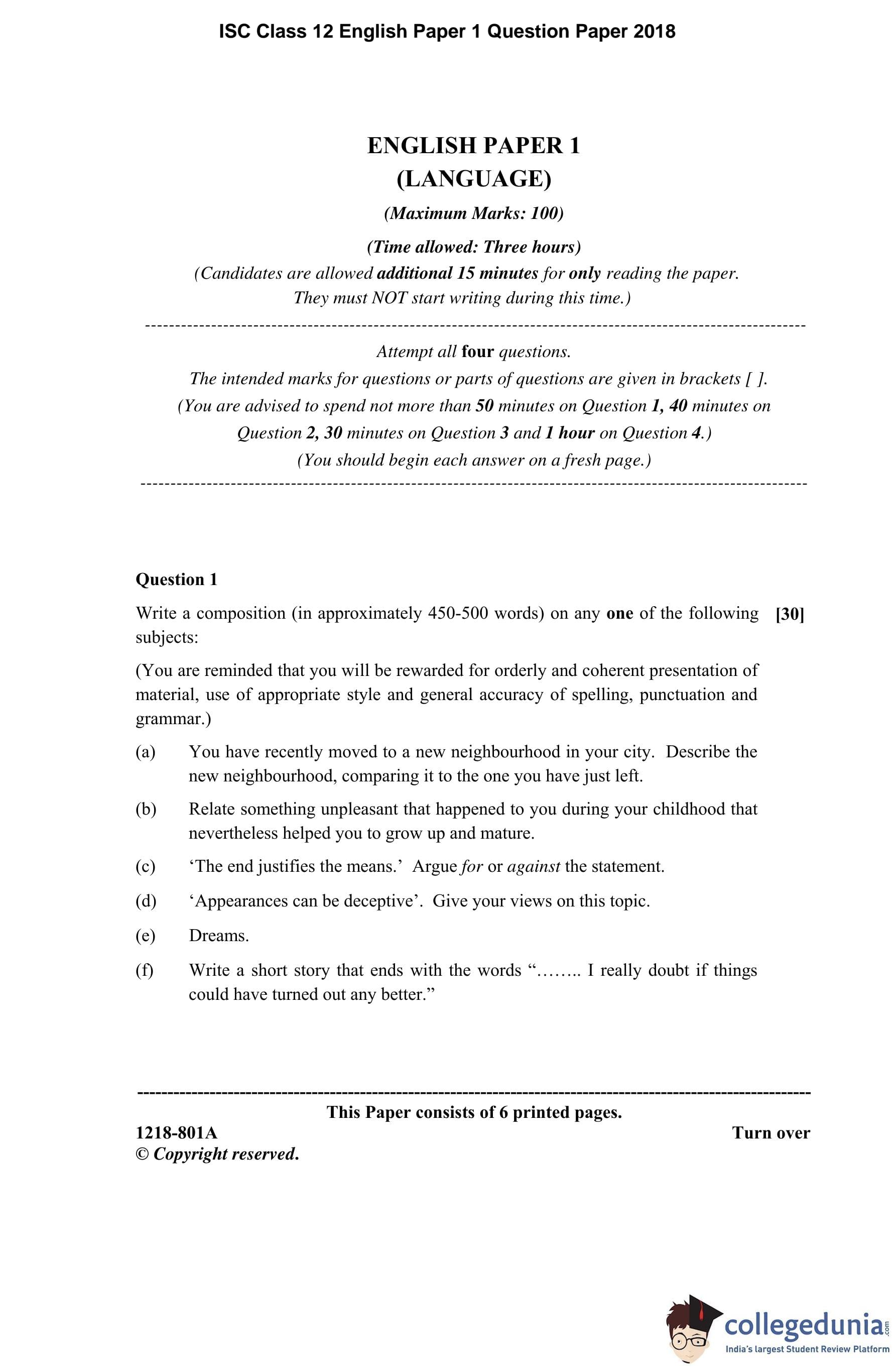 ISC Class 12 English Paper 1 Question Paper 2018 with Answer Key