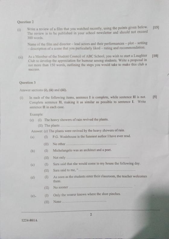 ISC Class 12 English paper 1 Question Paper 2024 with Answer Key
