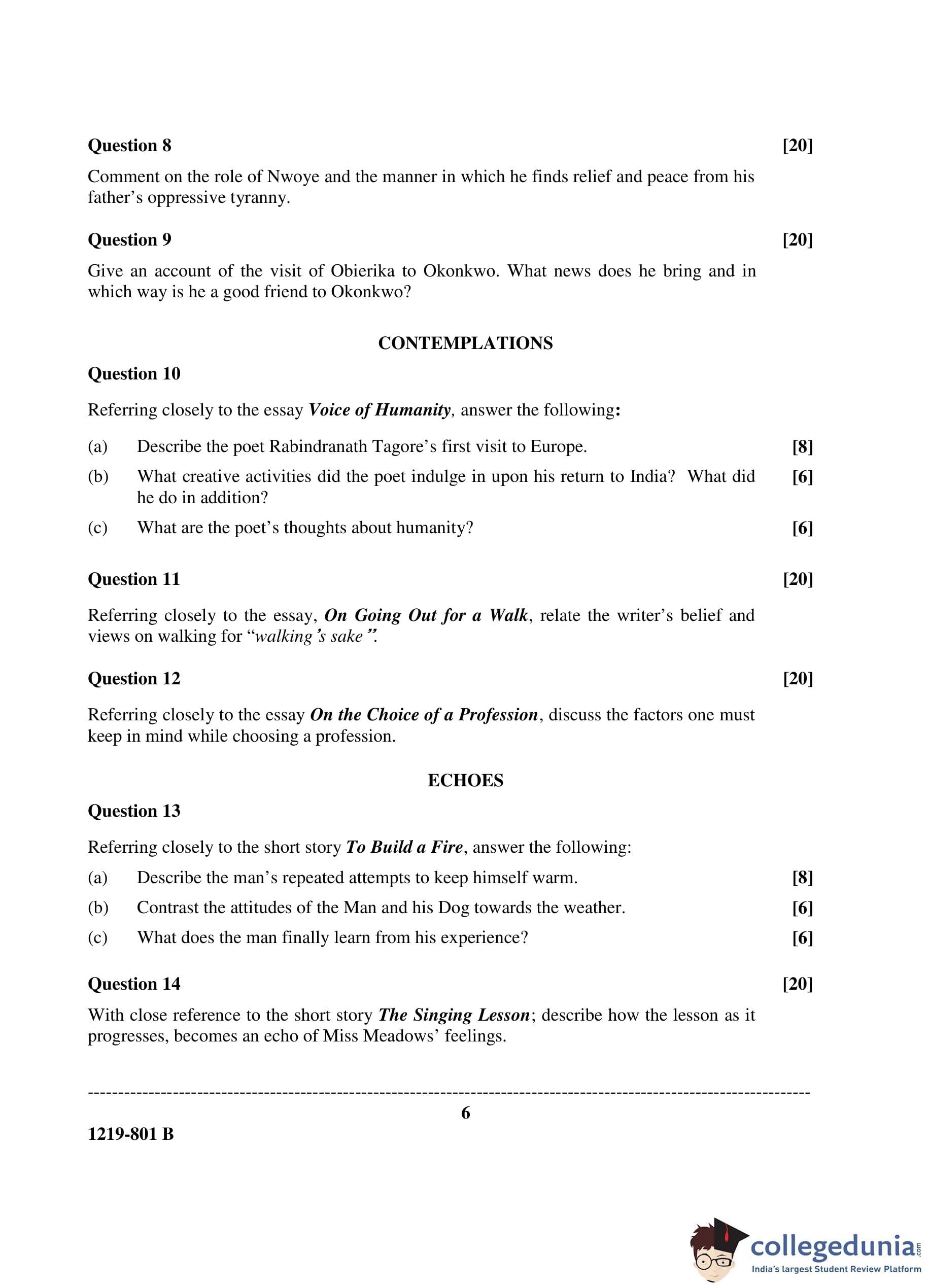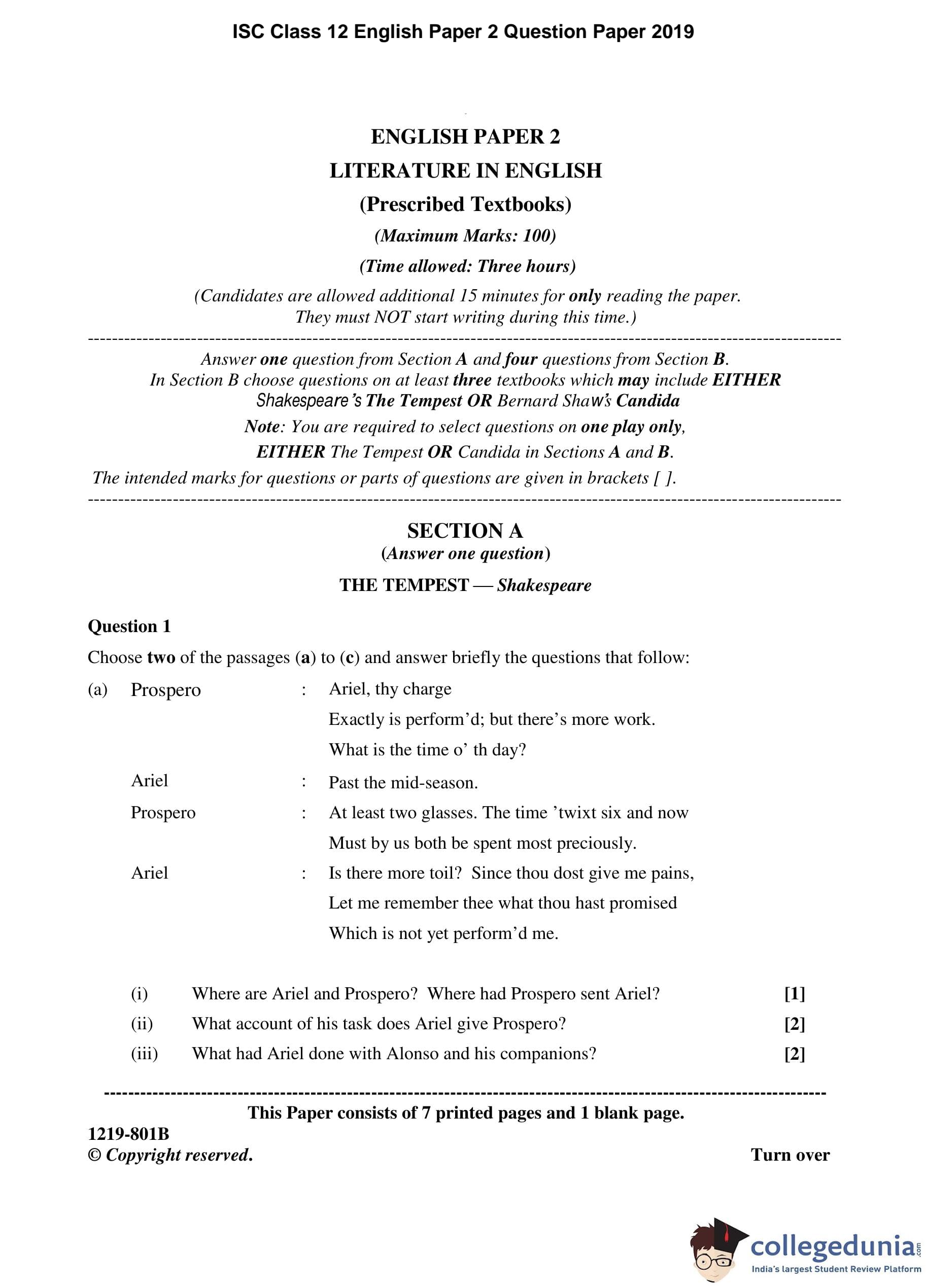 ISC Class 12 English Paper 2 Question Paper 2019 with Answer Key