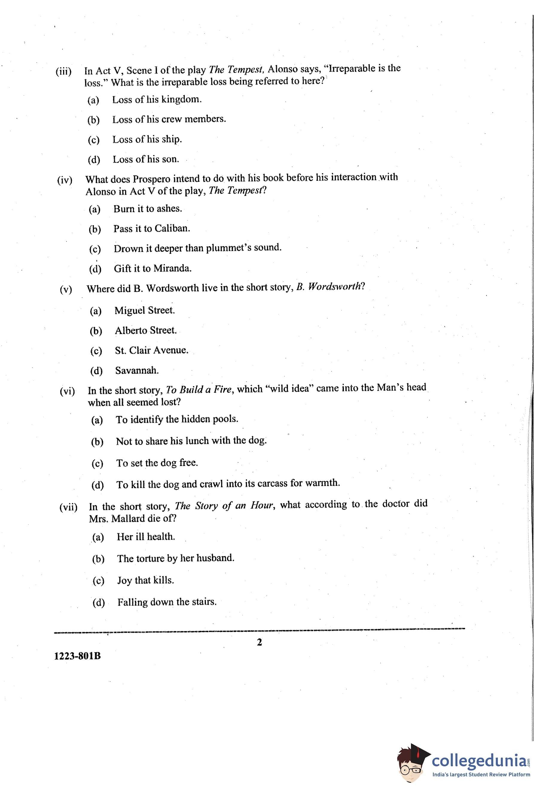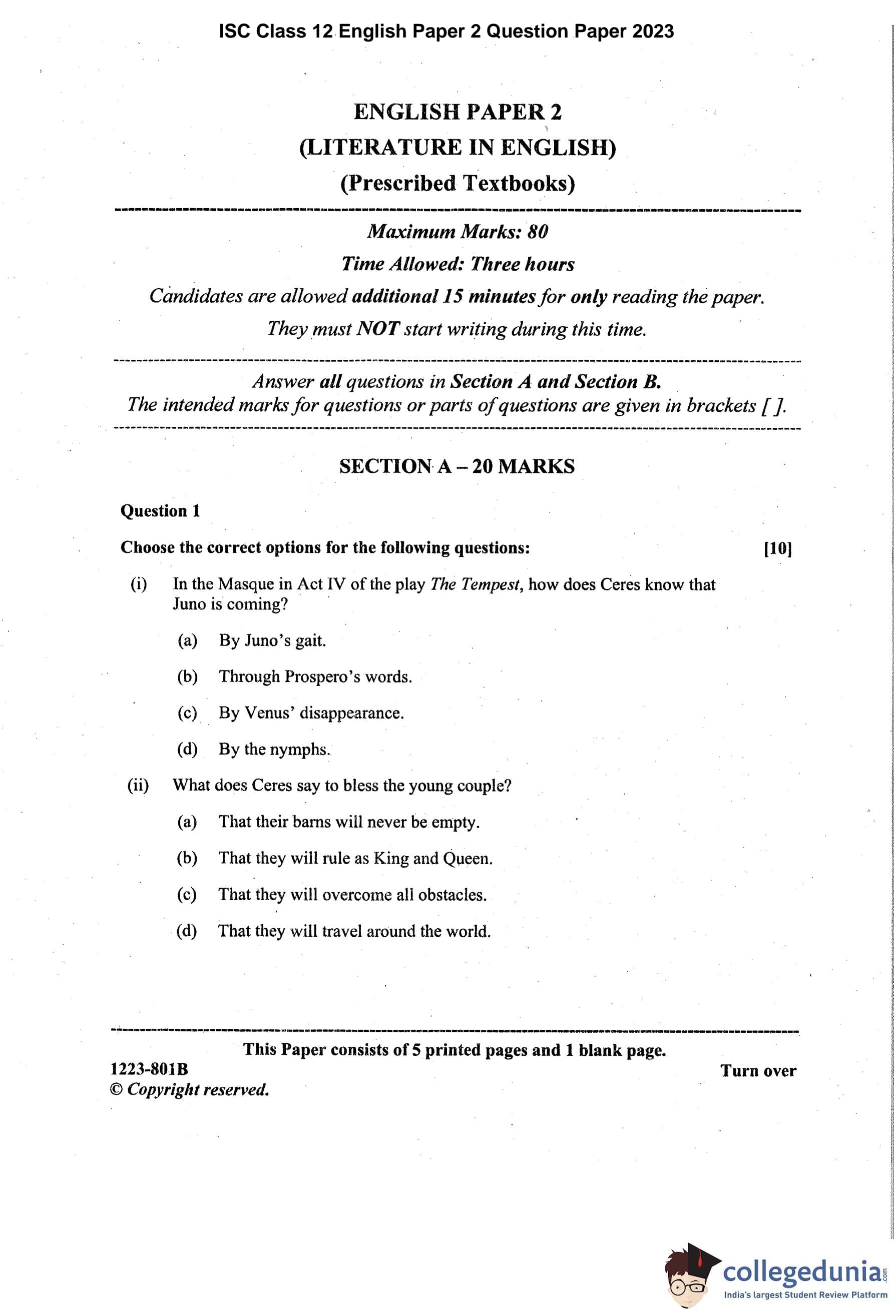ISC Class 12 English Paper 2 Question Paper 2023 with Answer Key