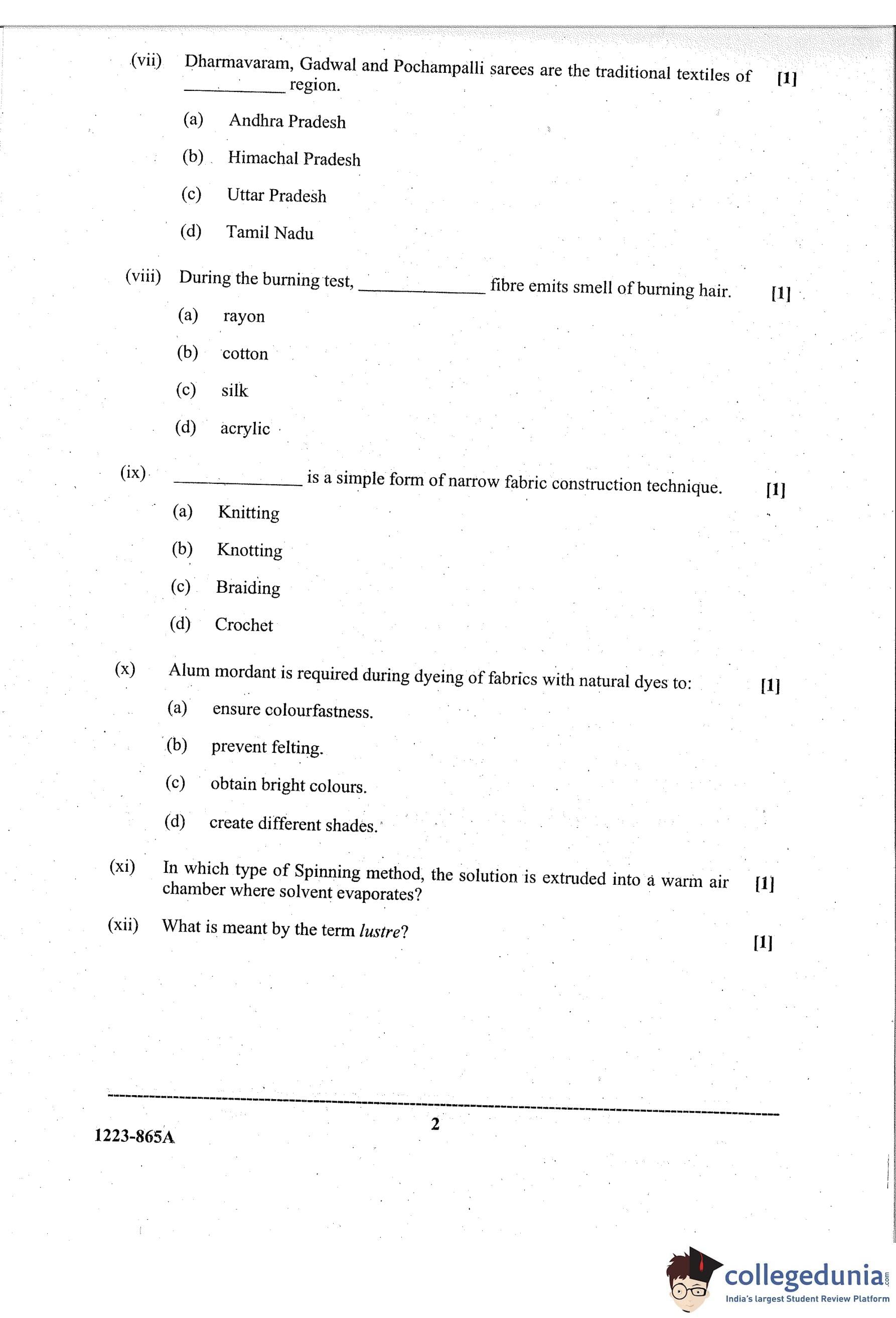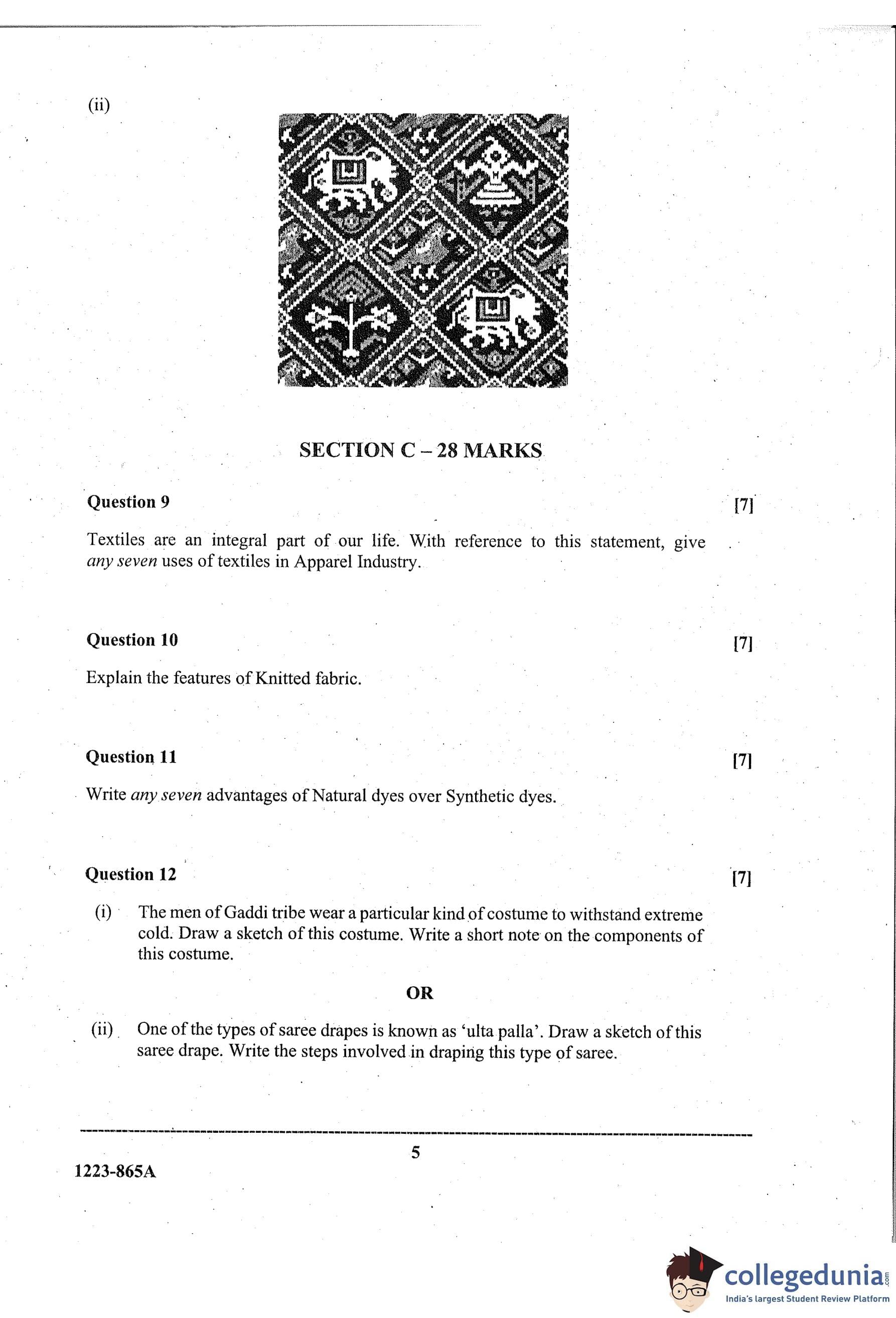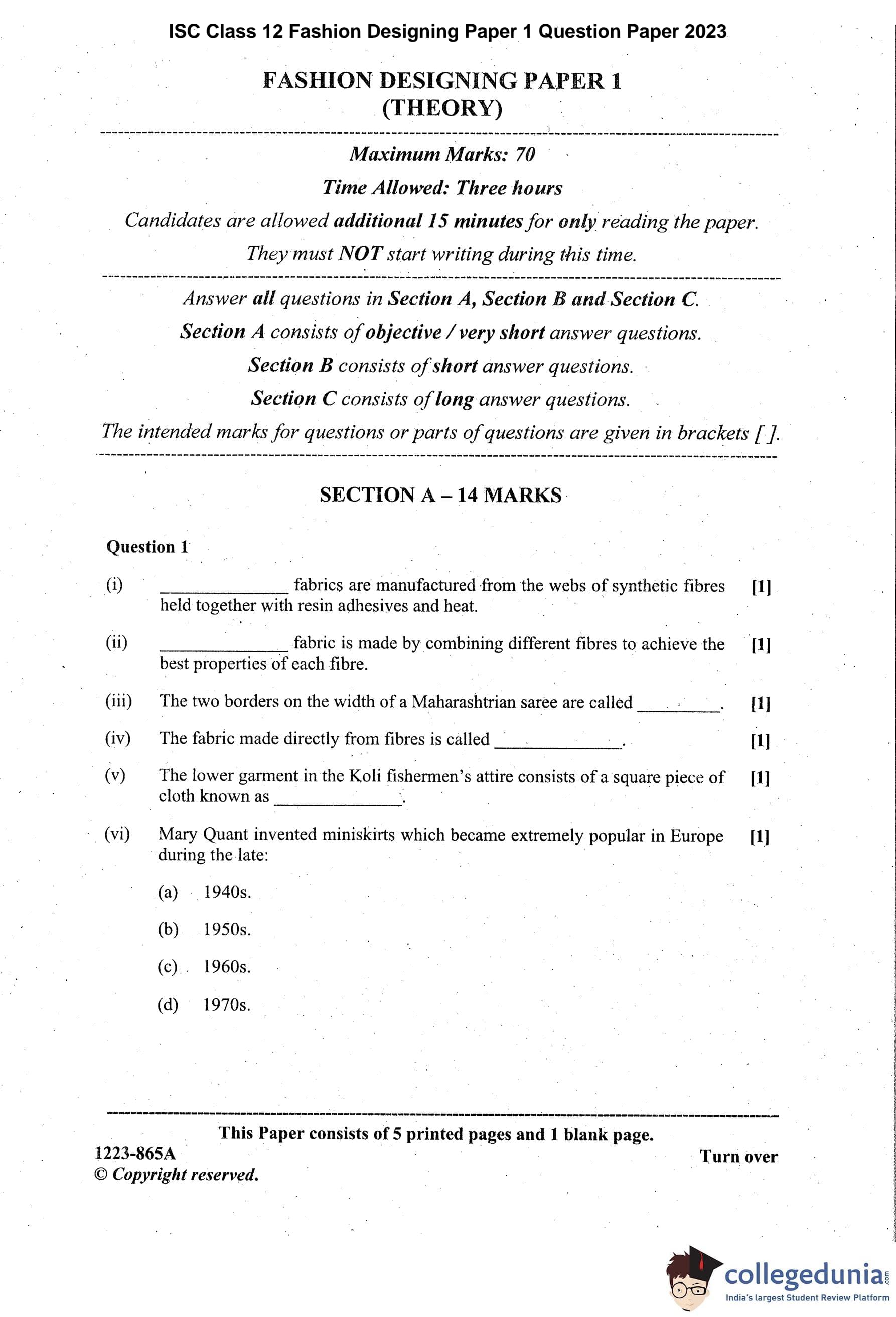 ISC Class 12 Fashion Designing Paper 1 Question Paper 2023 with Answer Key