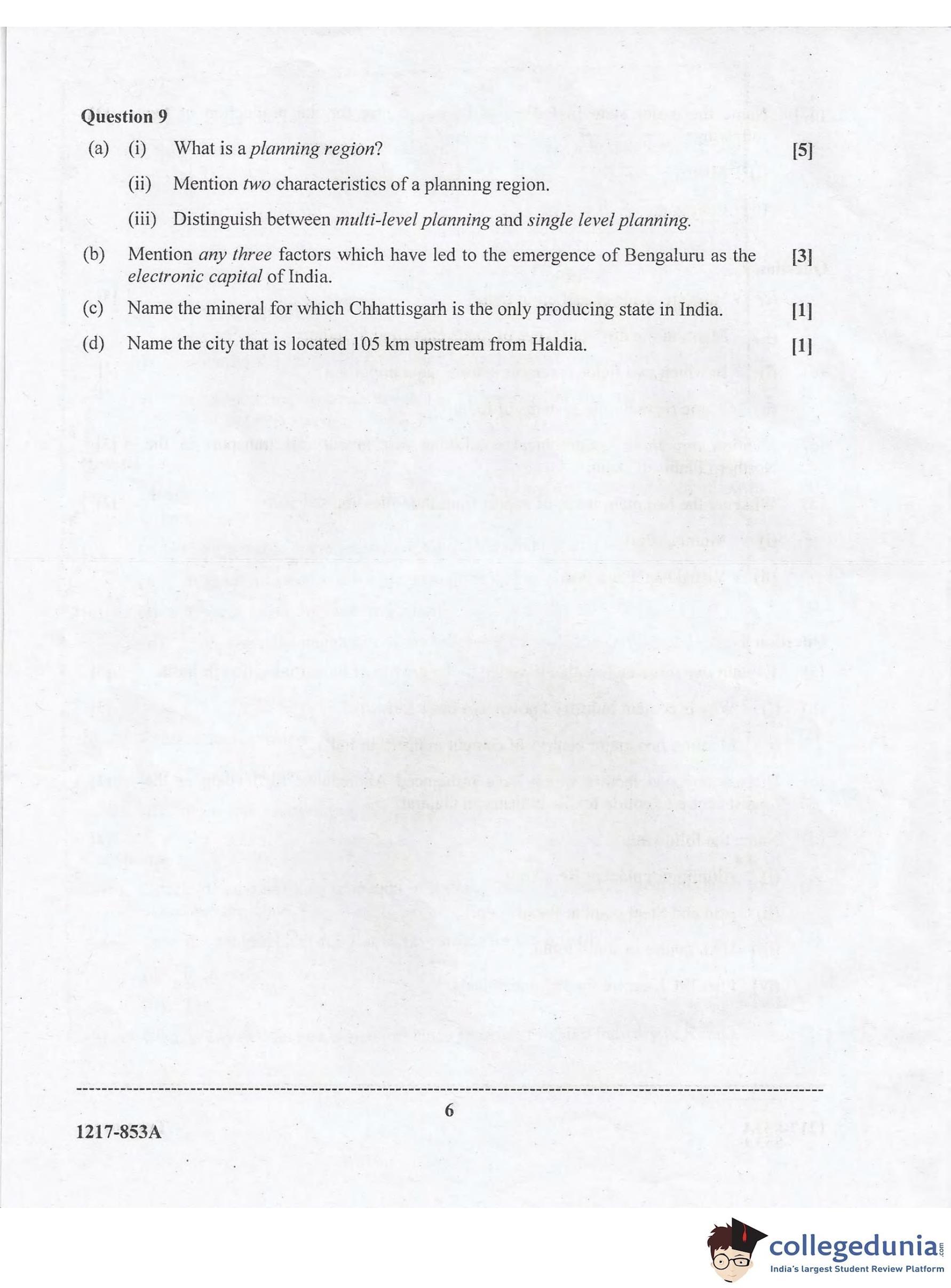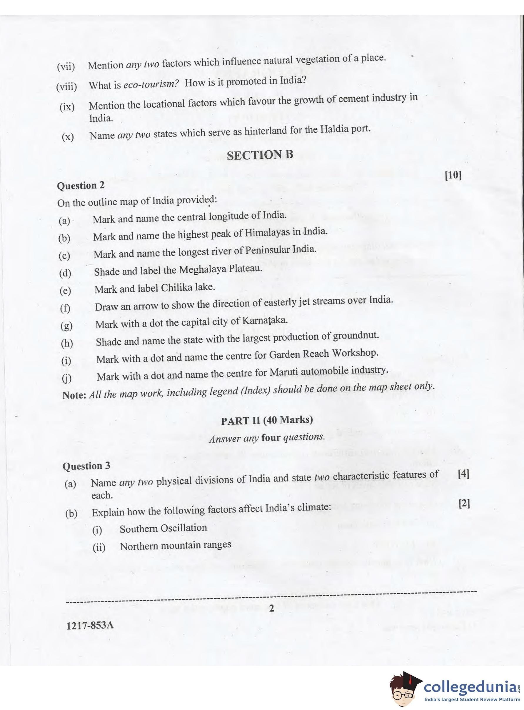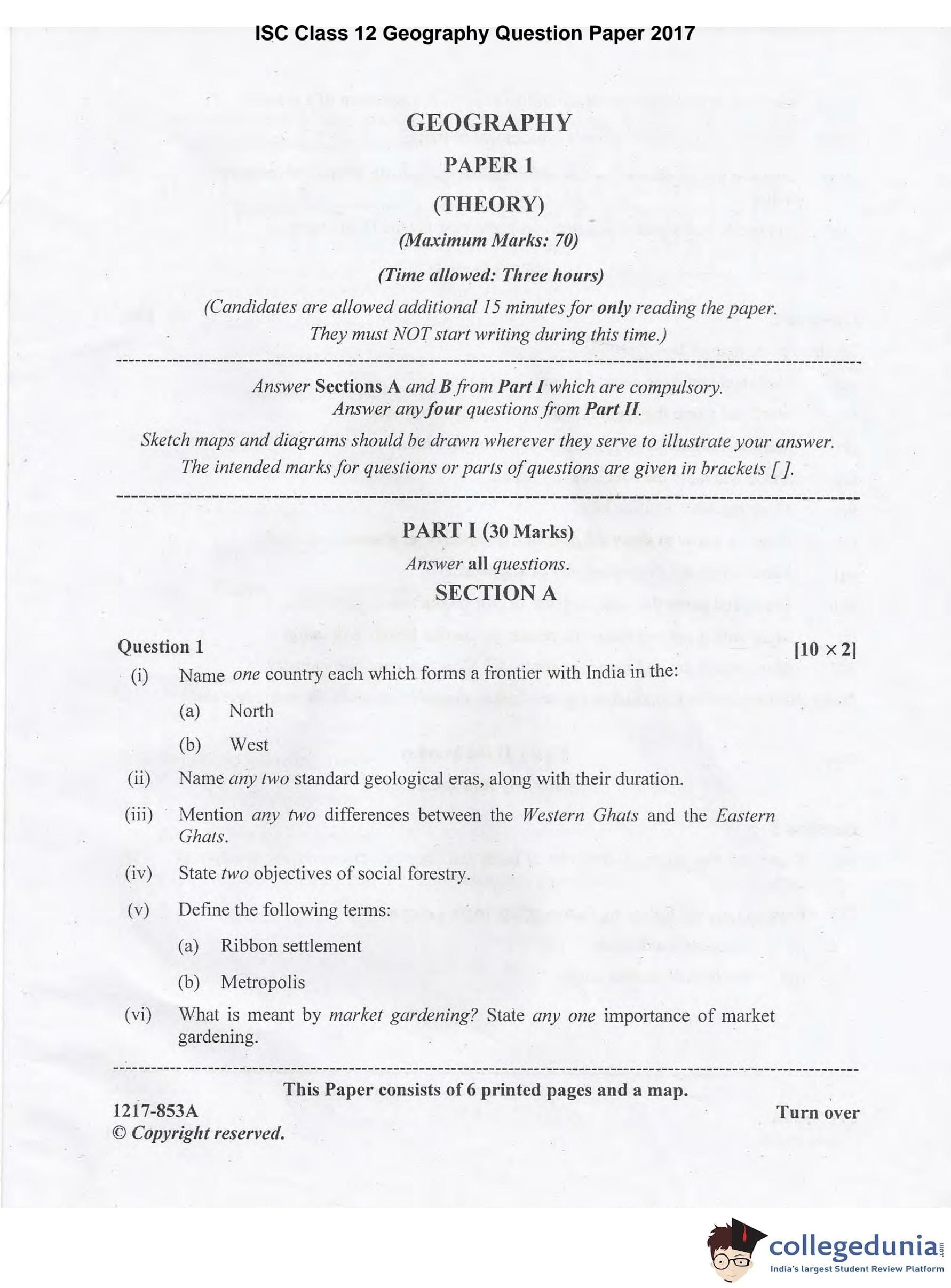 ISC Class 12 Geography Question Paper 2017 with Answer Key