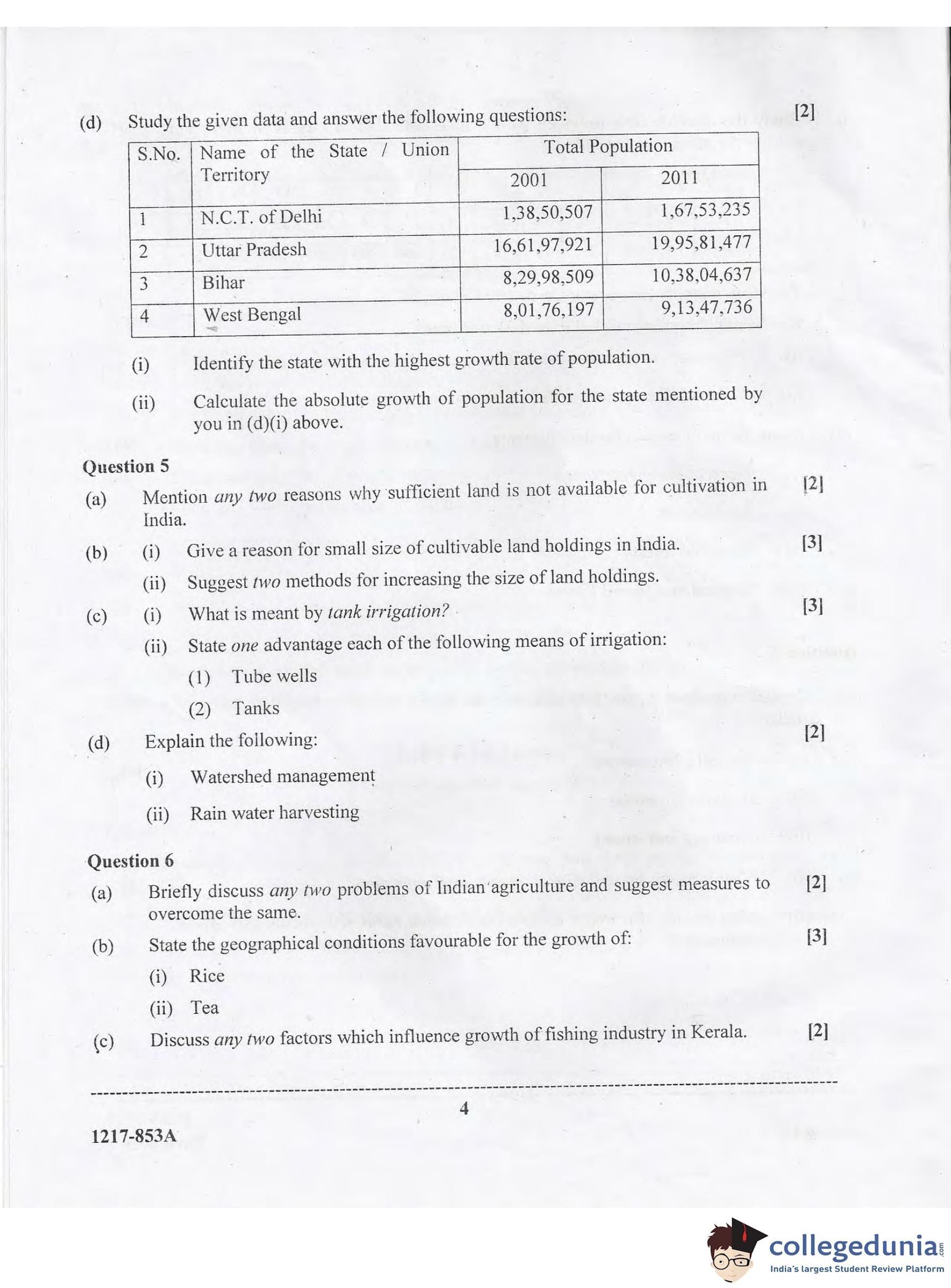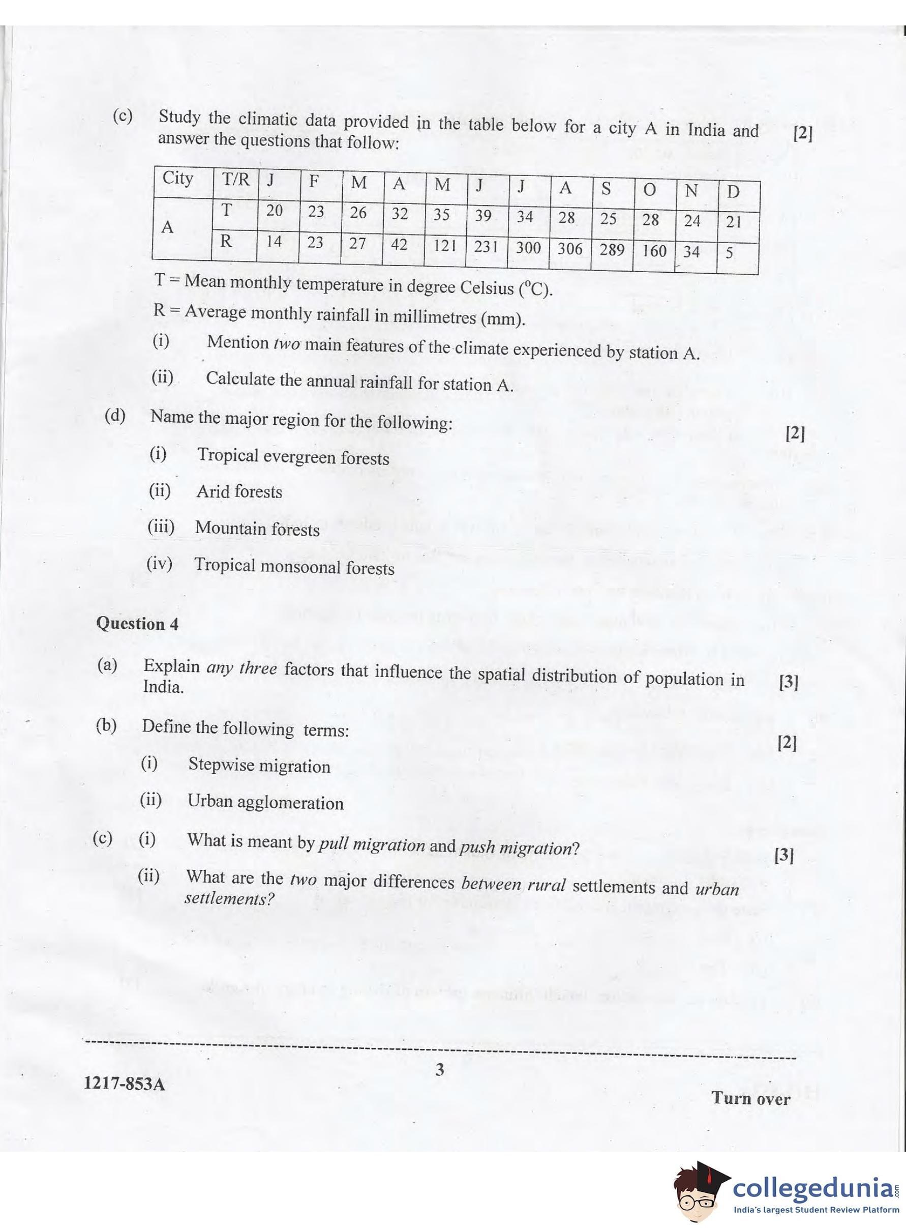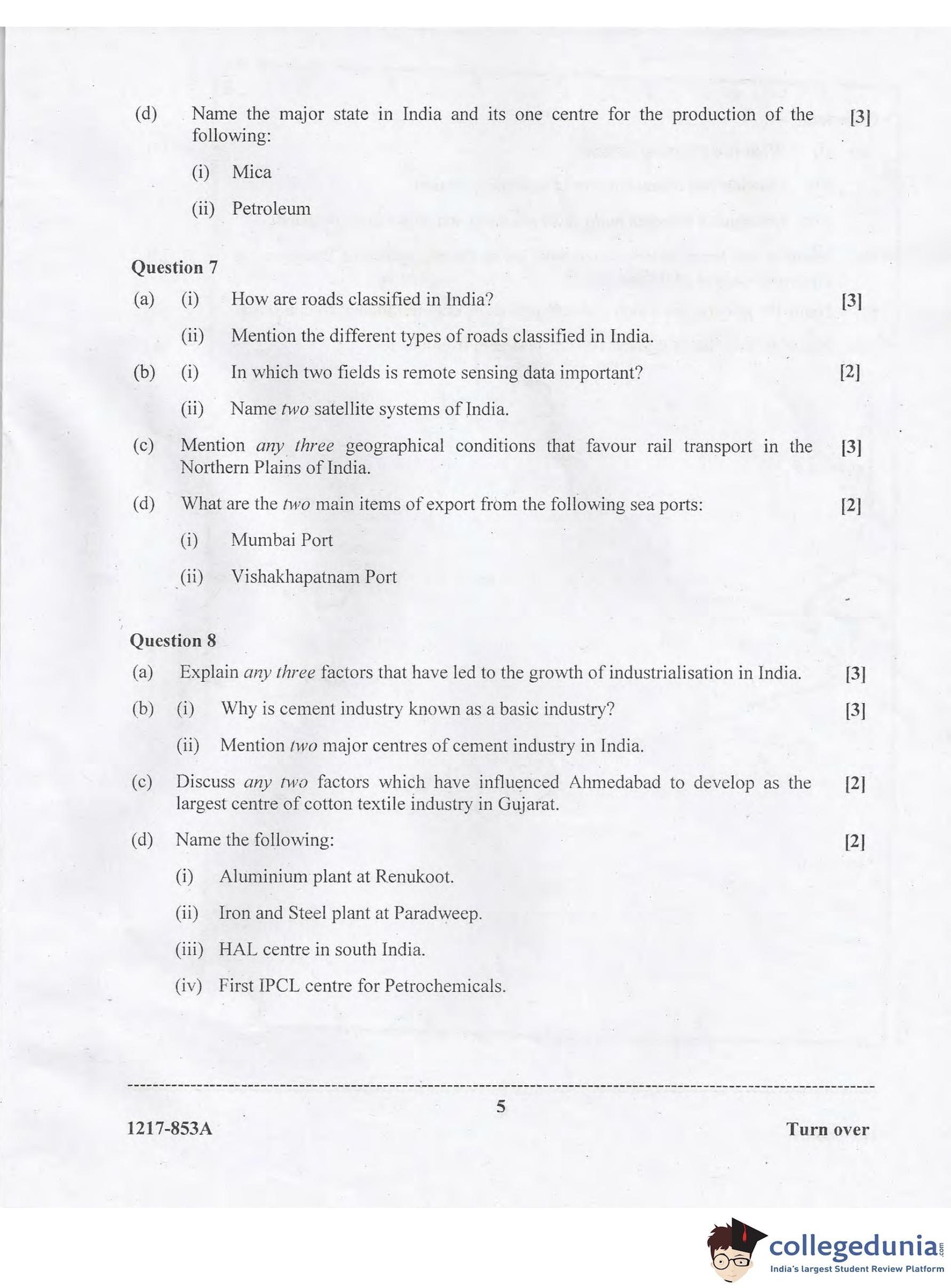 ISC Class 12 Geography Question Paper 2017 with Answer Key