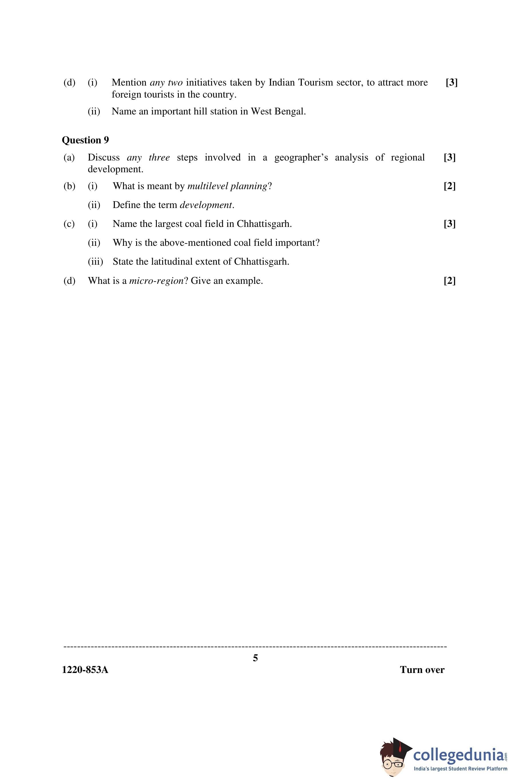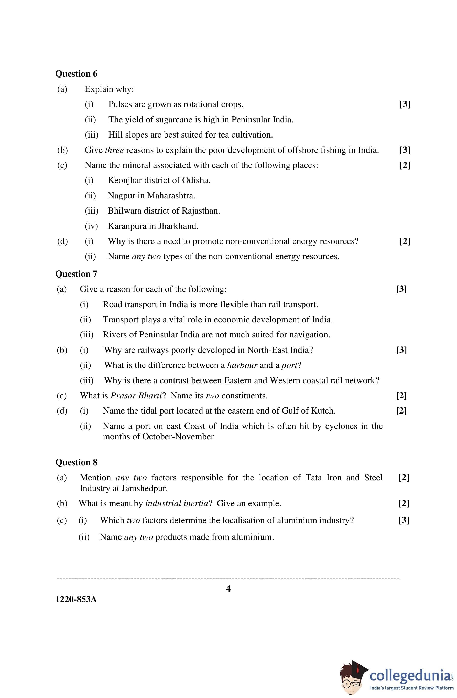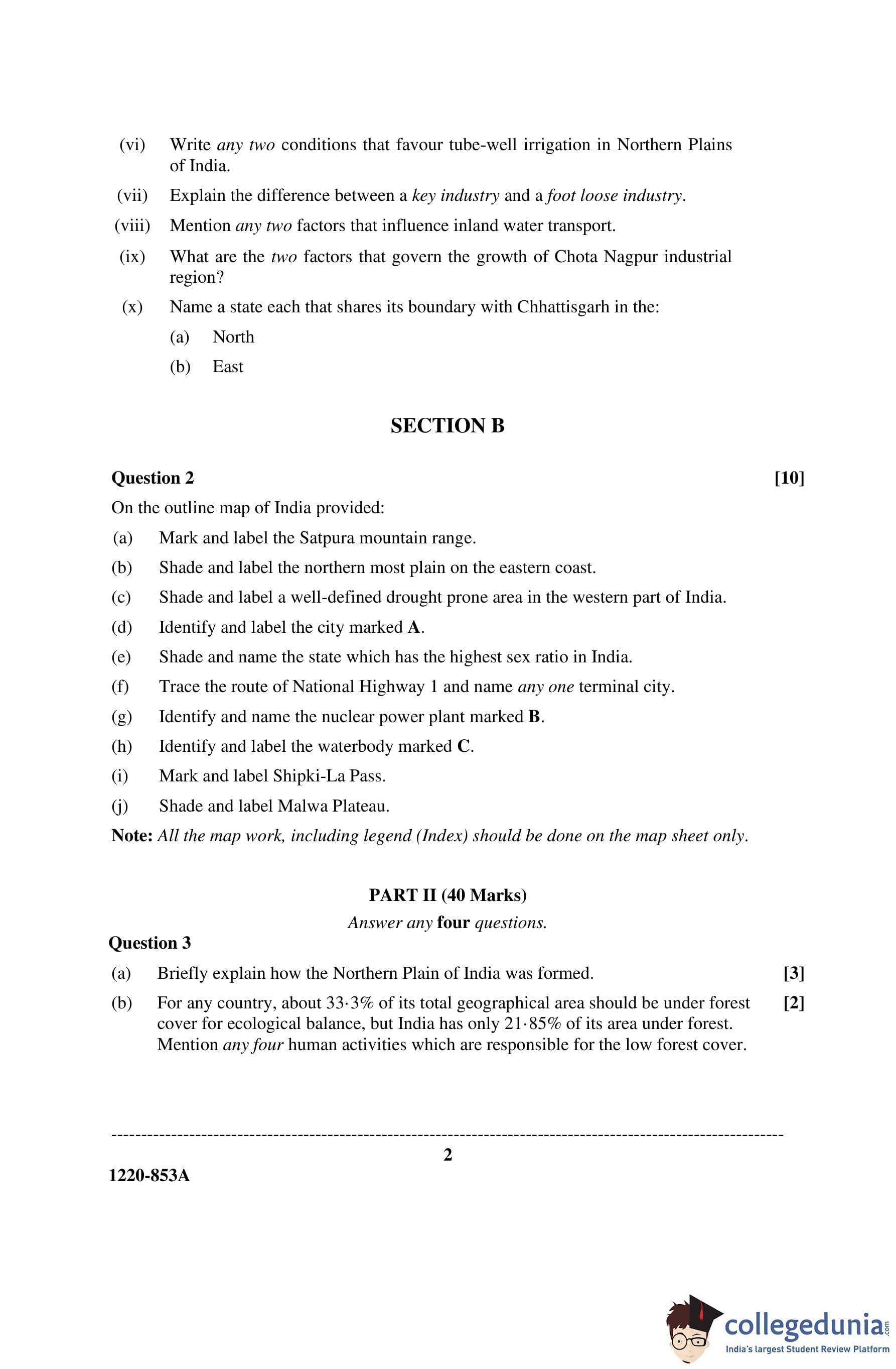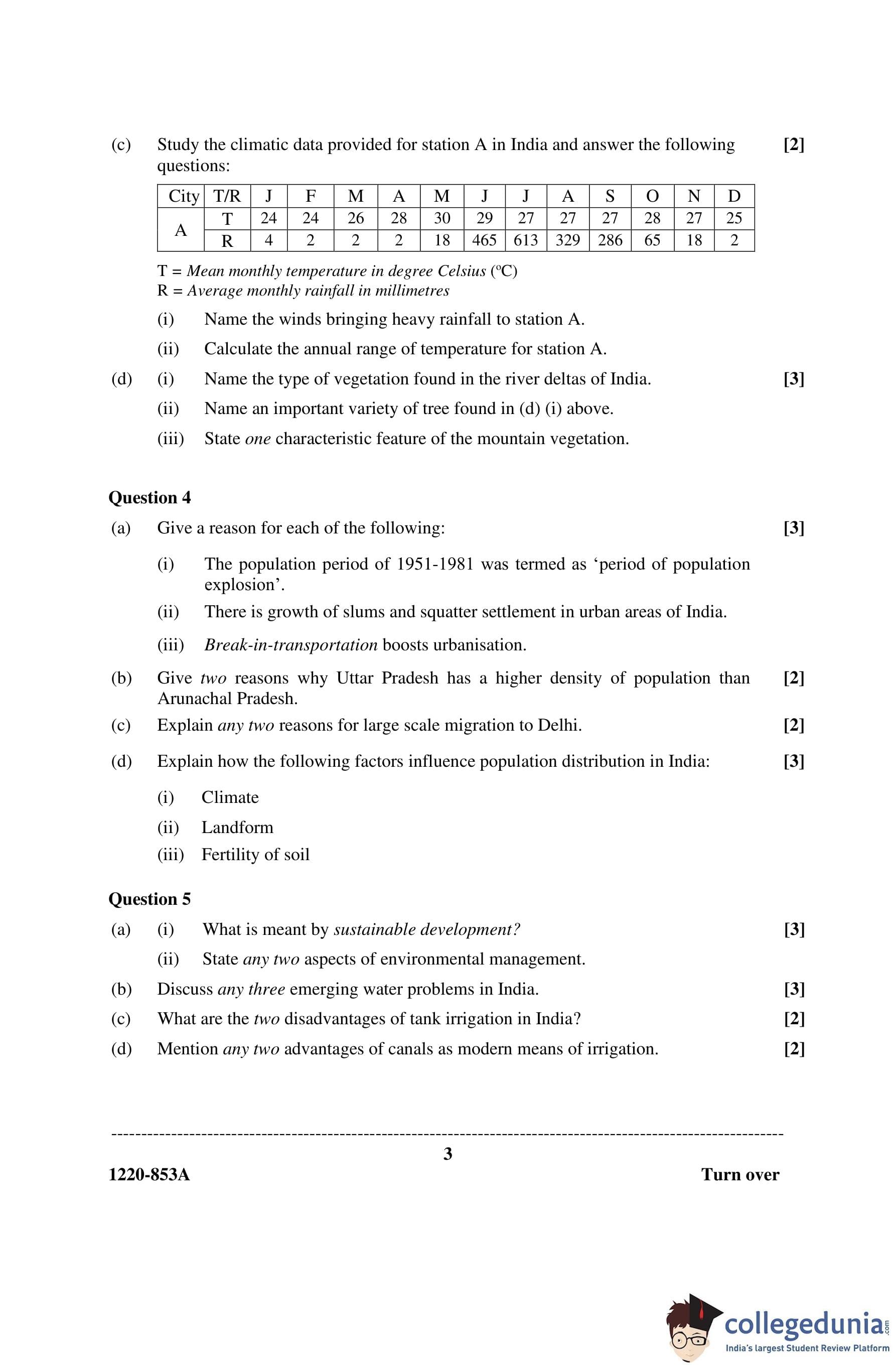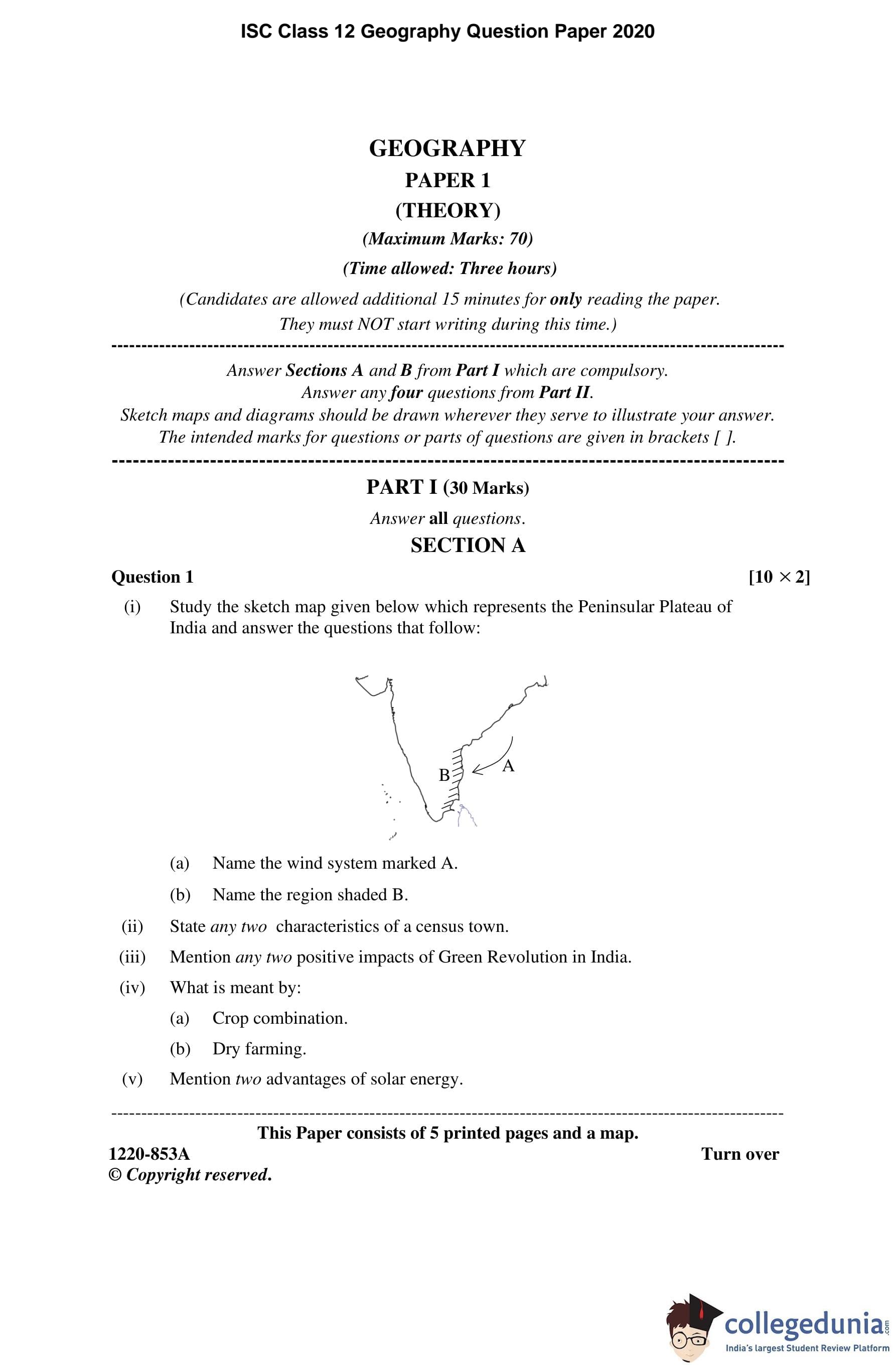 ISC Class 12 Geography Question Paper 2020 with Answer Key