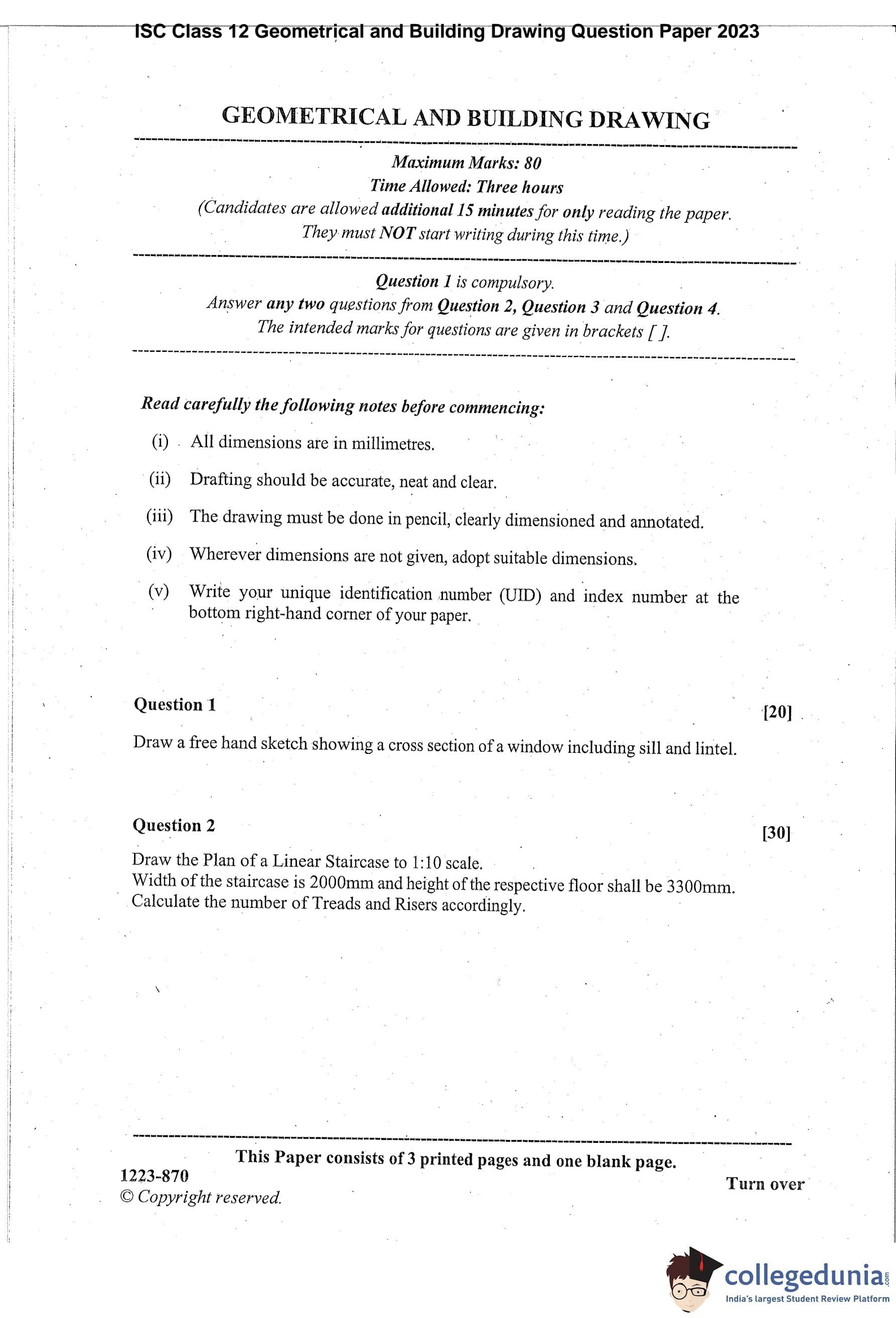 | ISC Class 12 Geometrical and Building Drawing Question Paper 2023 PDF | ISC Class 12 Geometrical and Building Drawing Answer Key 2023 PDF |