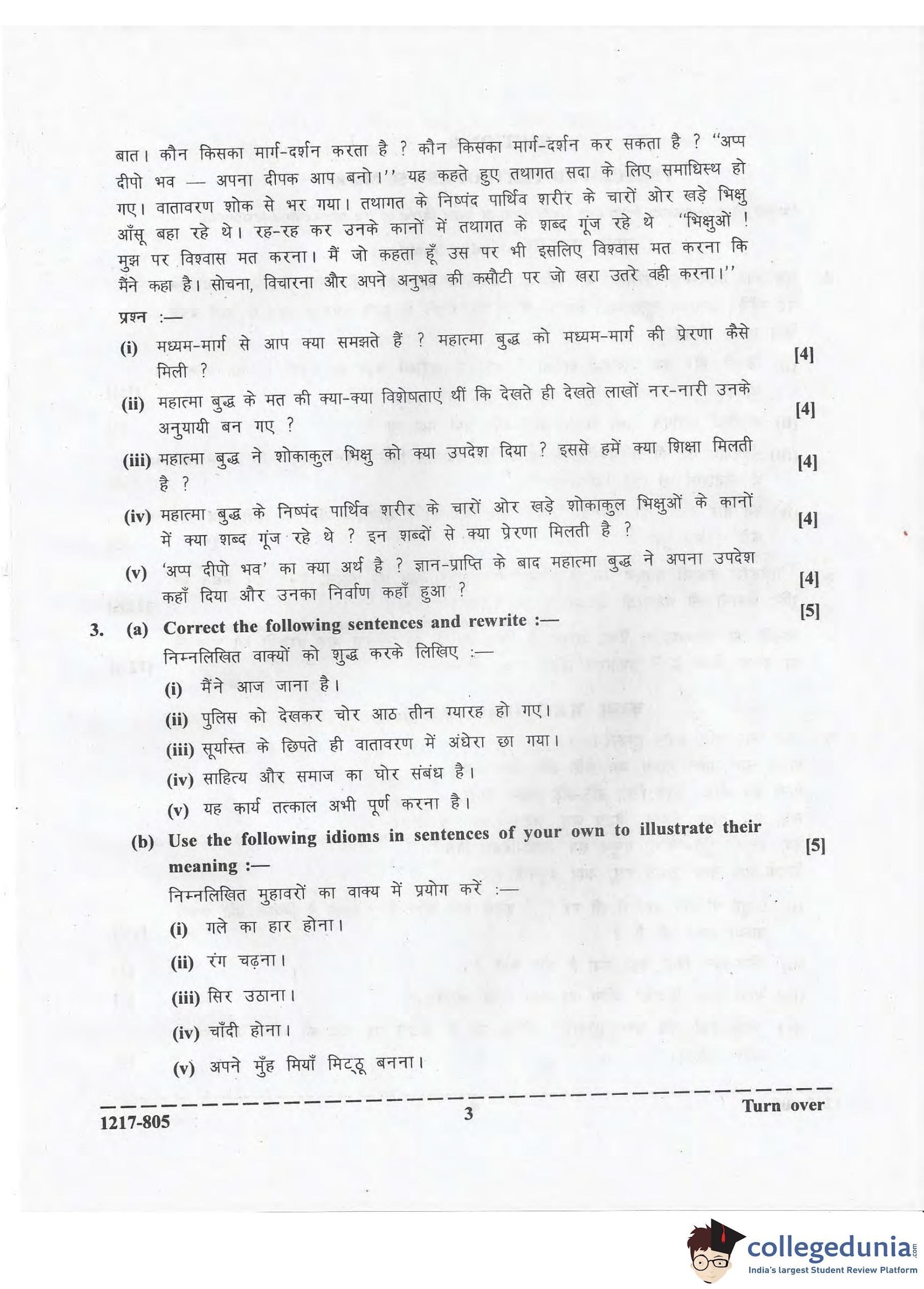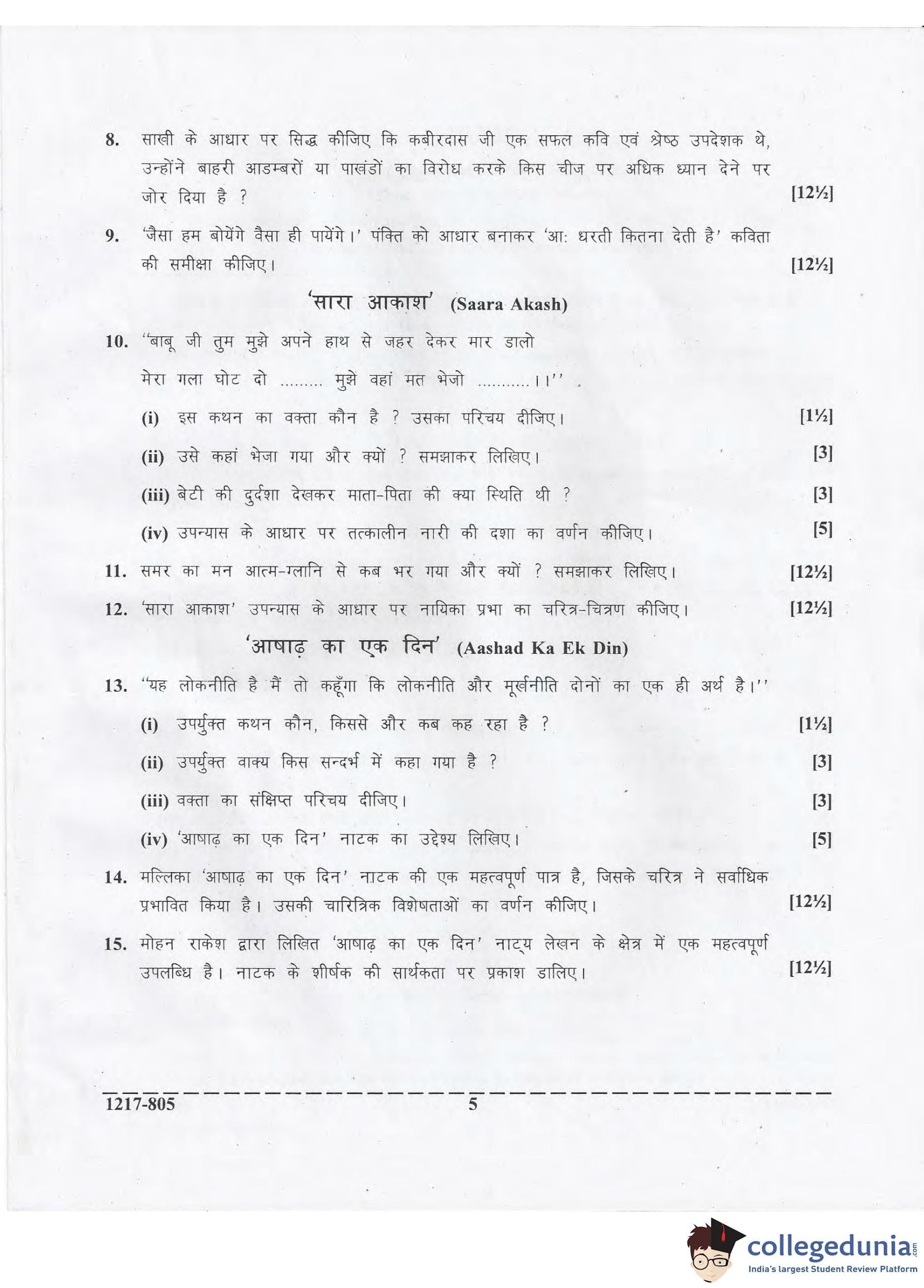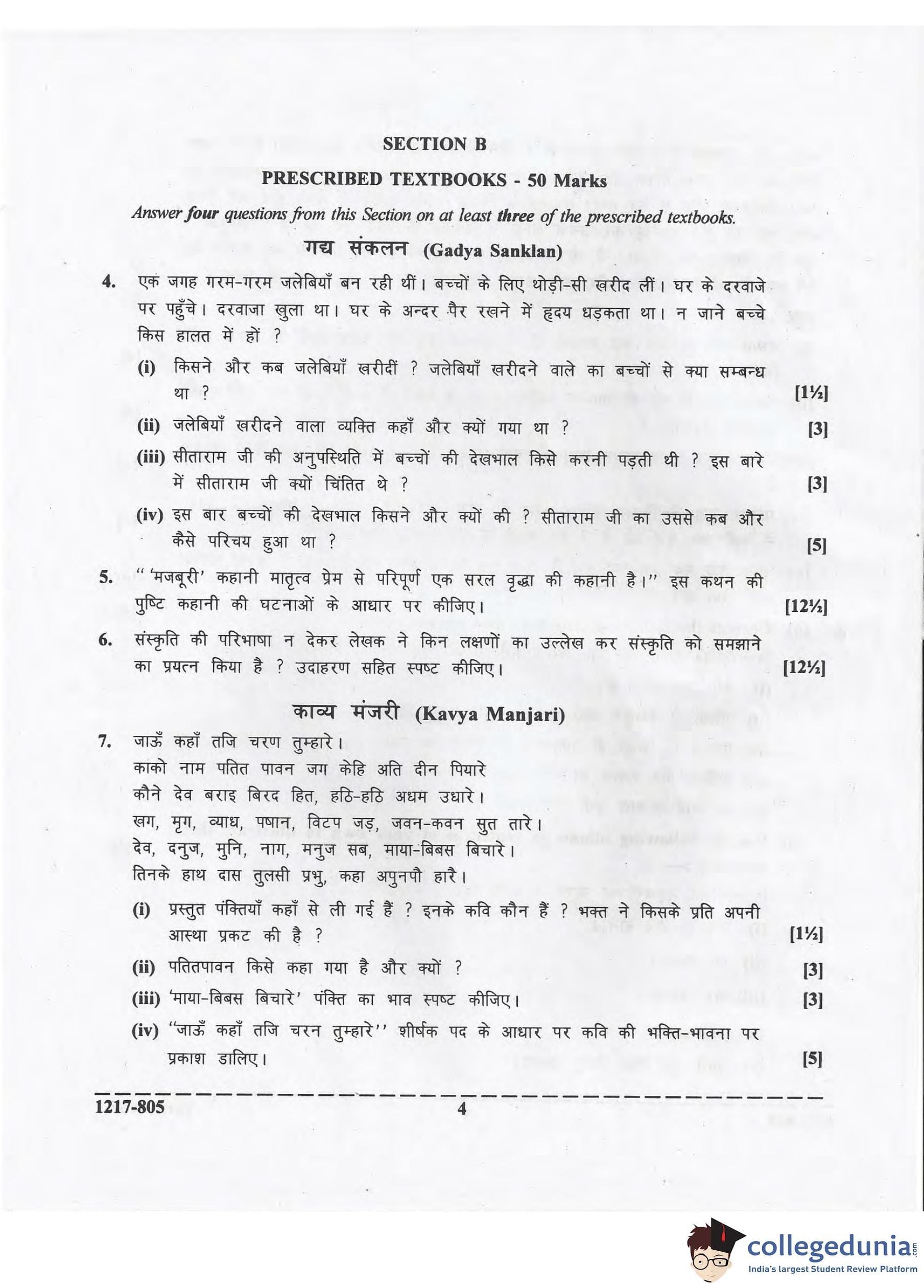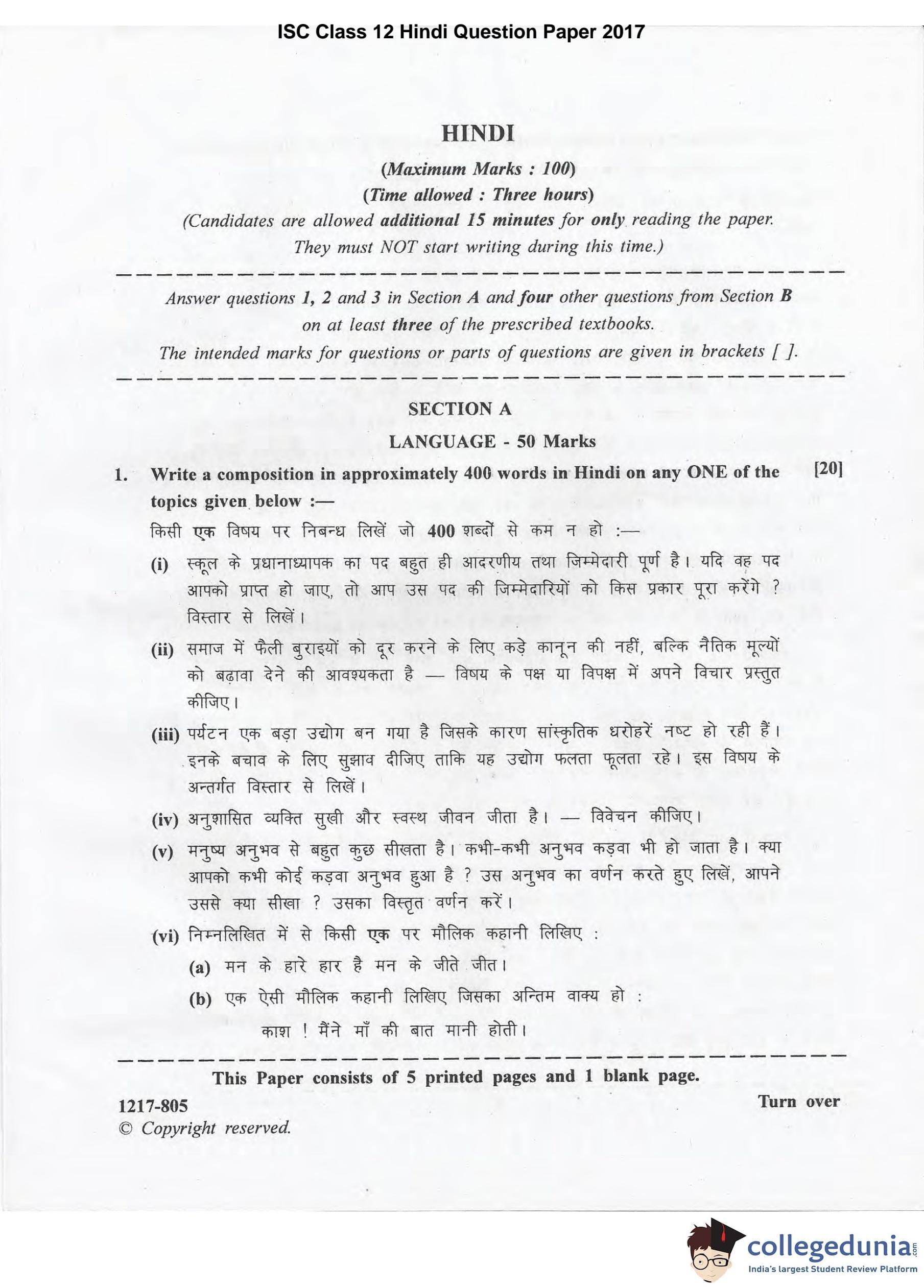 ISC Class 12 Hindi Question Paper 2017 with Answer Key