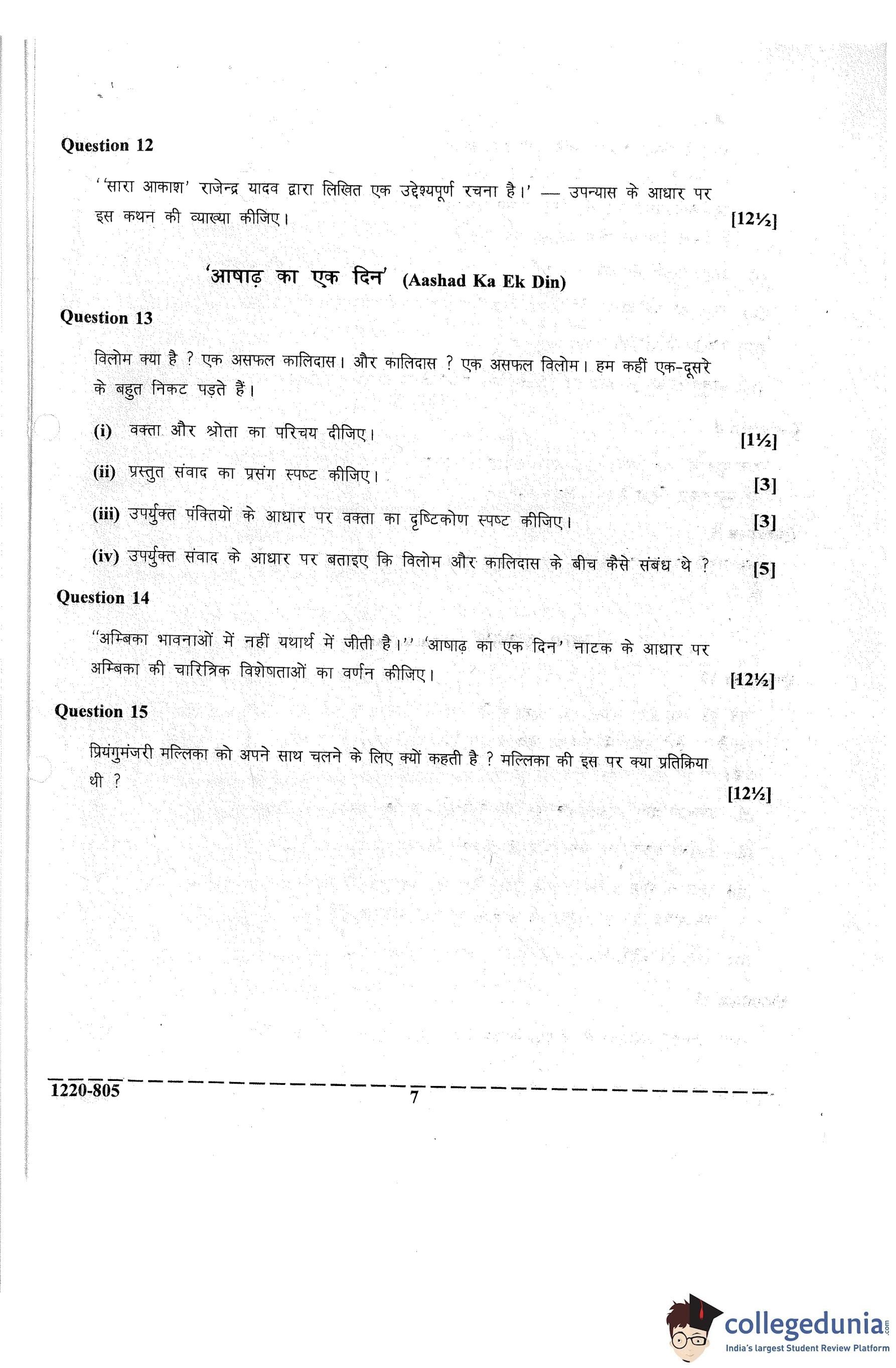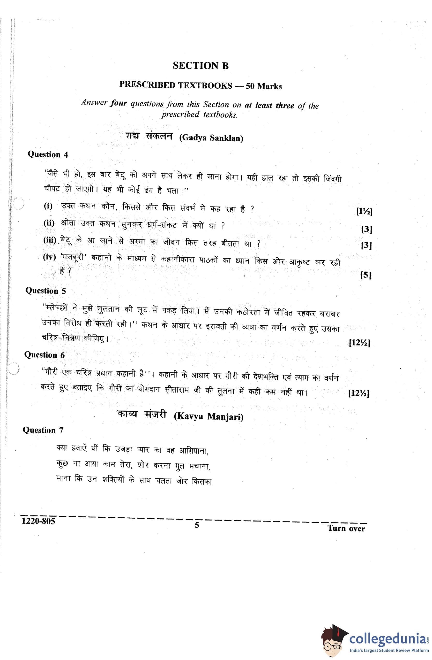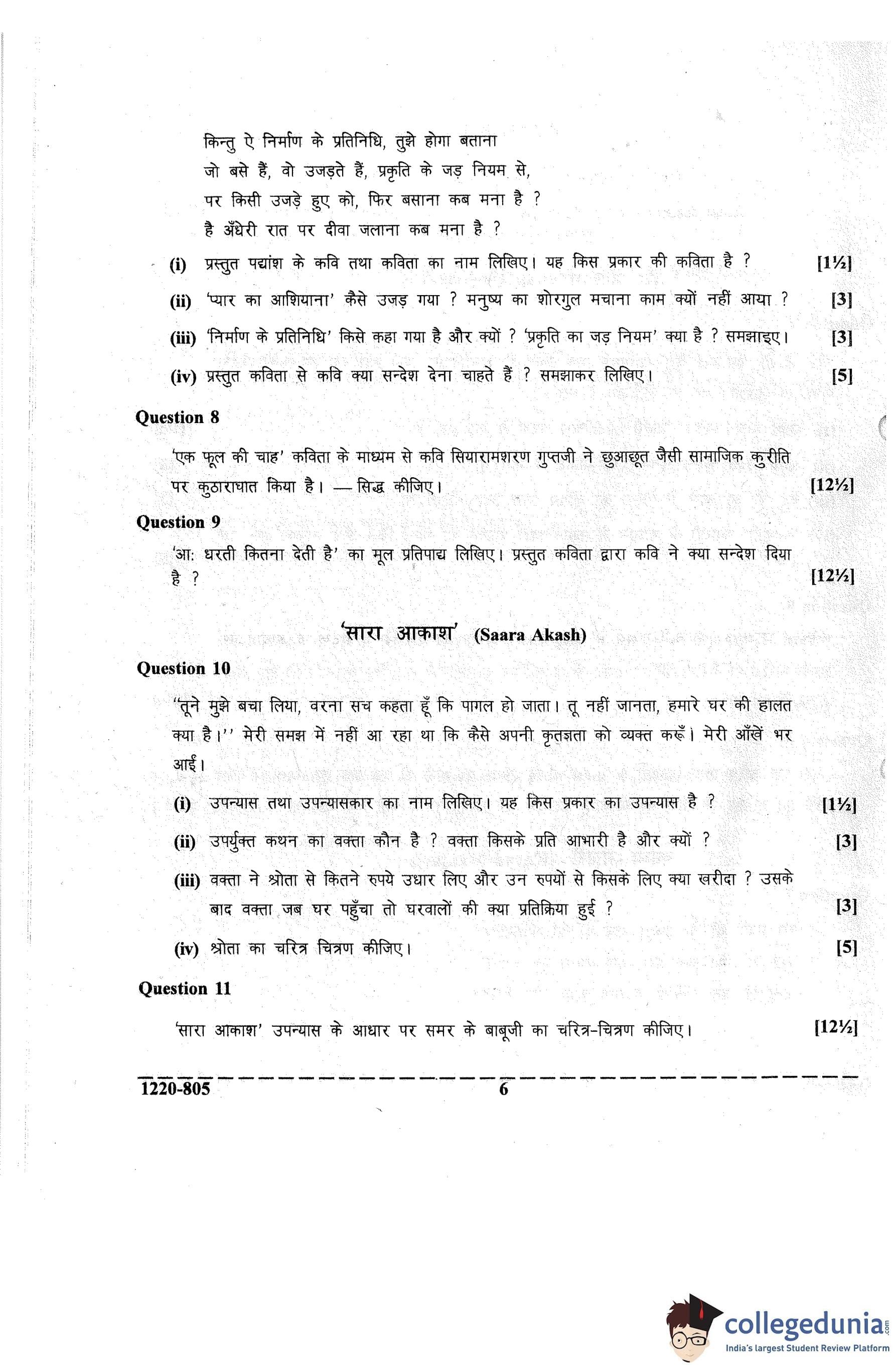 ISC Class 12 Hindi Question Paper 2020 with Answer Key