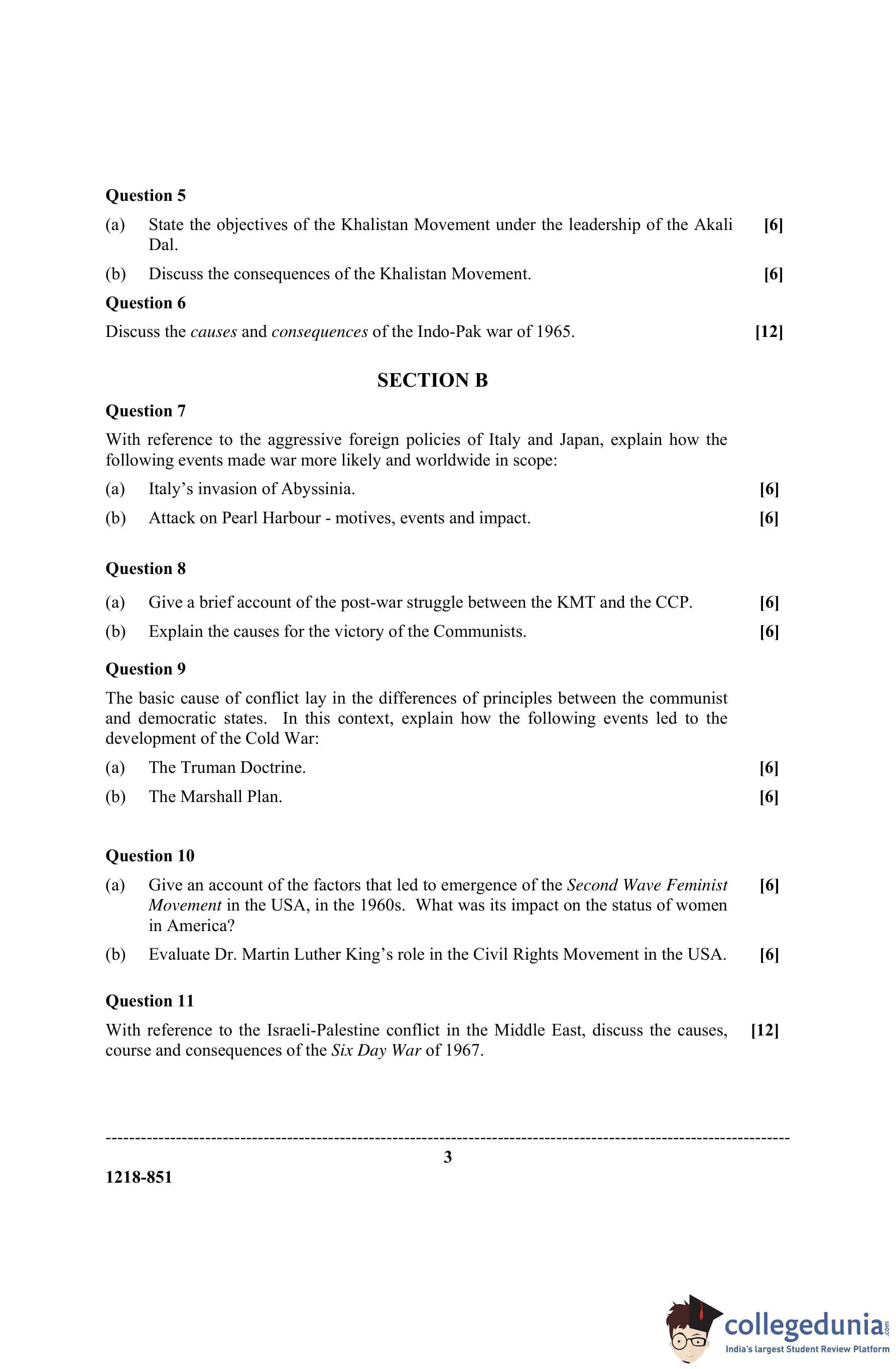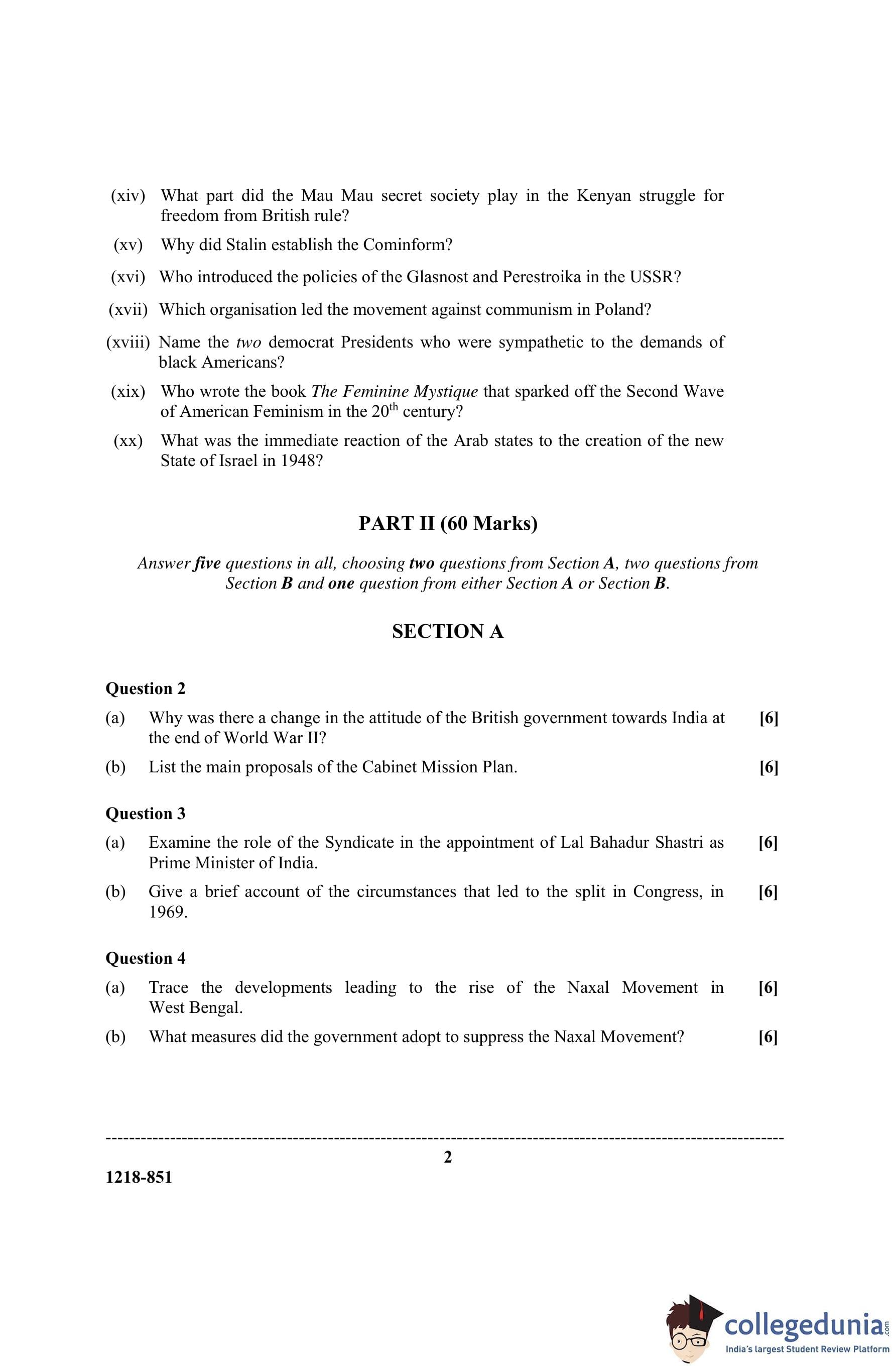 ISC Class 12 History Question Paper 2018 with Answer Key