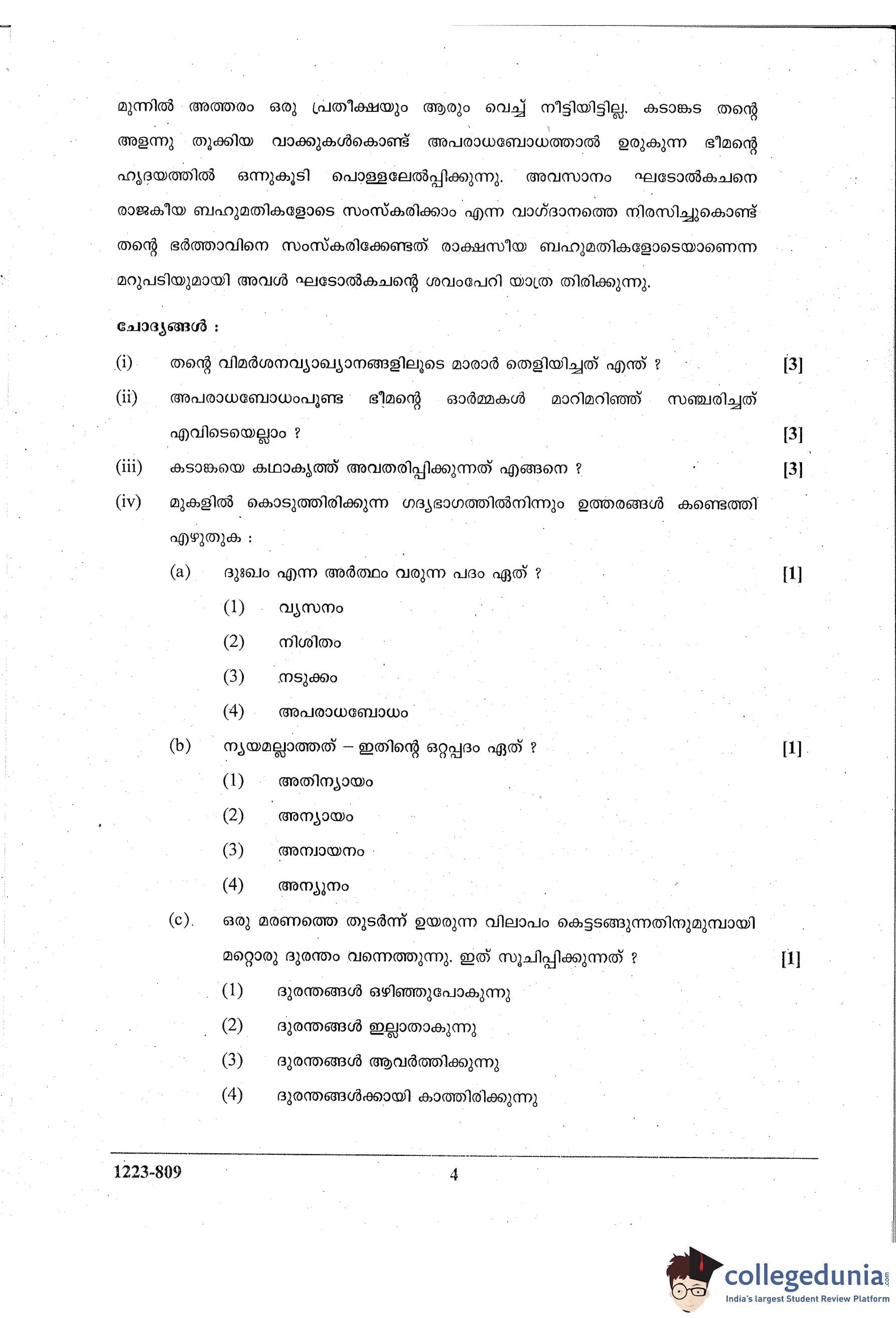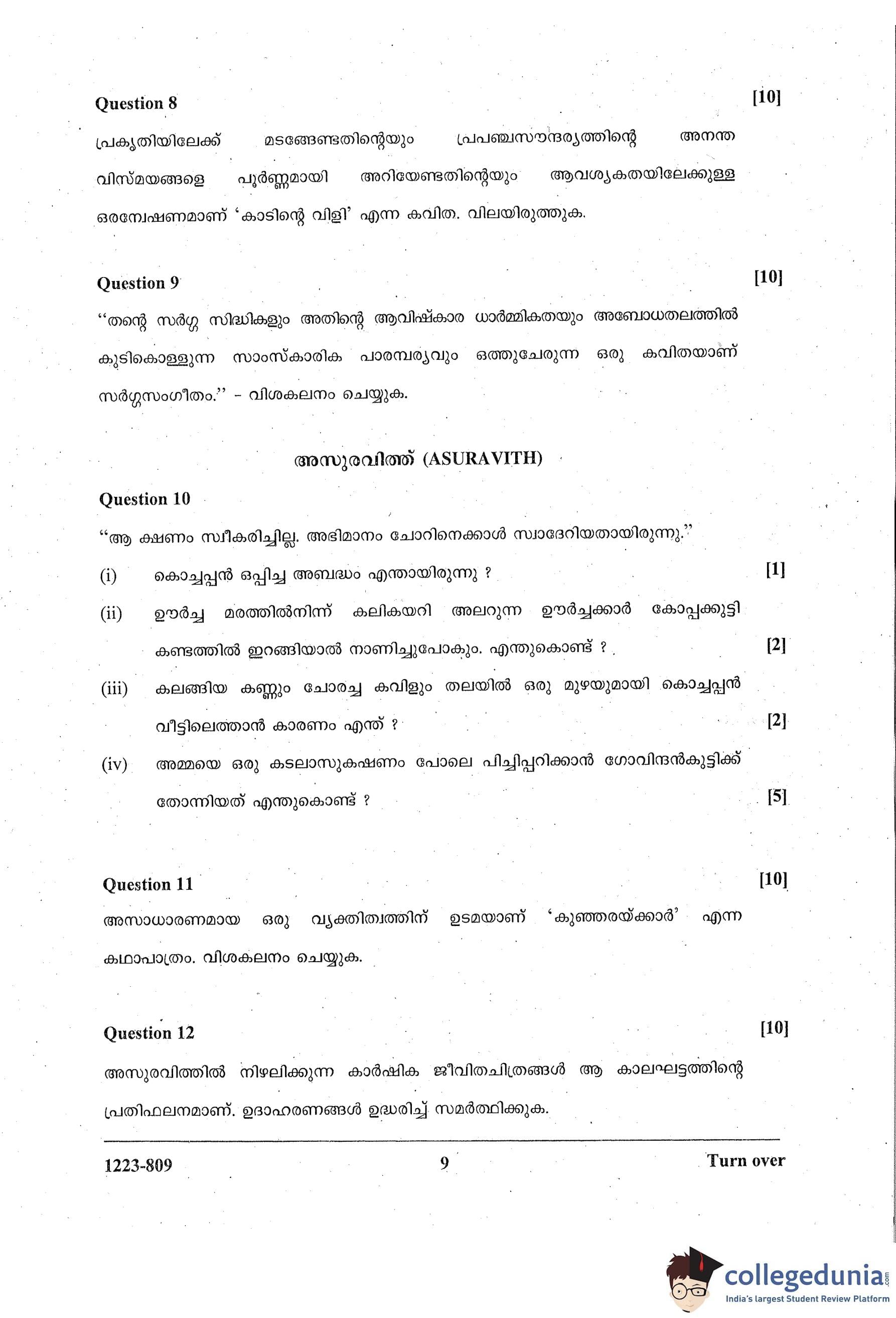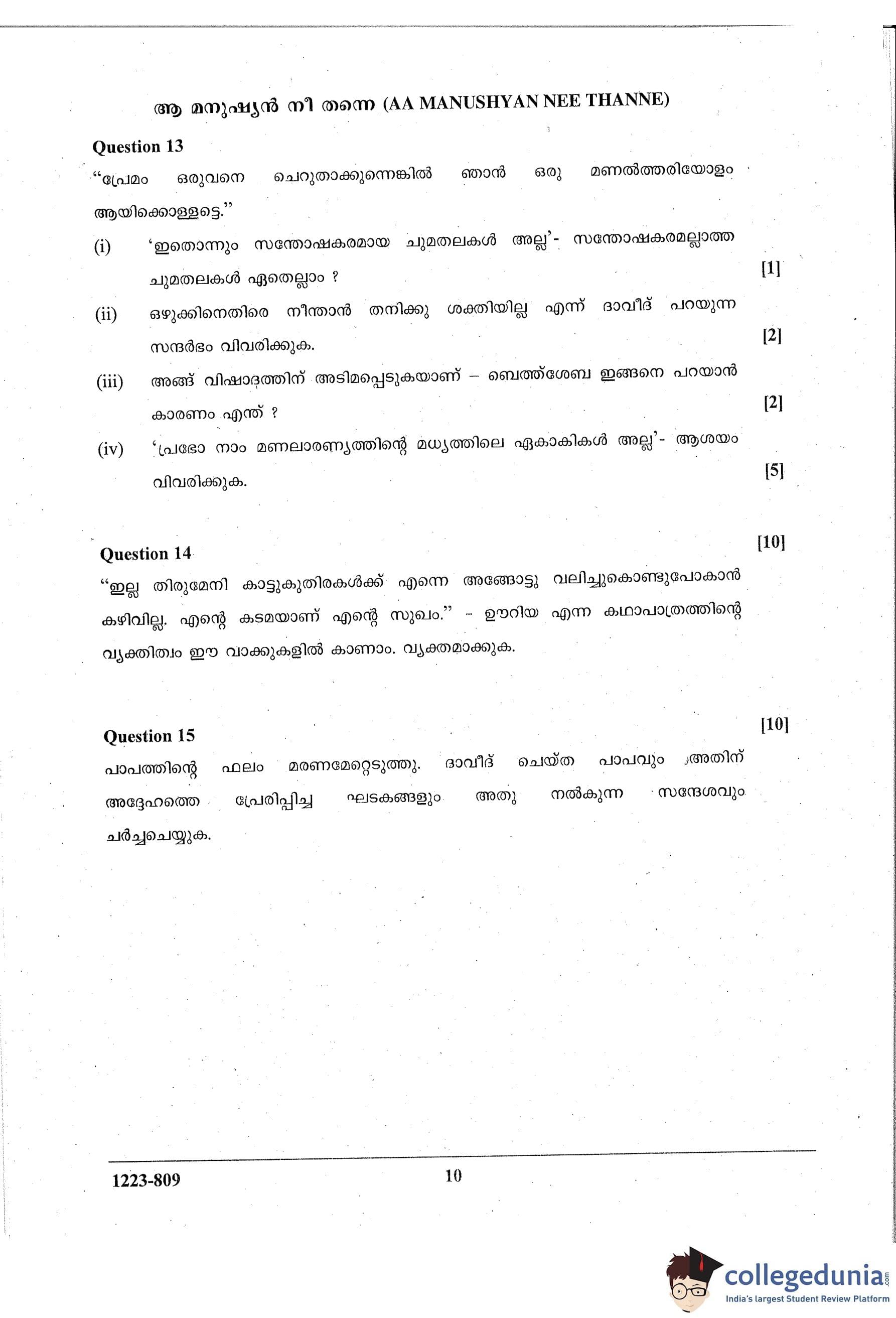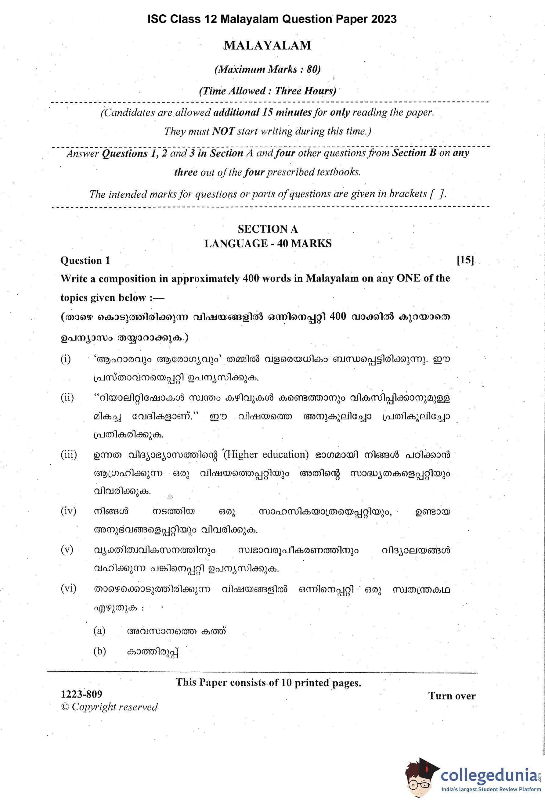 ISC Class 12 Malayalam Question Paper 2023 with Answer Key