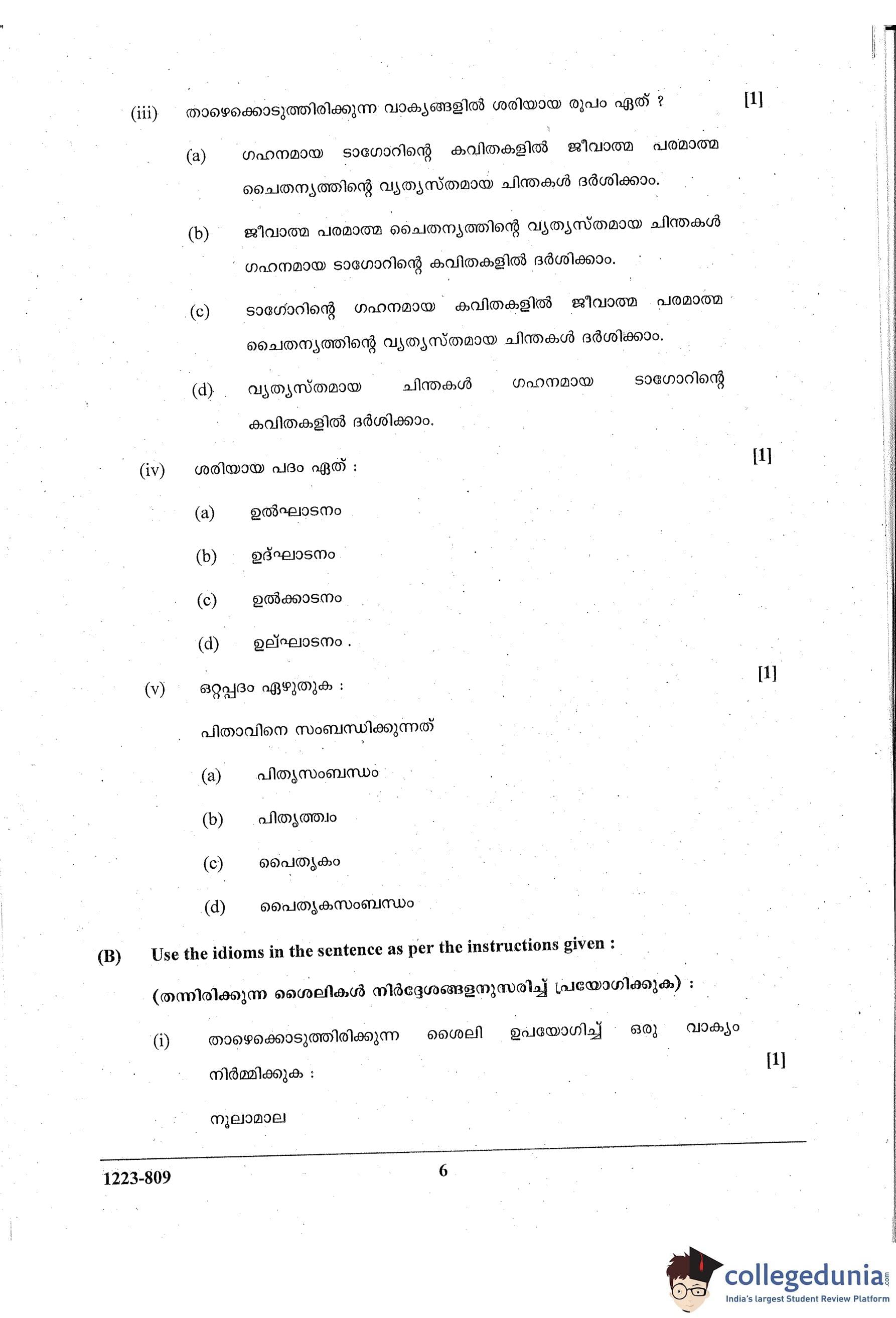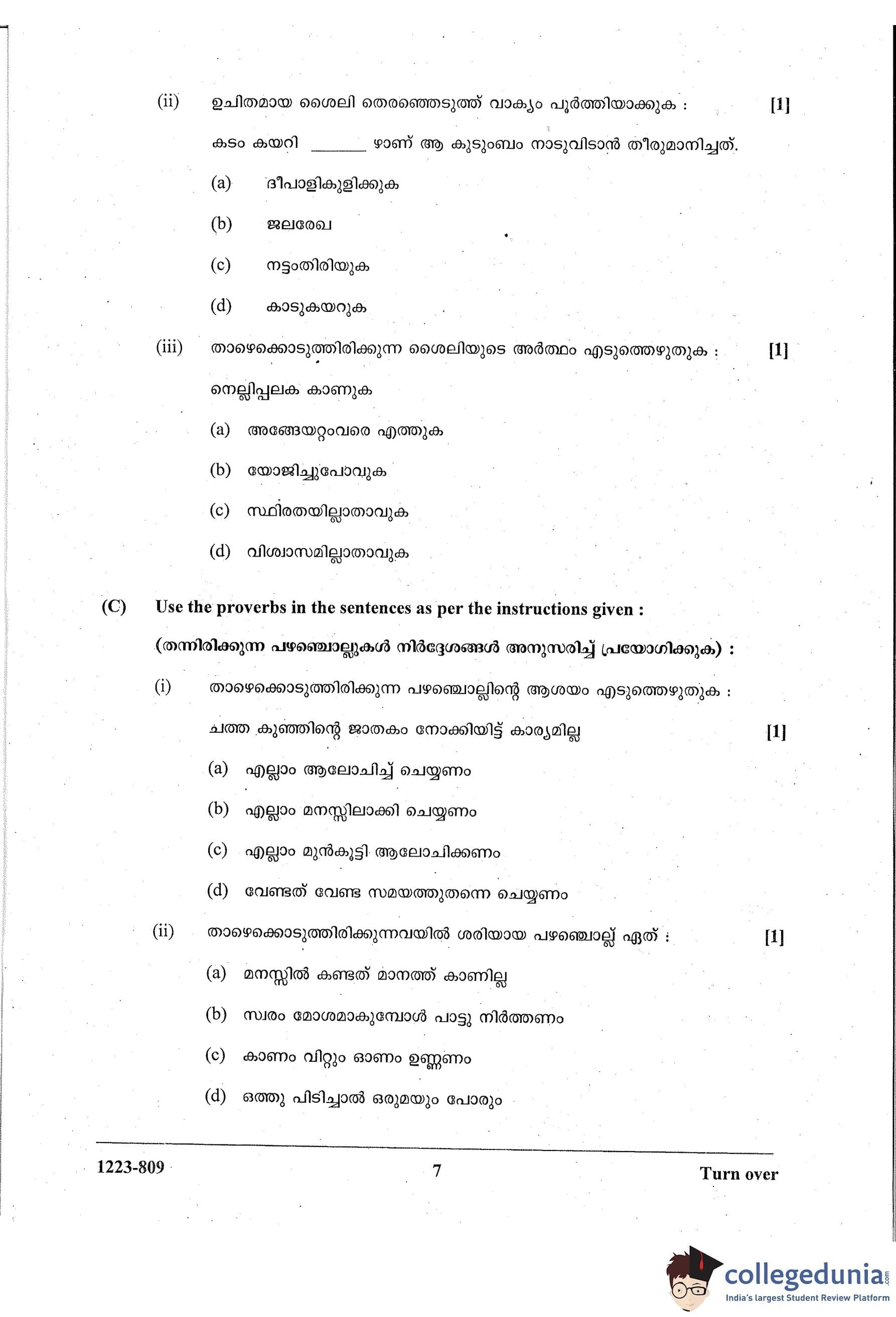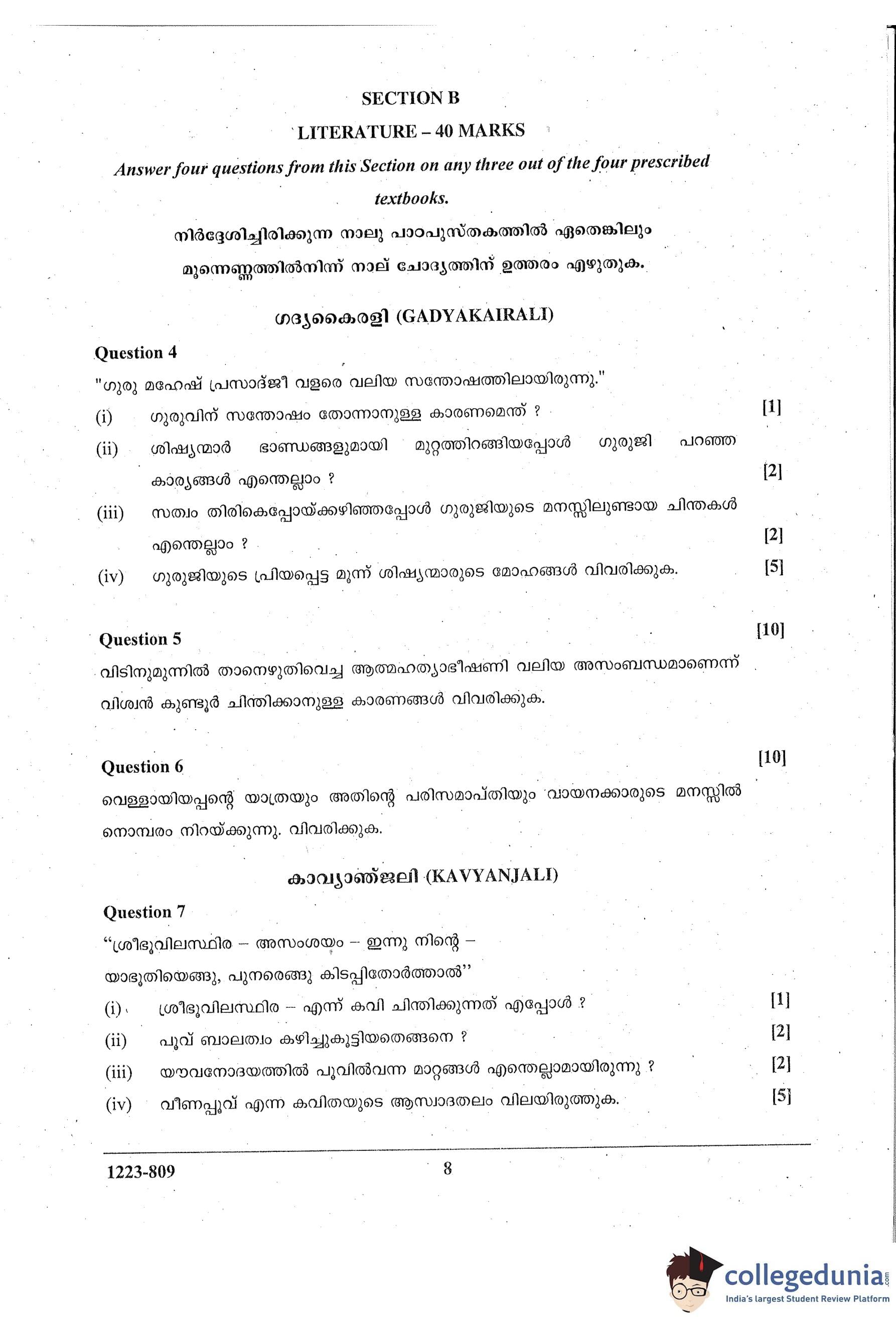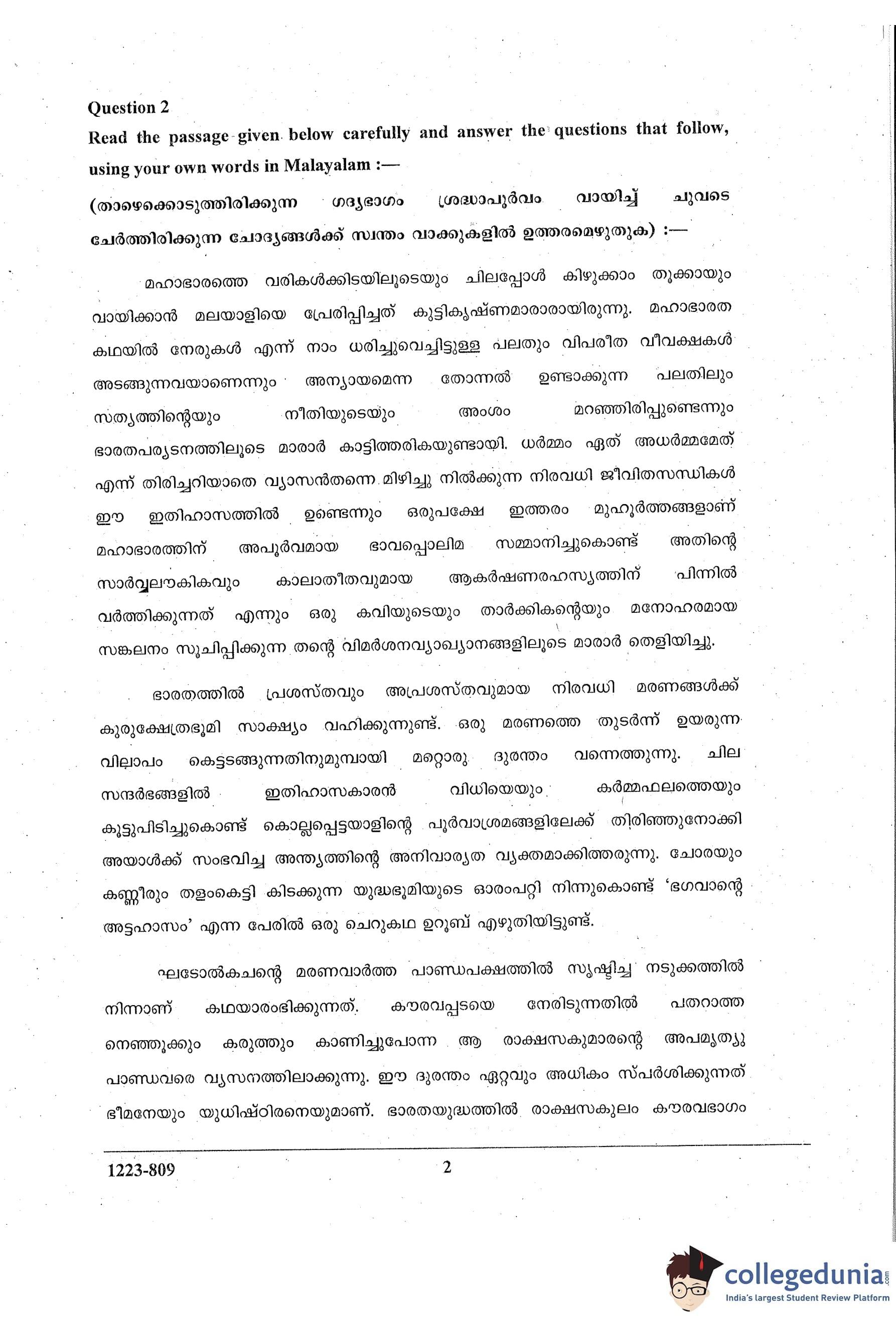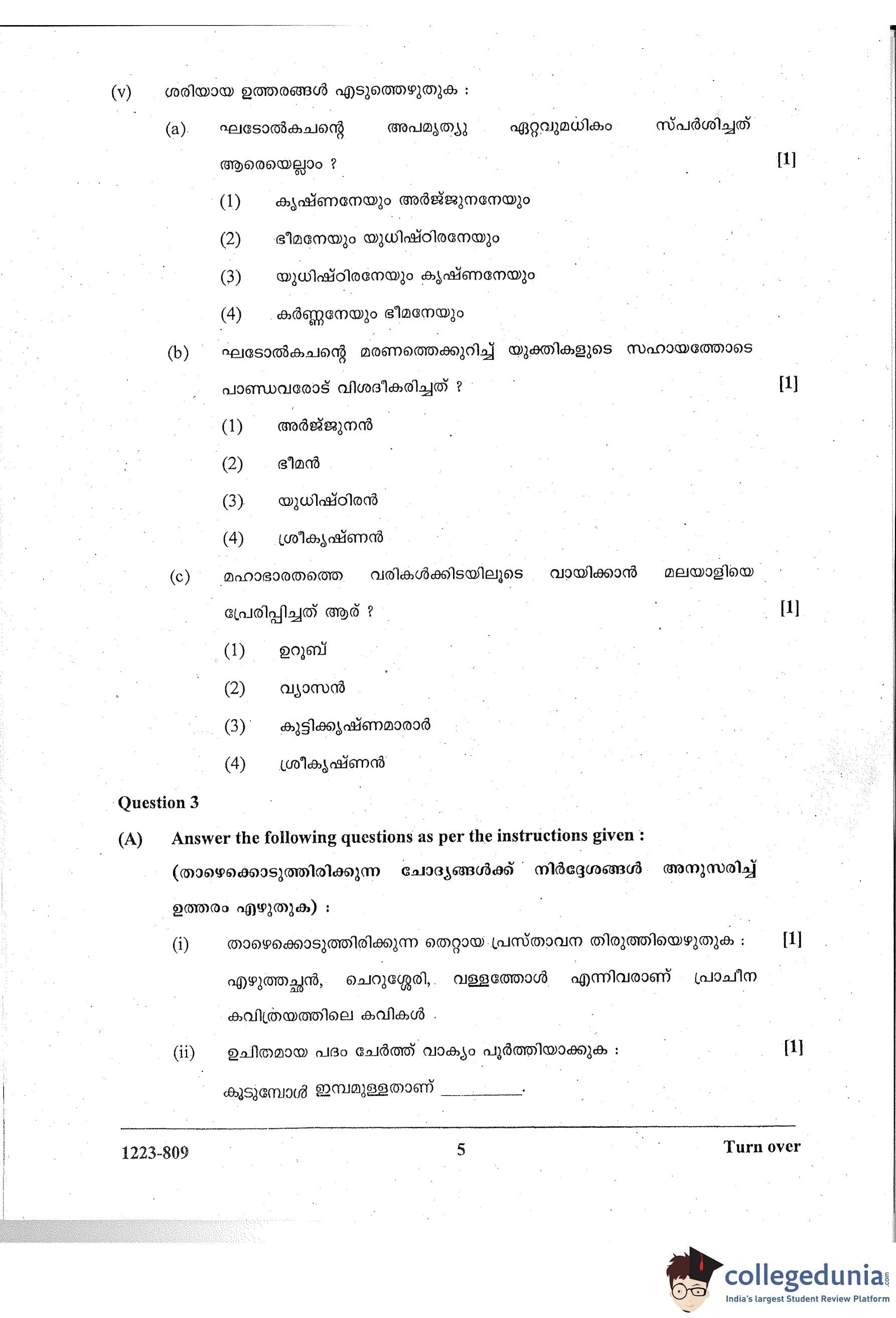 ISC Class 12 Malayalam Question Paper 2023 with Answer Key