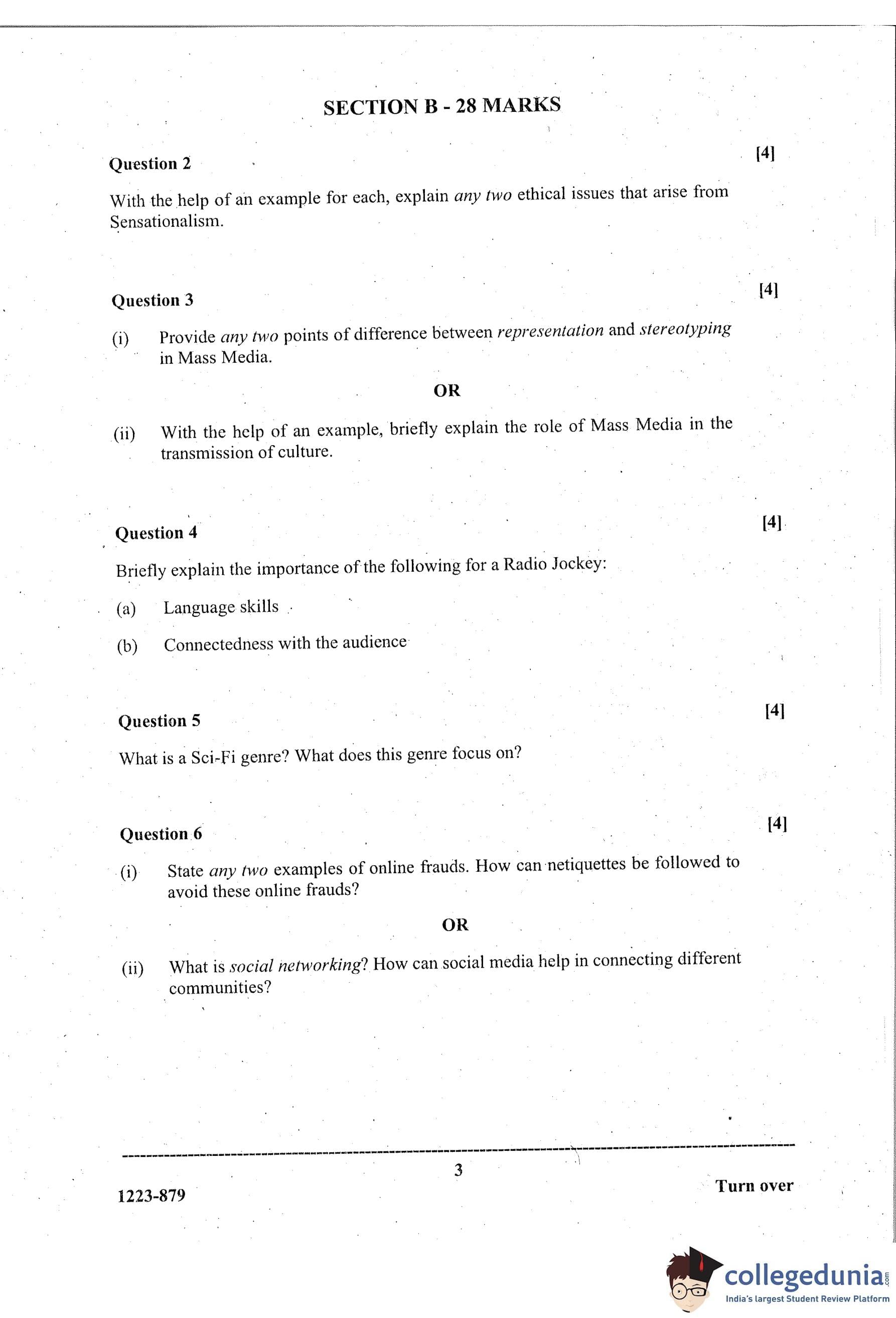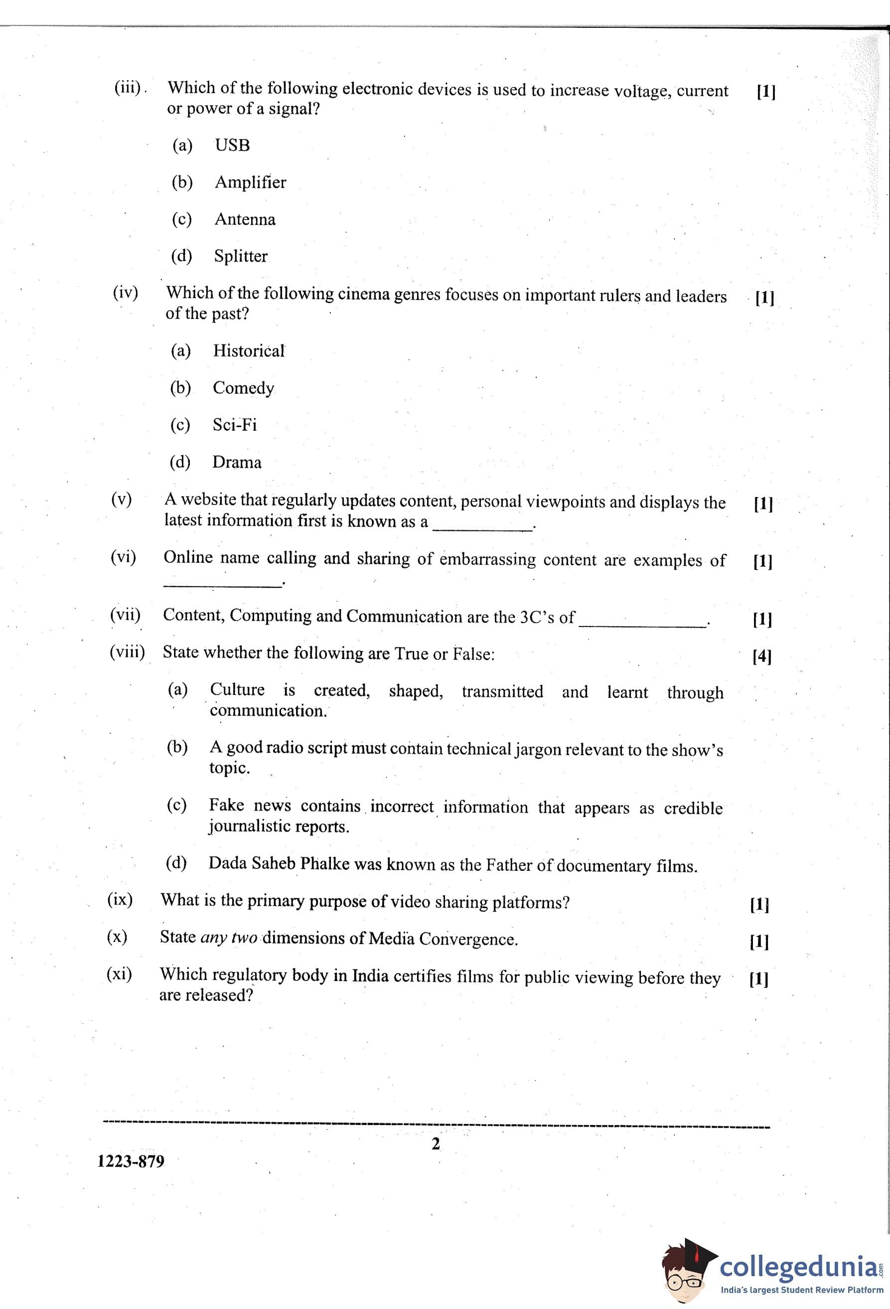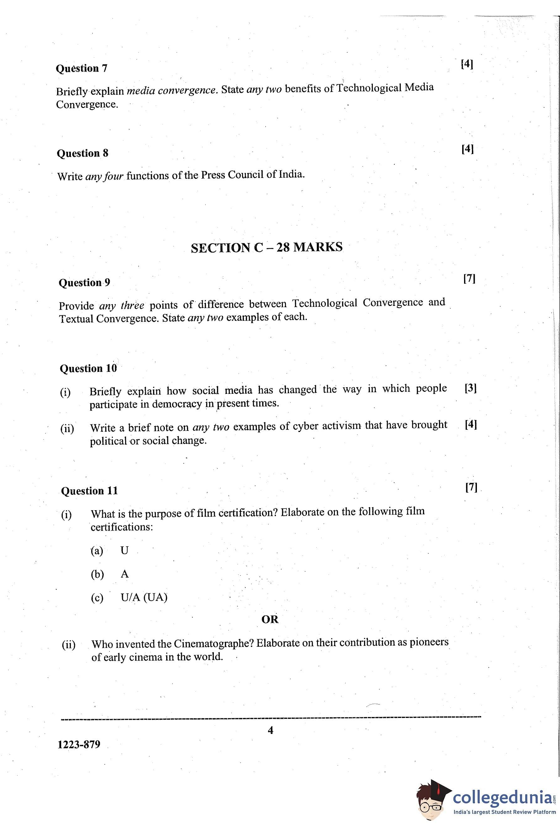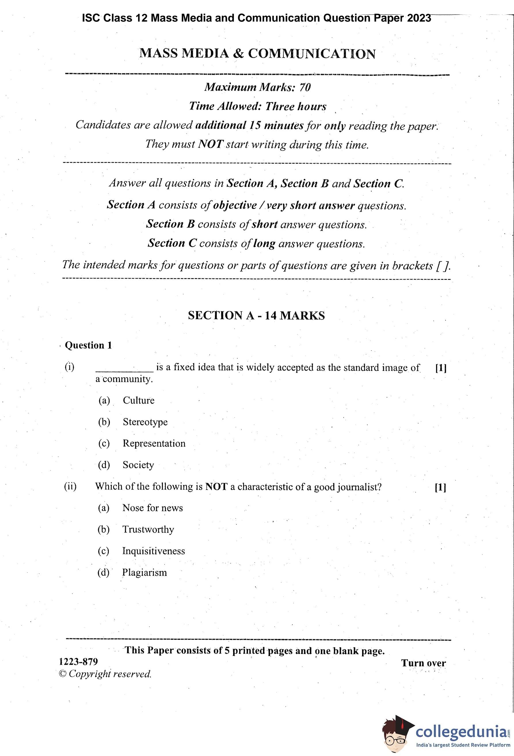 ISC Class 12 Mass Media and Communication Question Paper 2023 with Answer Key