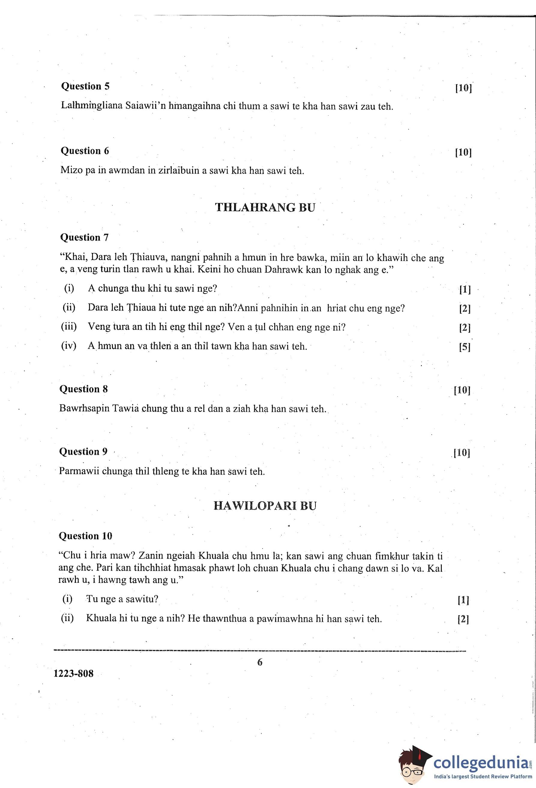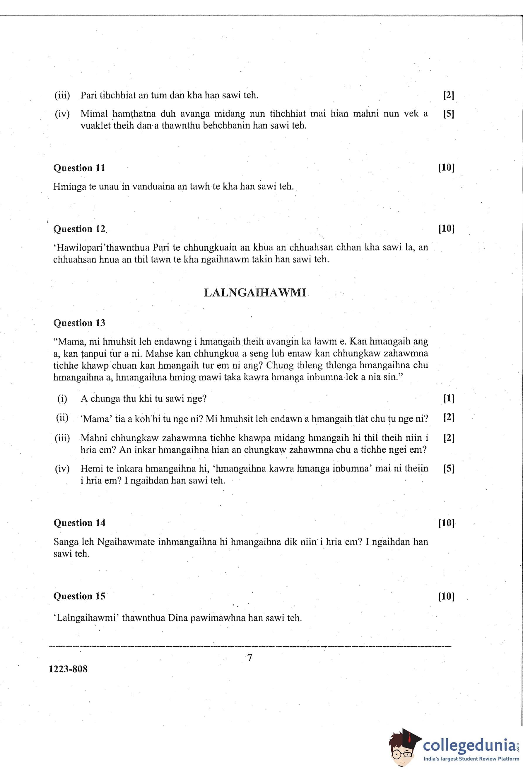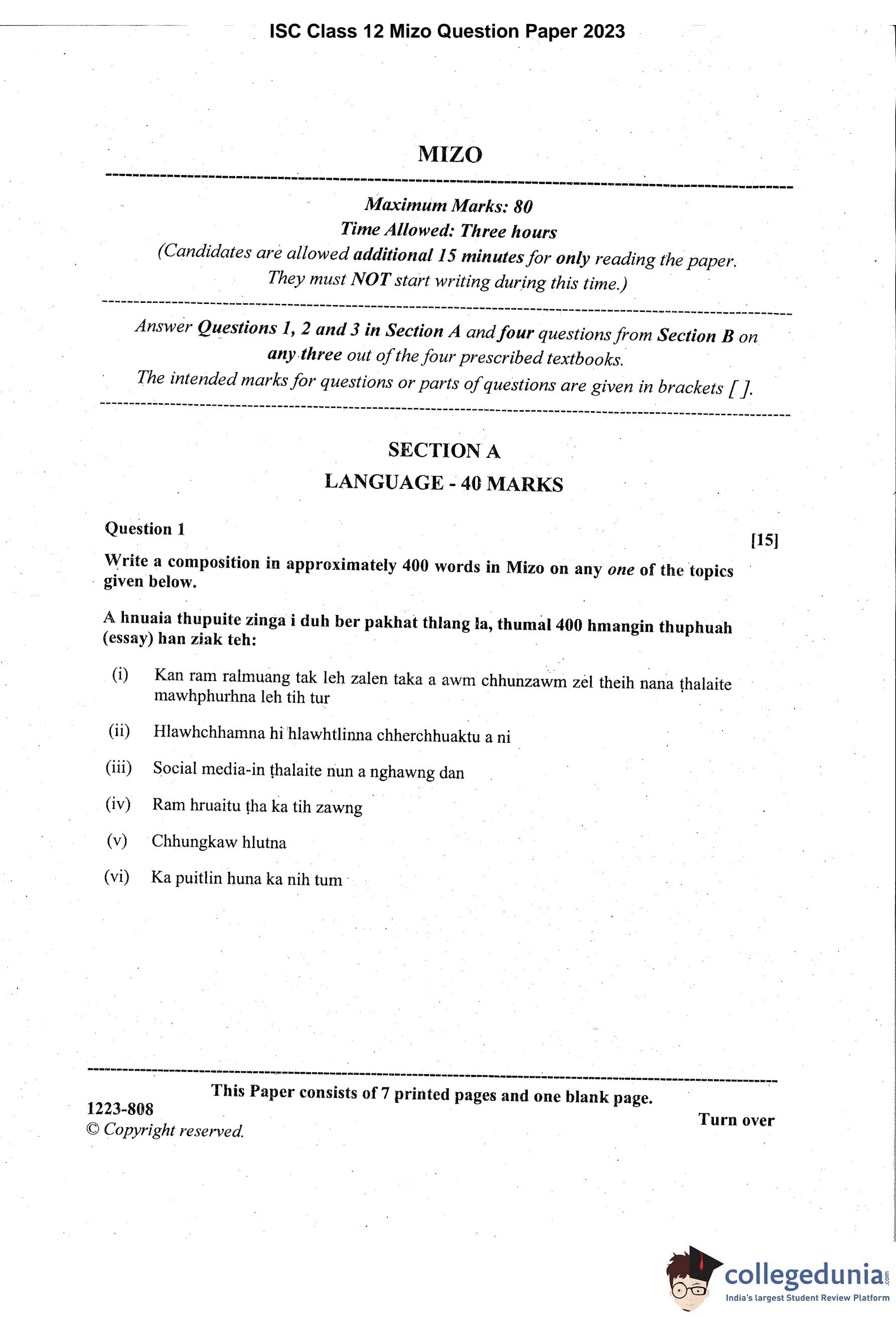 ISC Class 12 Mizo Question Paper 2023 with Answer Key