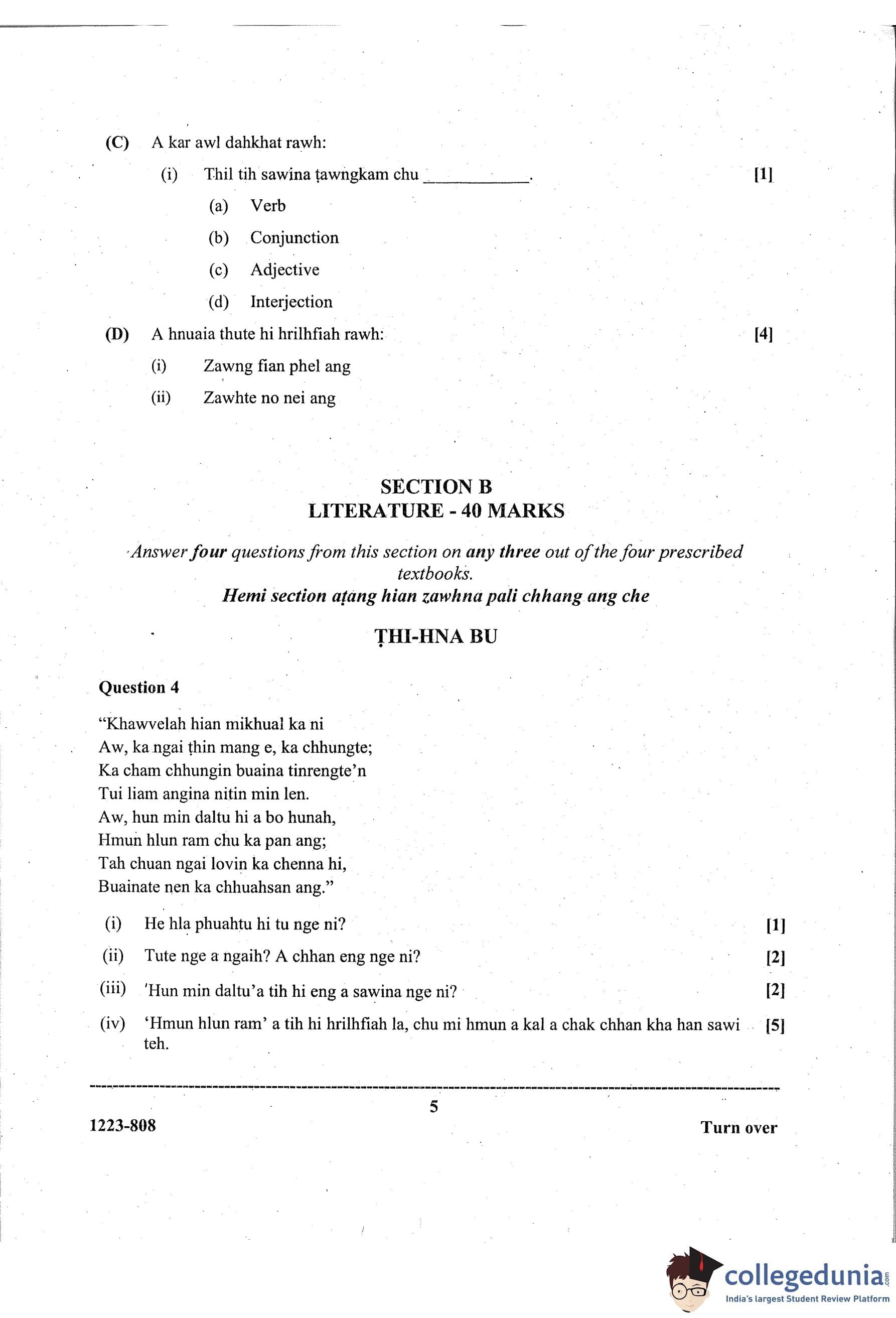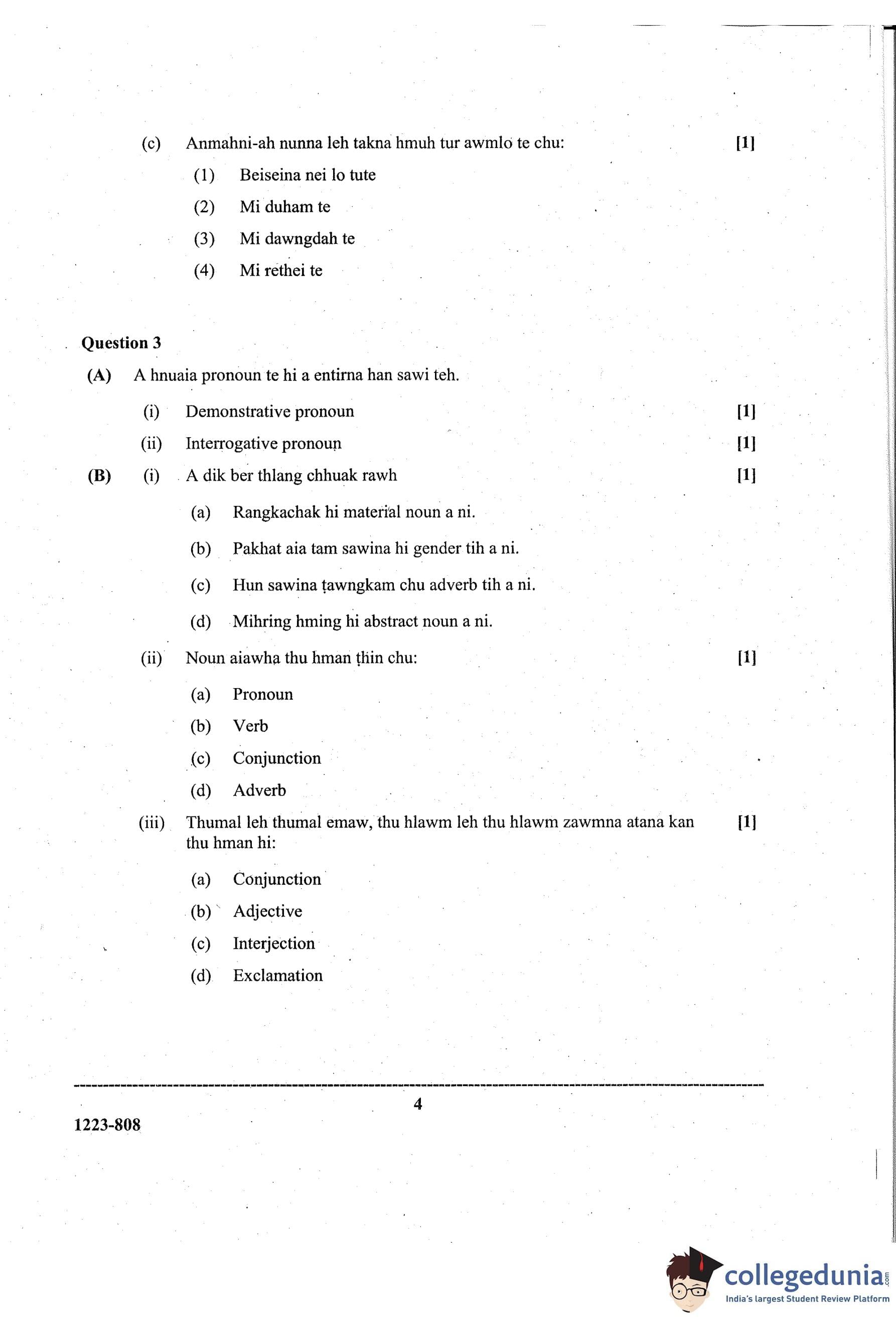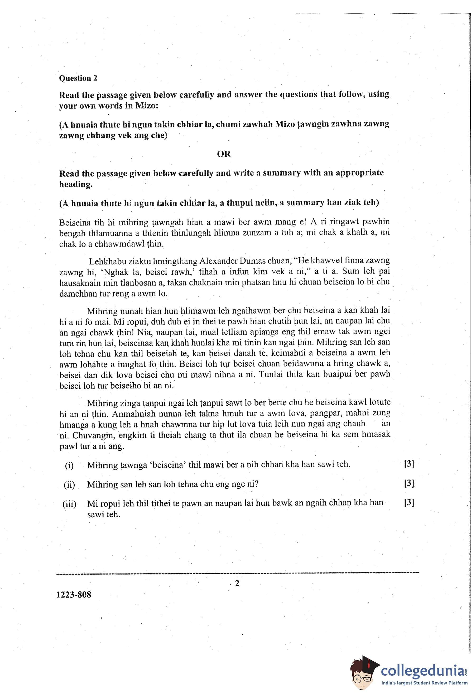 ISC Class 12 Mizo Question Paper 2023 with Answer Key