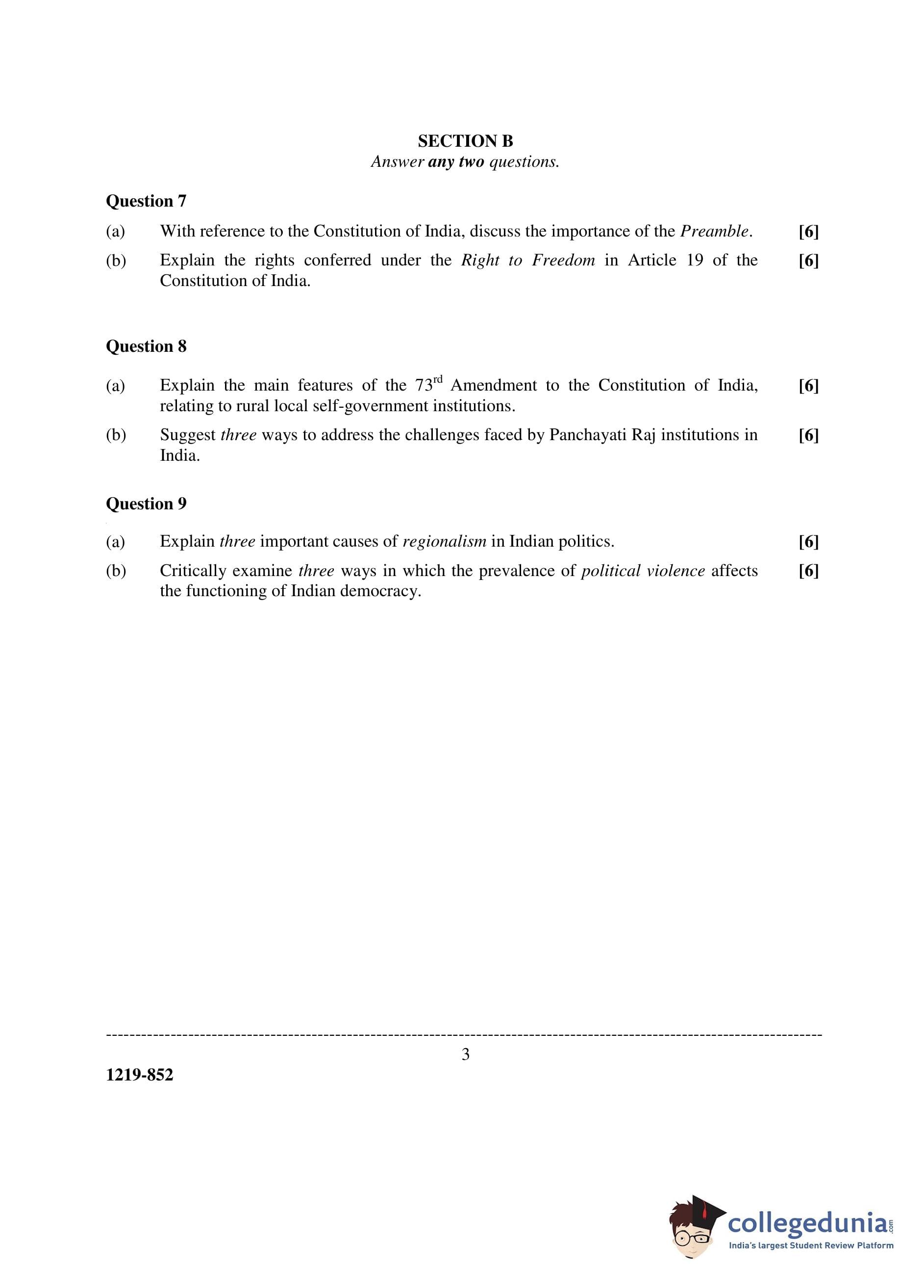 ISC Class 12 Political Science Question Paper 2019 with Answer Key pdf is available for download here. The exam was conducted by Council for the Indian School Certificate Examinations on March 19, 2019 in the Afternoon Session 2 PM to 5 PM. The question paper comprised a total of 9 questions divided among 2 sections.