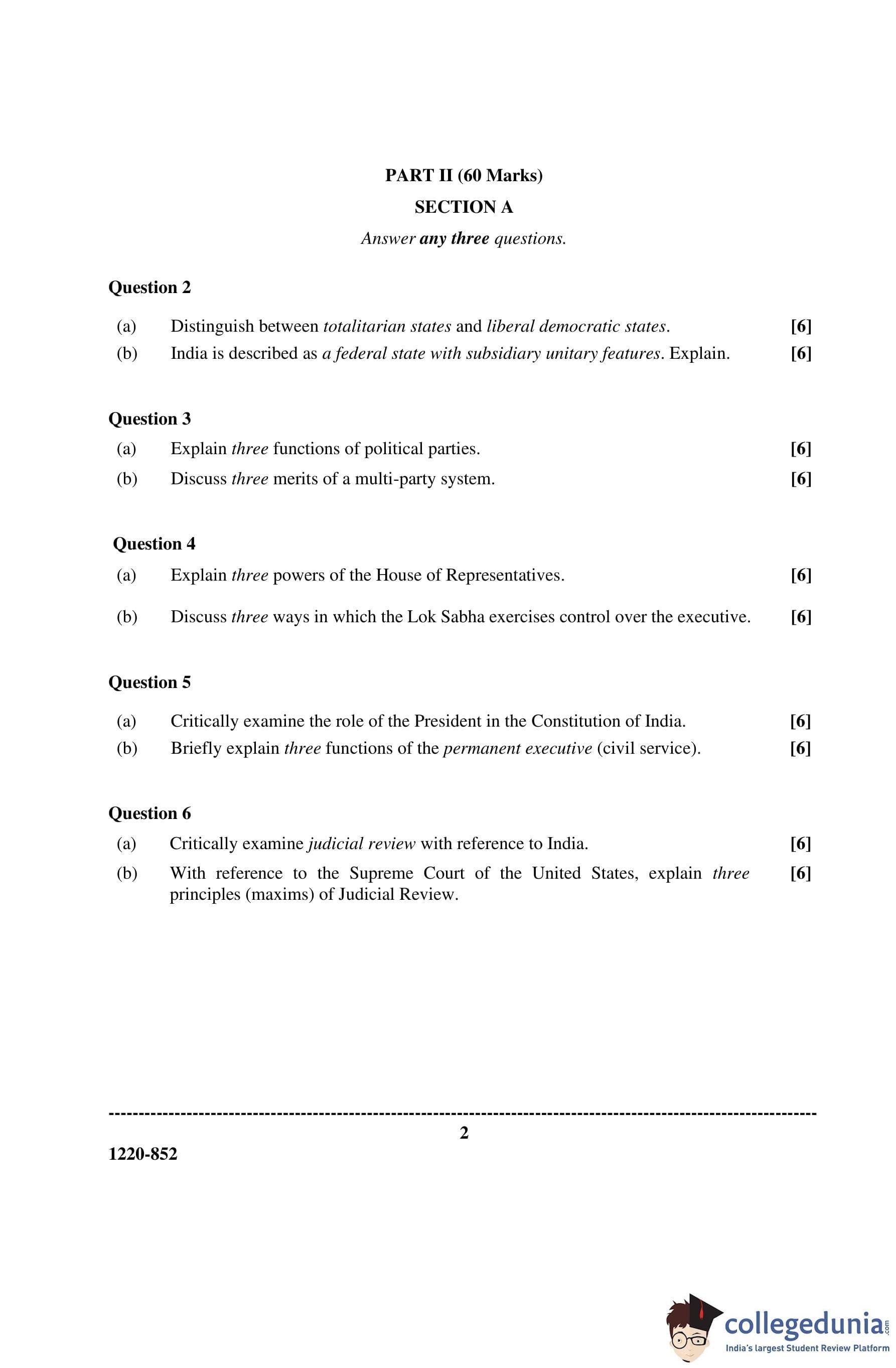 ISC Class 12 Political Science Question Paper 2020 with Answer Key pdf is available for download here. The exam was conducted by Council for the Indian School Certificate Examinations on February 25, 2020 in the Afternoon Session 2 PM to 5 PM. The question paper comprised a total of 9 questions divided among 2 sections.