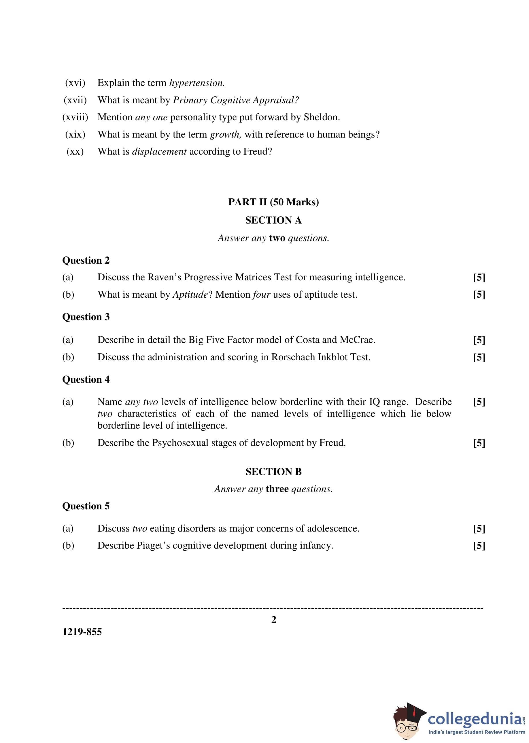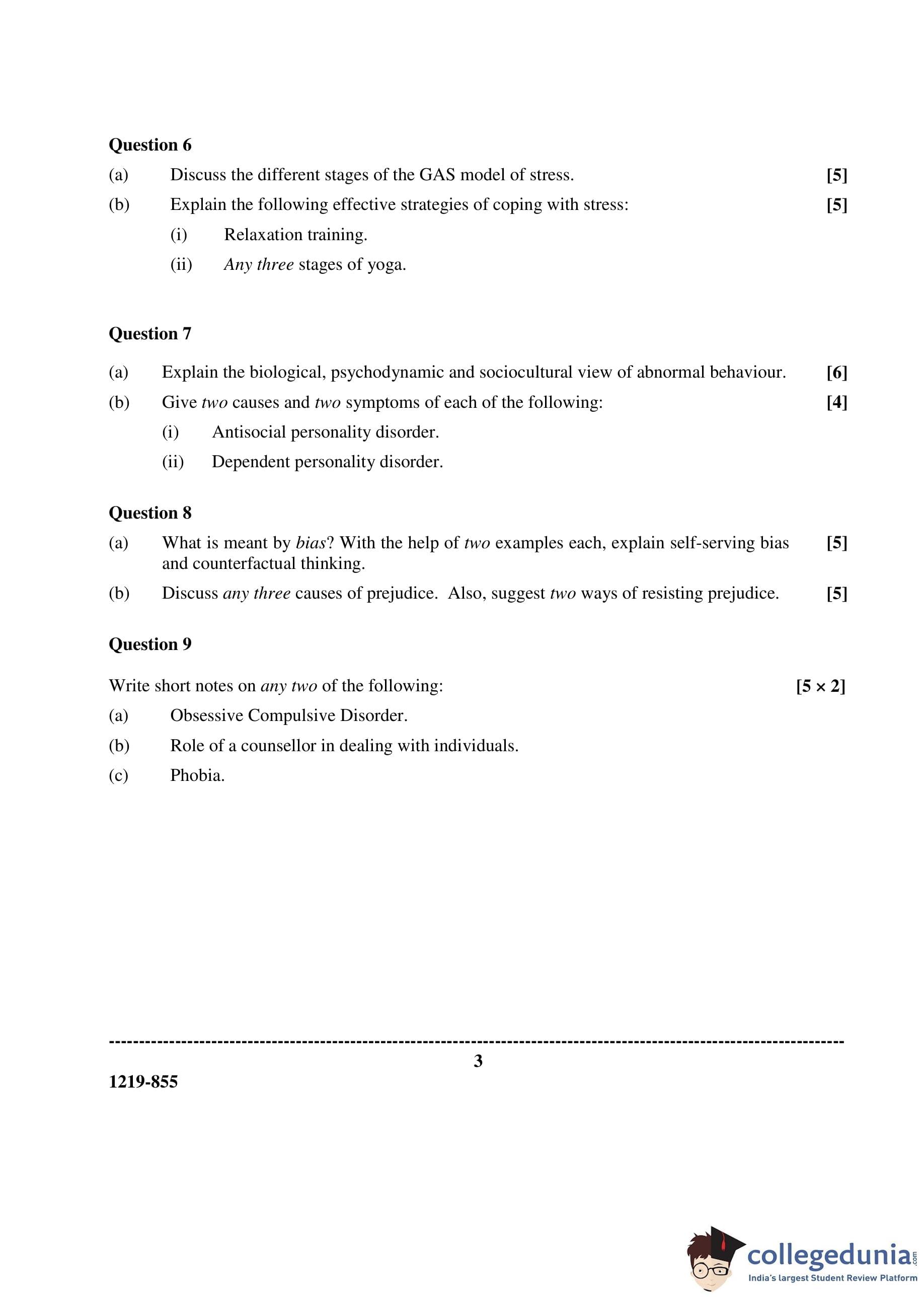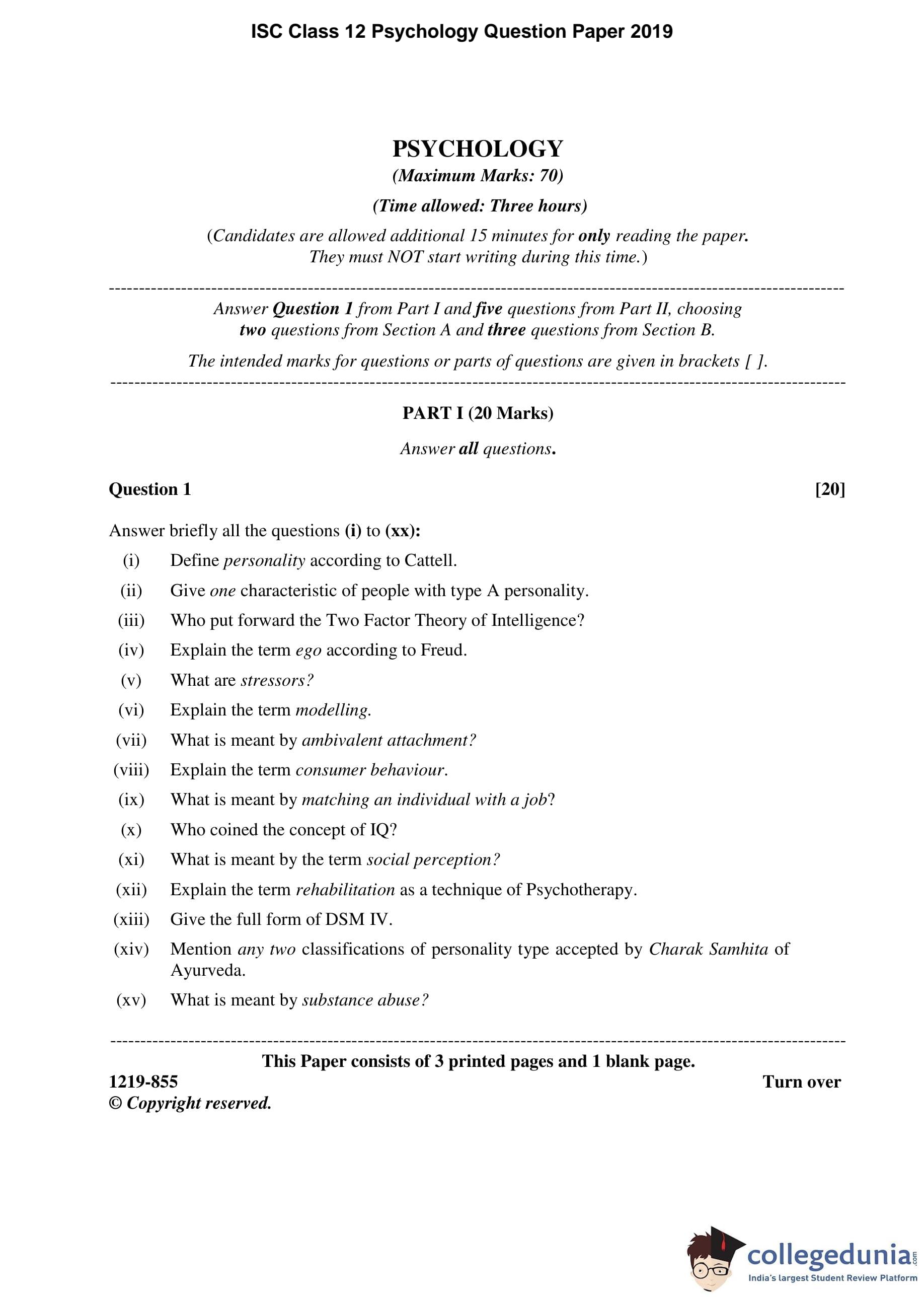 ISC Class 12 Psychology Question Paper 2019 with Answer Key