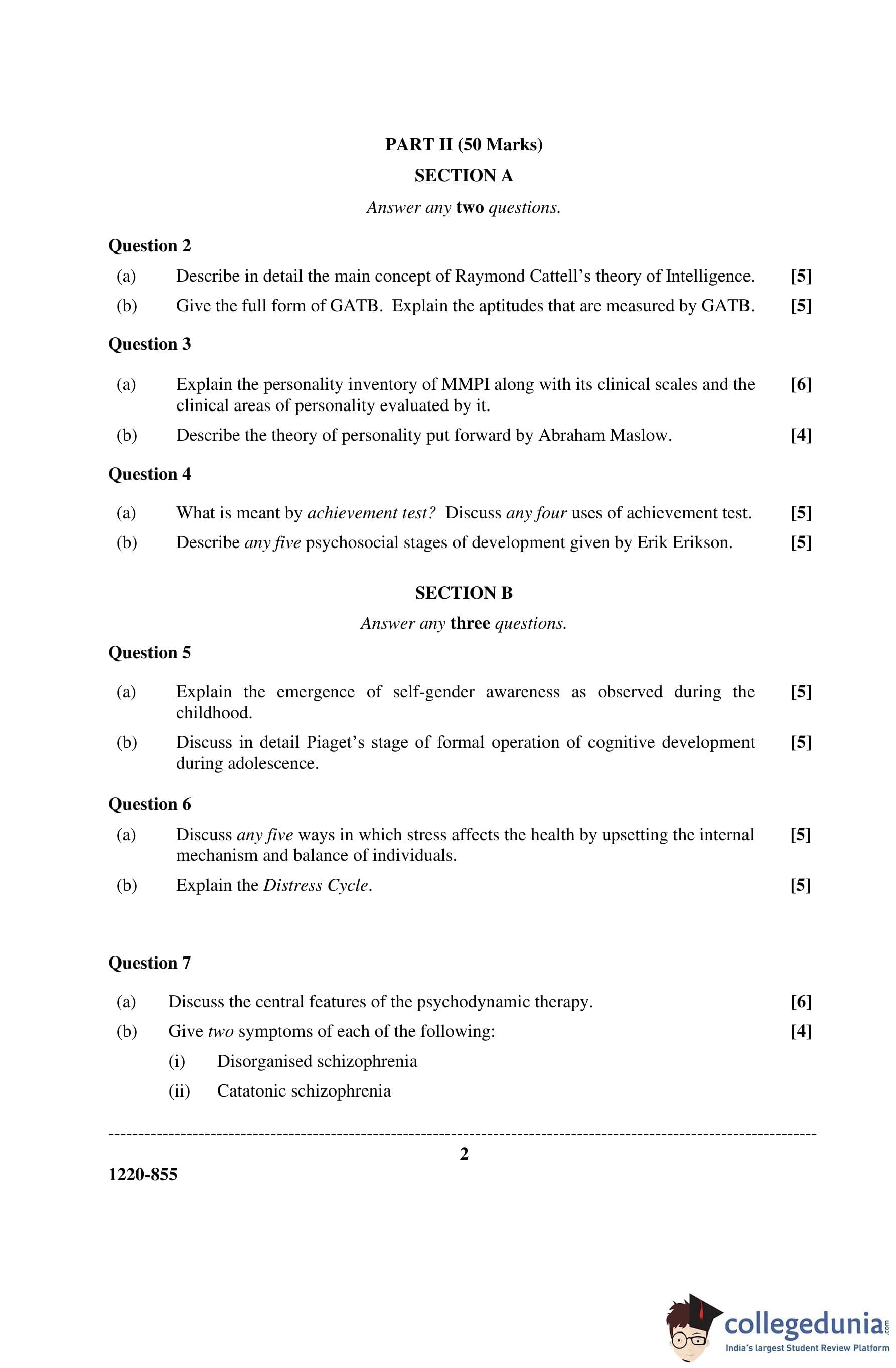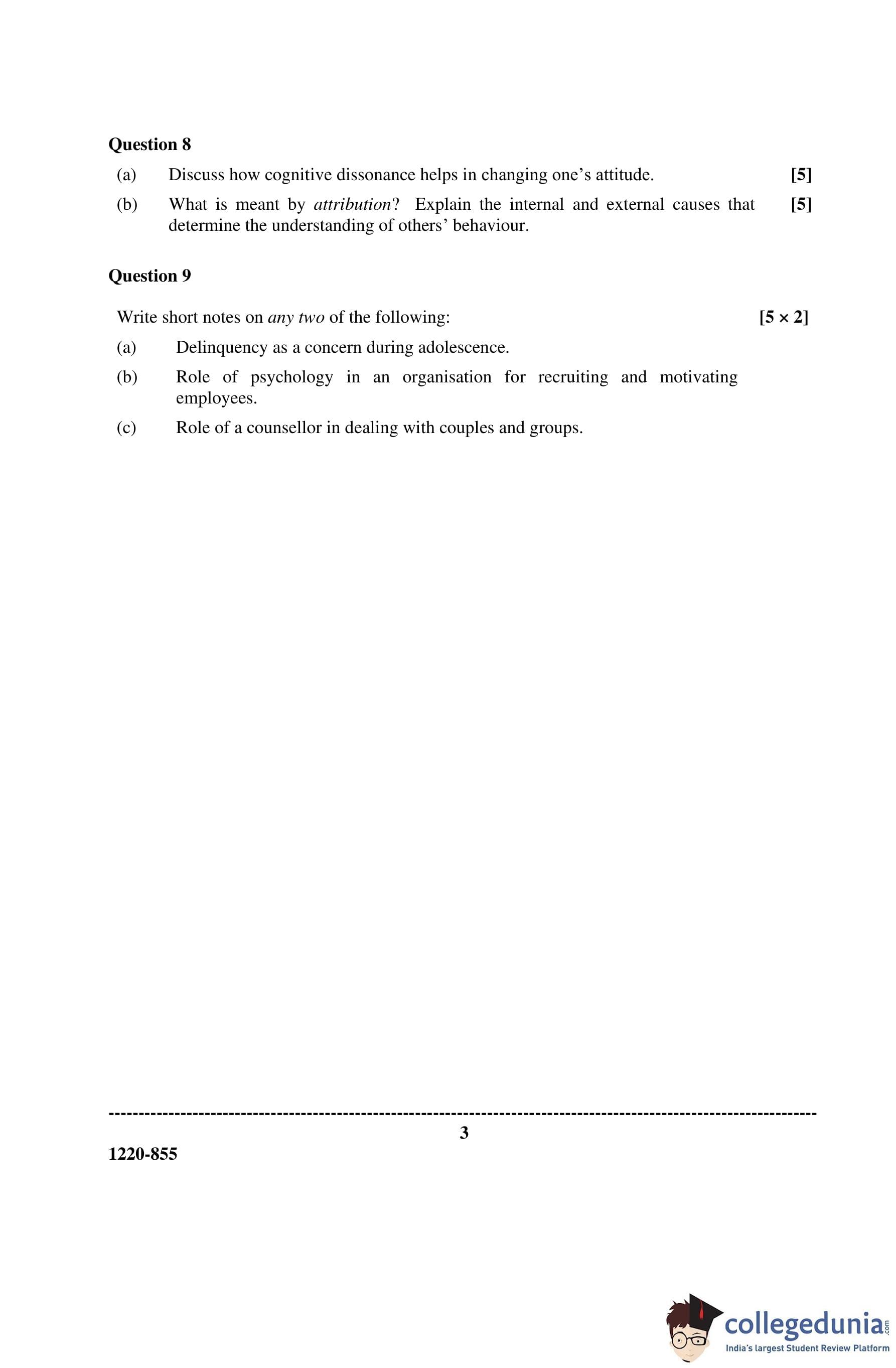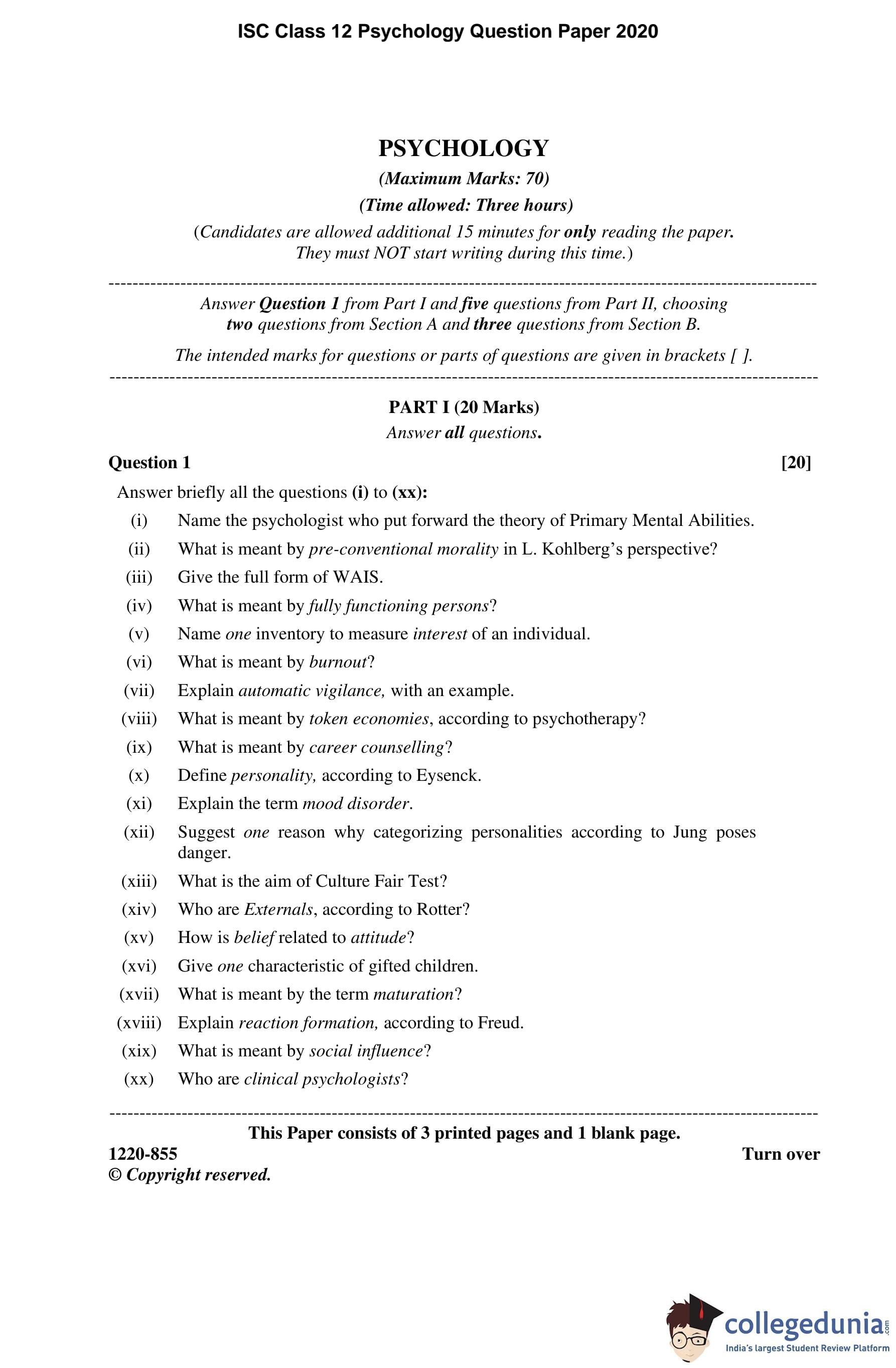 ISC Class 12 Psychology Question Paper 2020 with Answer Key